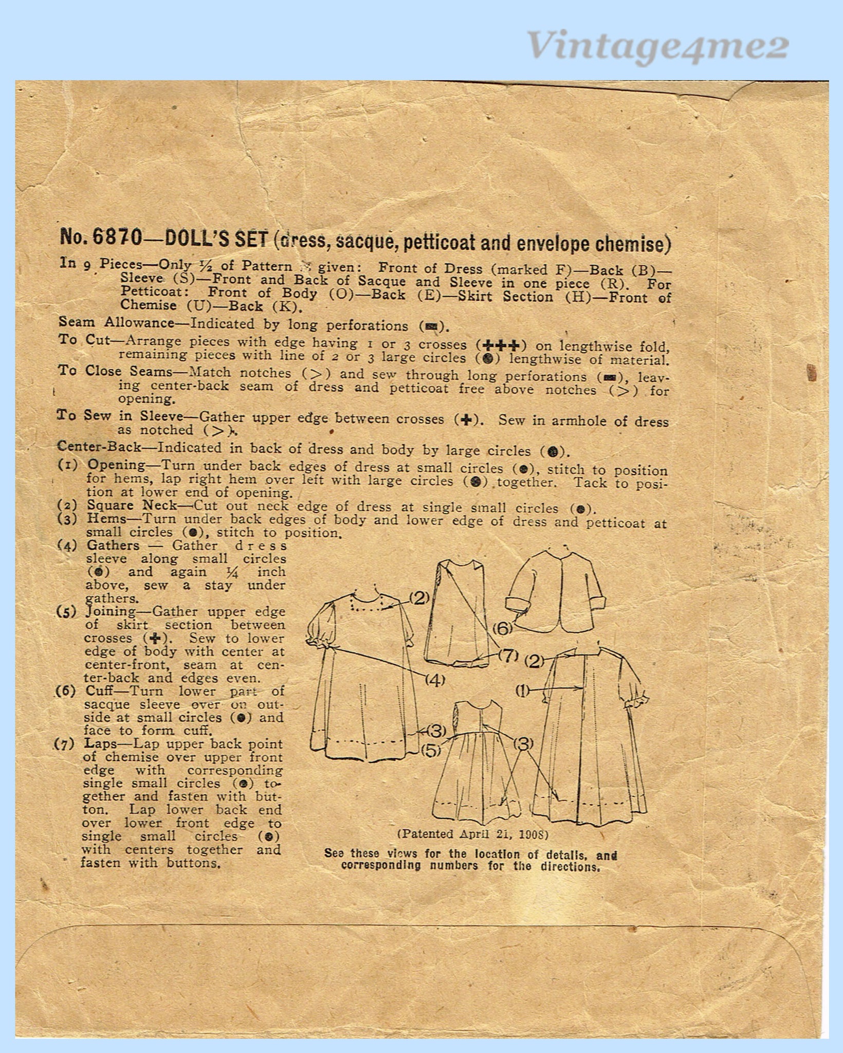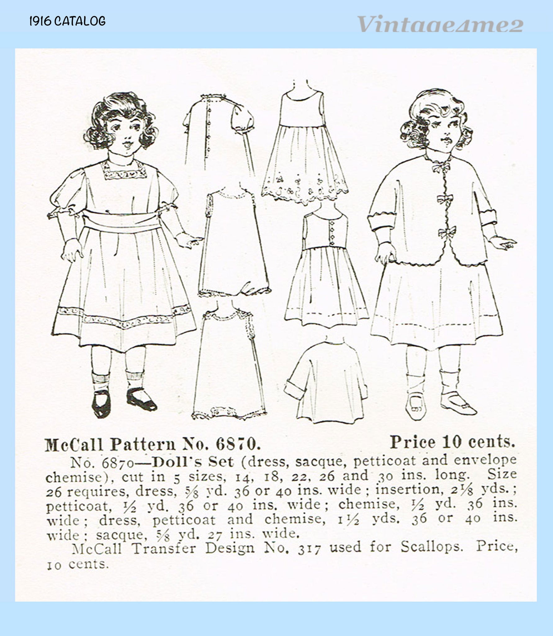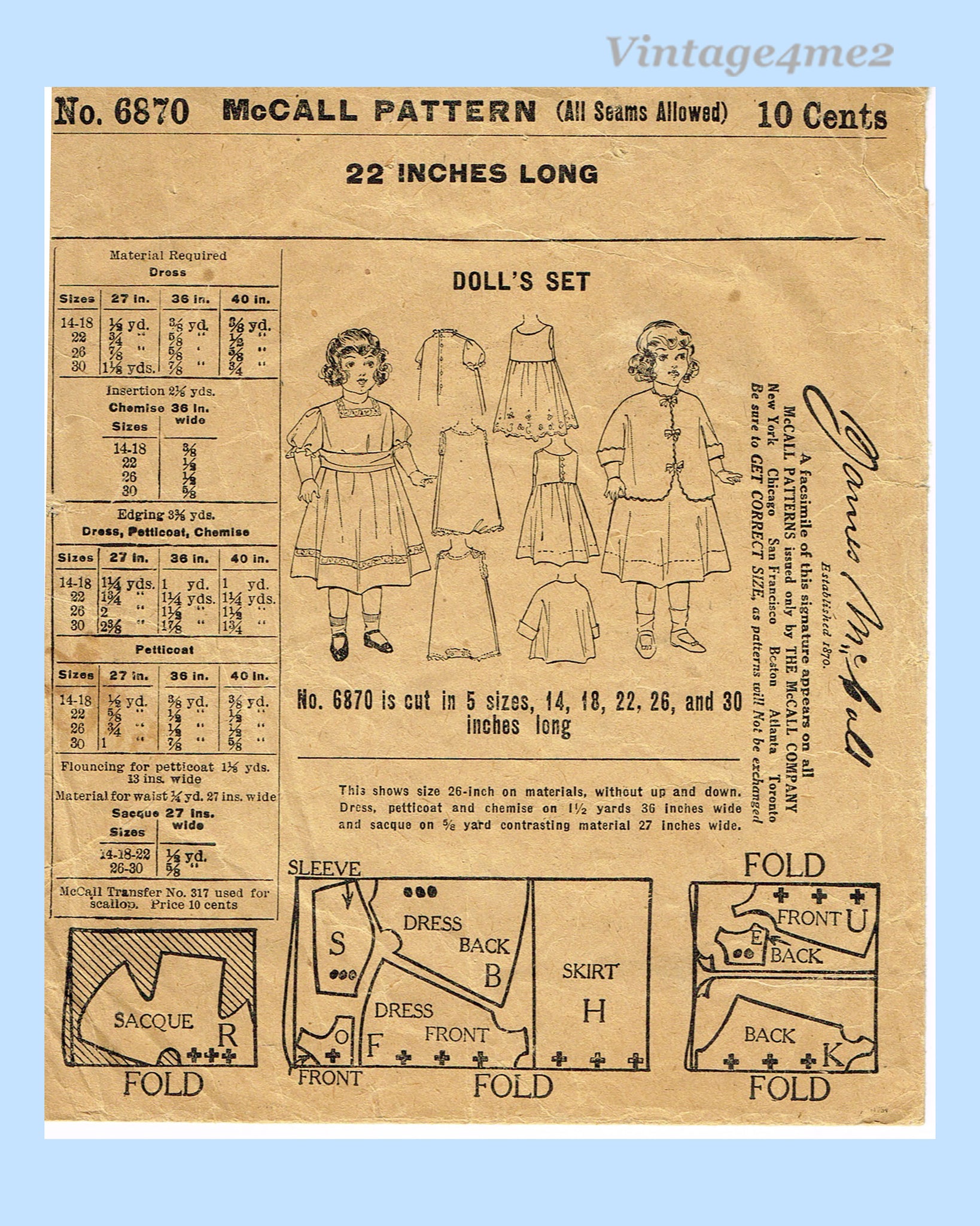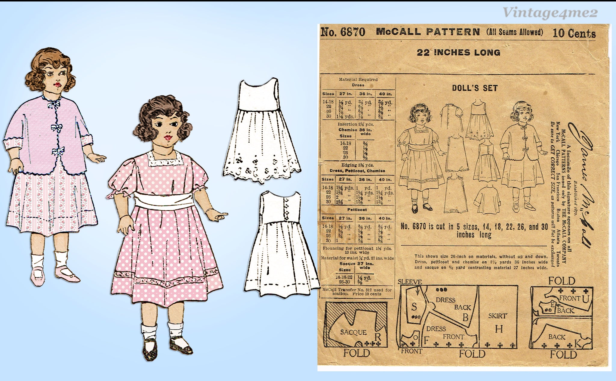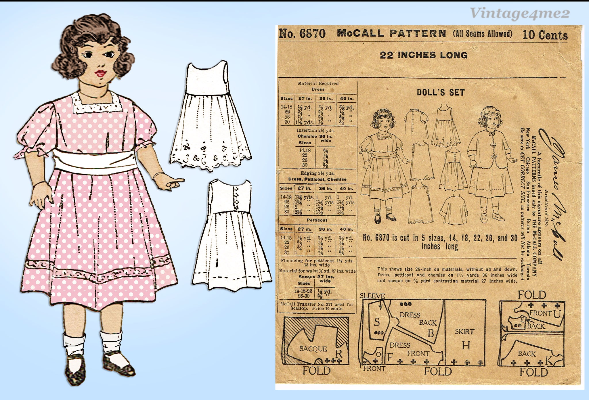 1910s Vintage McCall Sewing Pattern 6870 22 Inch Little Girl Doll Clothes Set