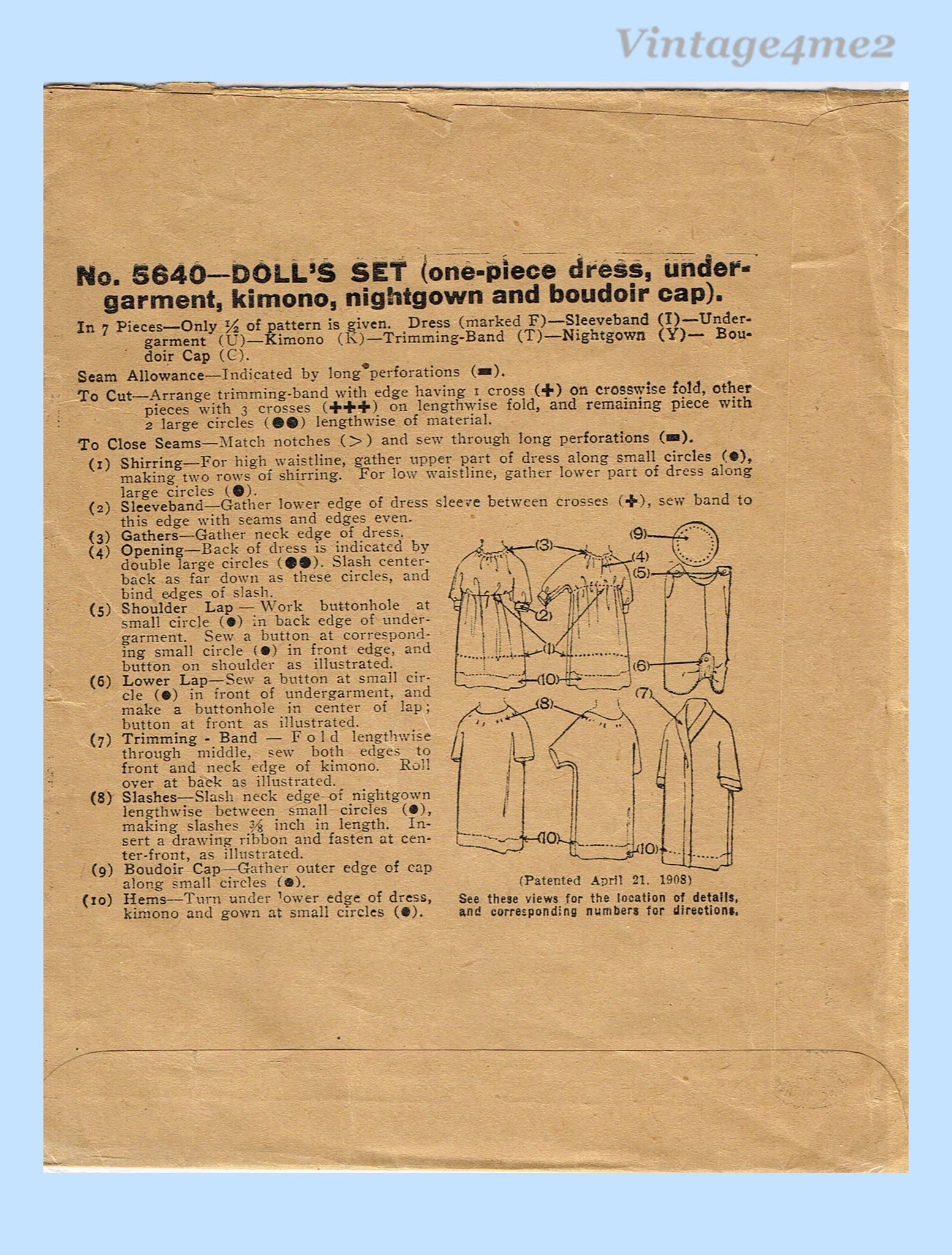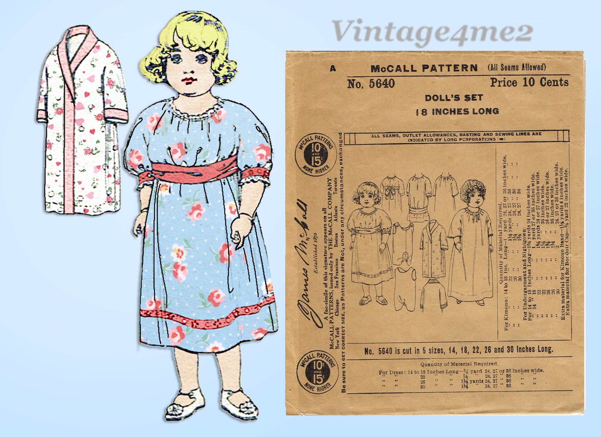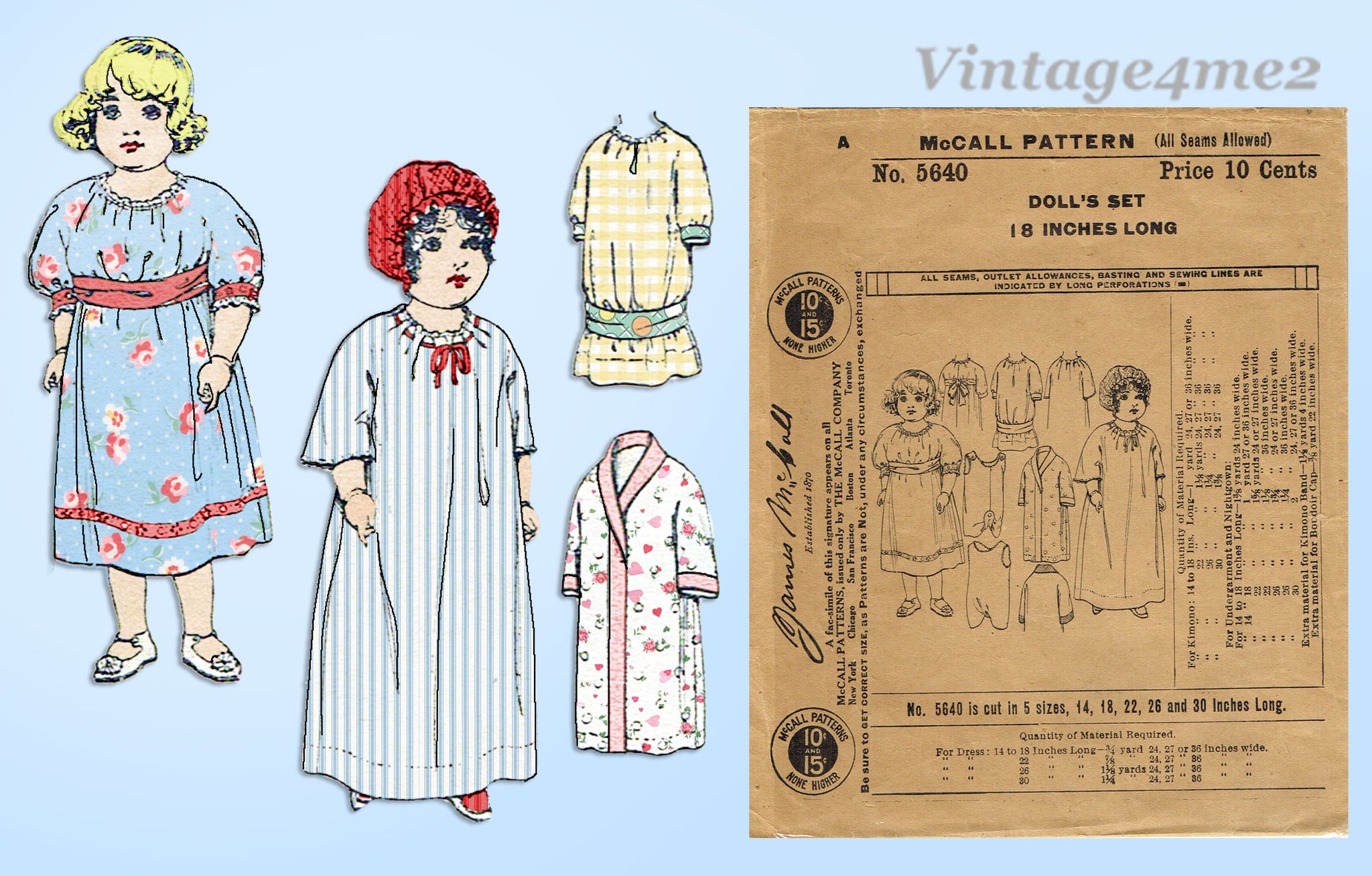 1910s Vintage McCall Sewing Pattern 5640 18 Inch Little Girl Doll Clothes Set