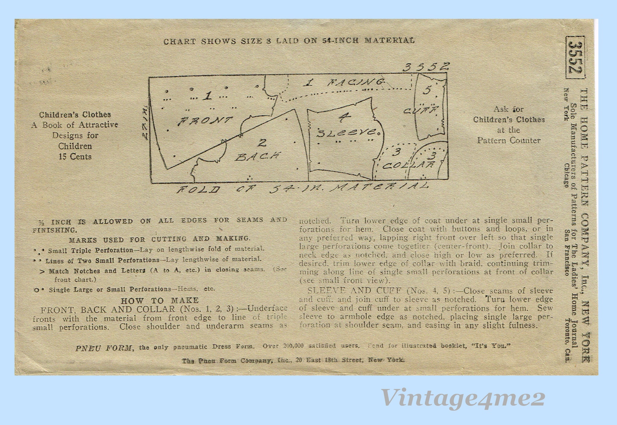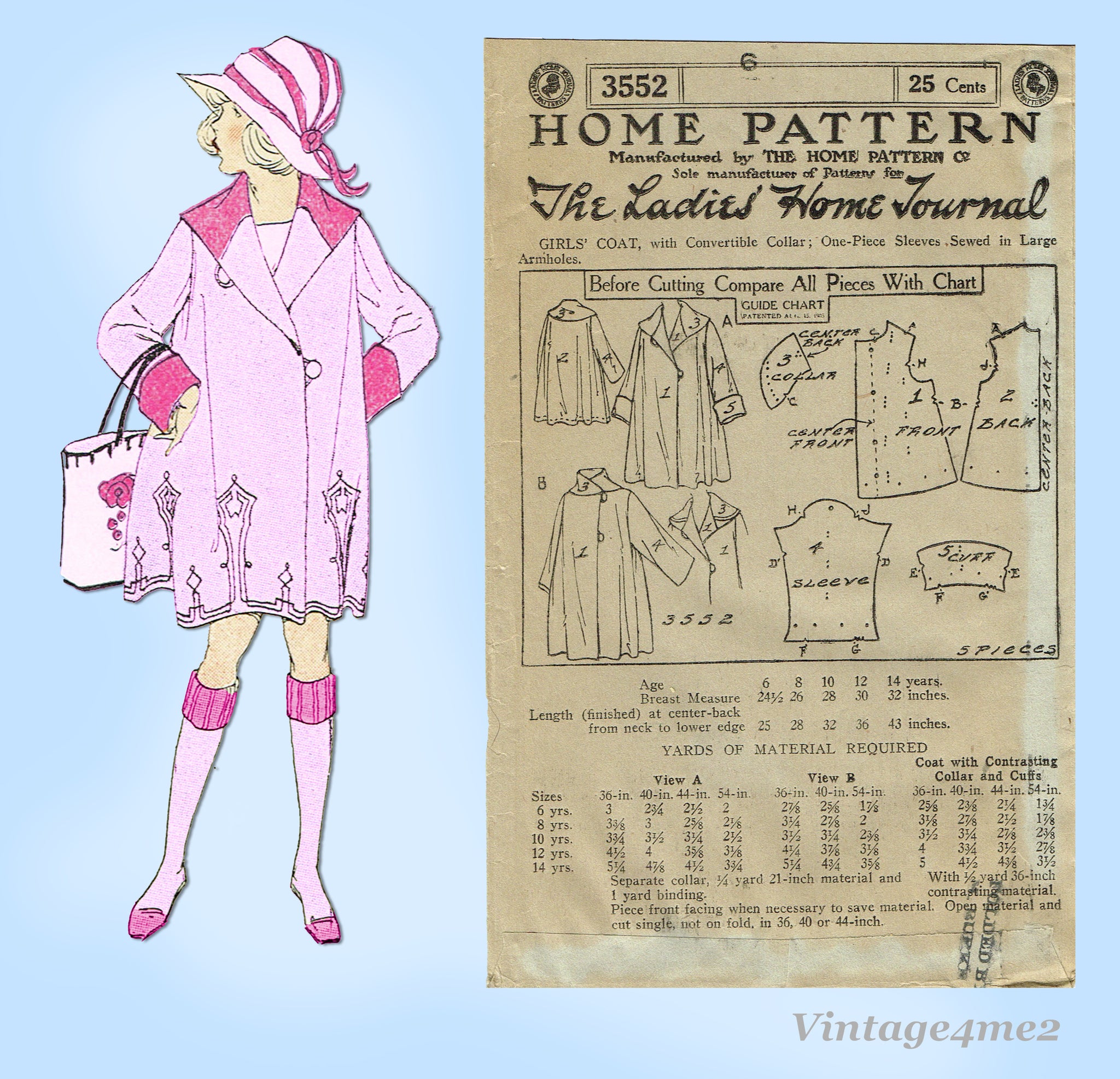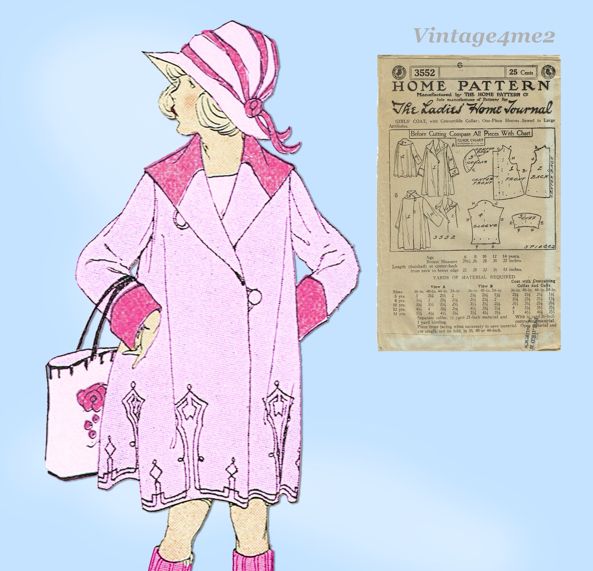 Ladies Home Journal 3552: 1920s Uncut Girls Dressy Coat Sz6 Vintage Sewing Pattern
