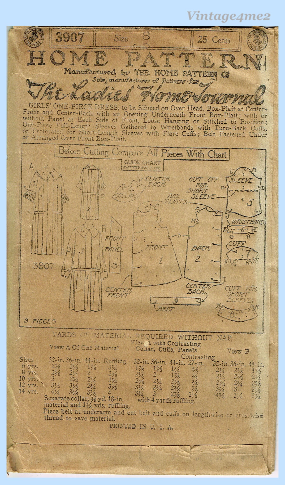 Ladies Home Journal 3907: 1920s Uncut Girls Dress Sz8 Vintage Sewing Pattern
