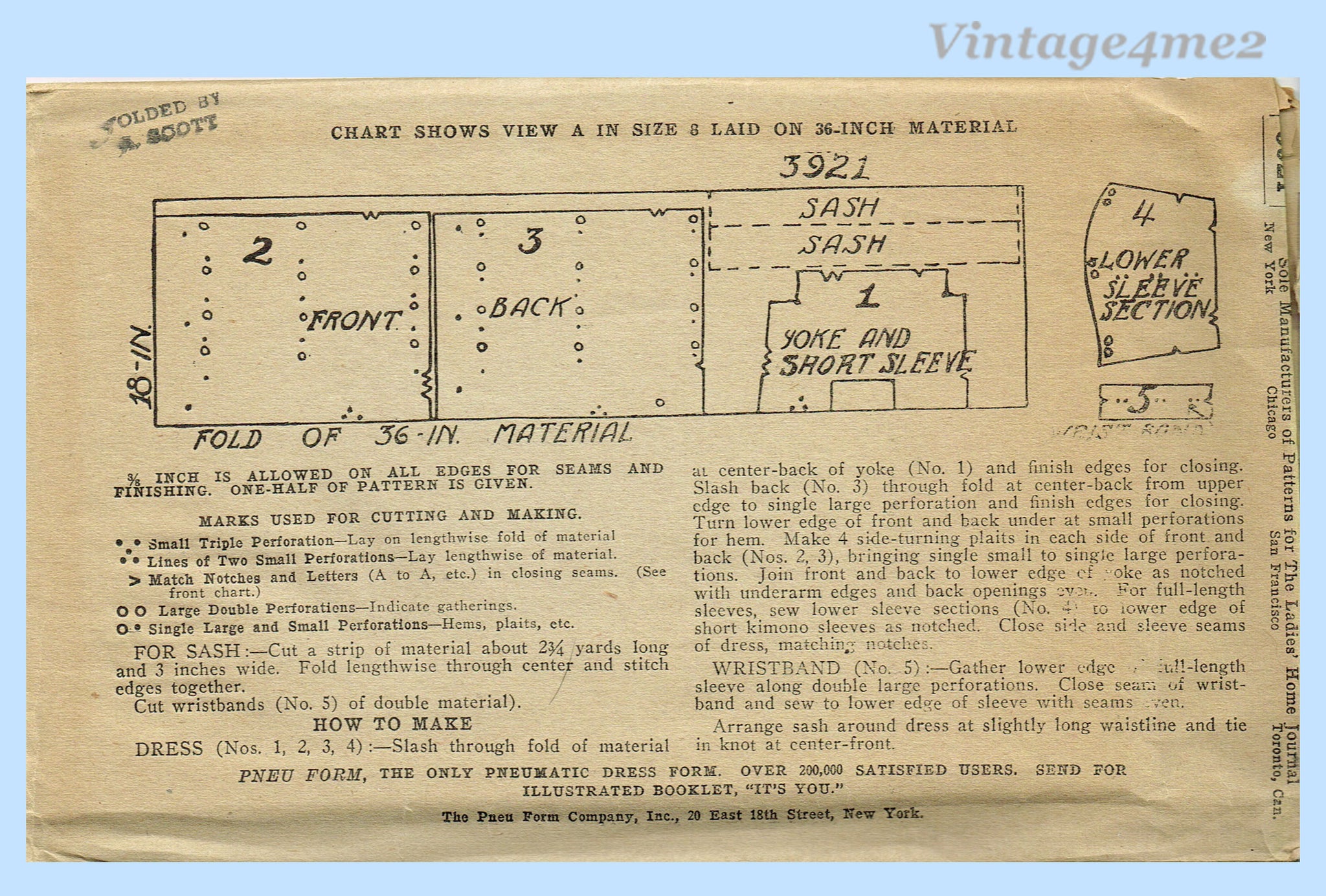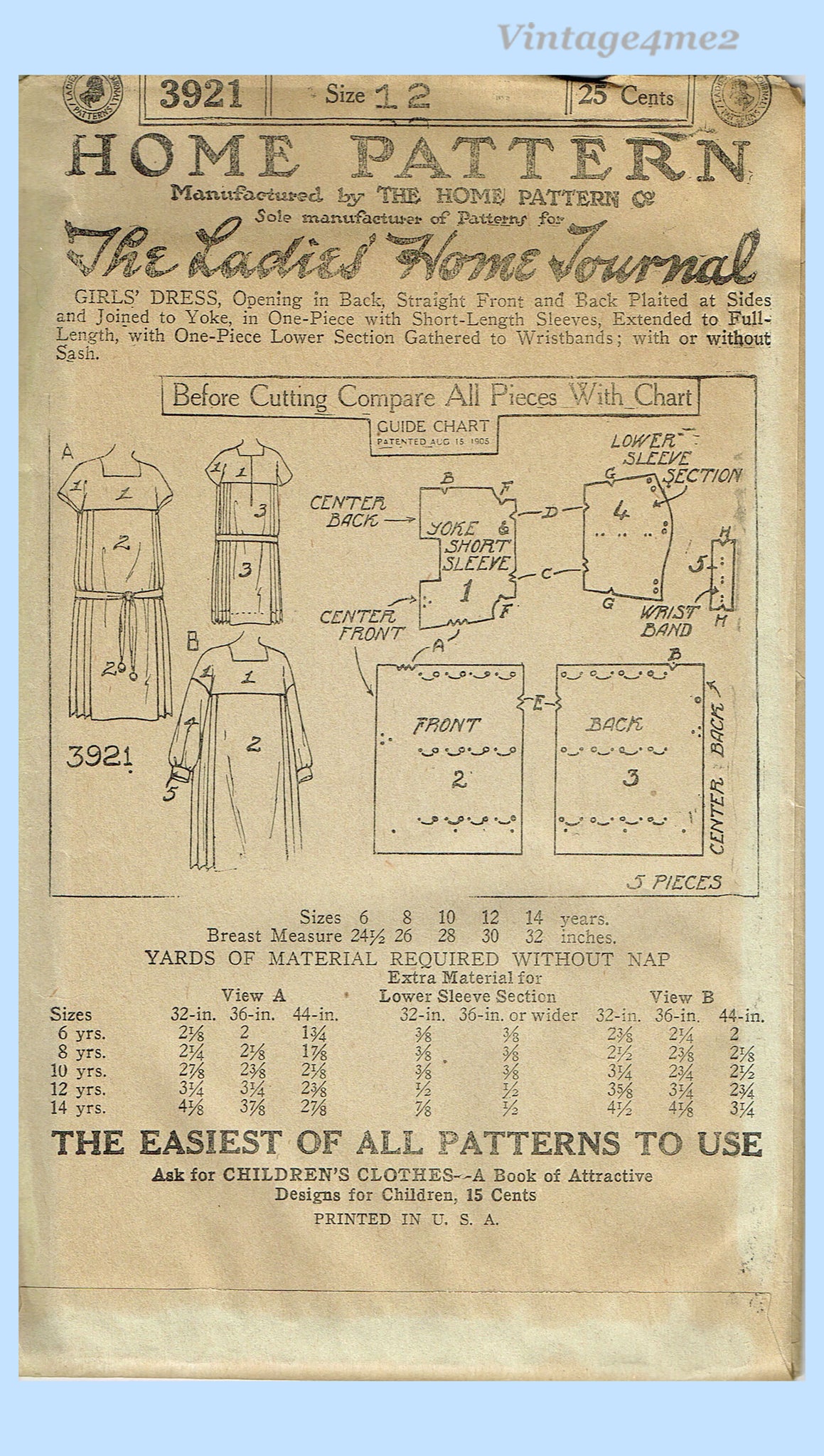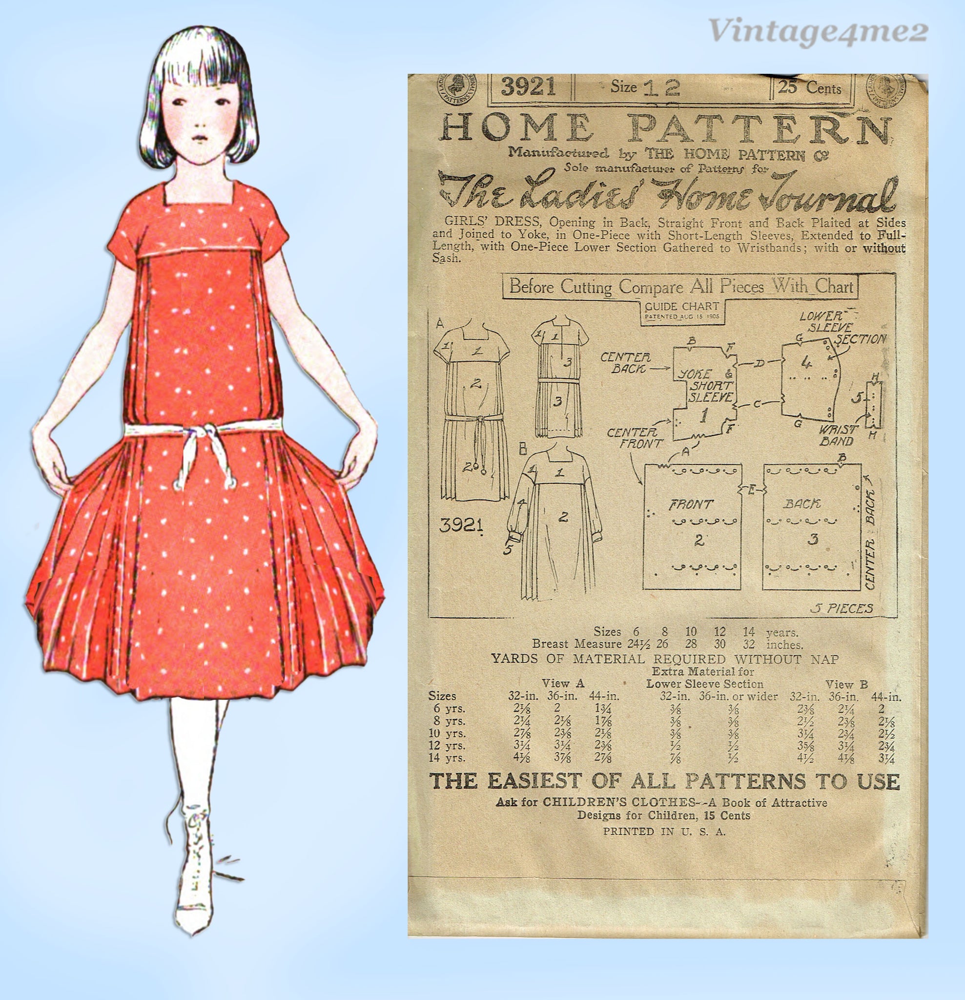 Ladies Home Journal 3921: 1920s Uncut Girls Dress Sz 12 Vintage Sewing Pattern
