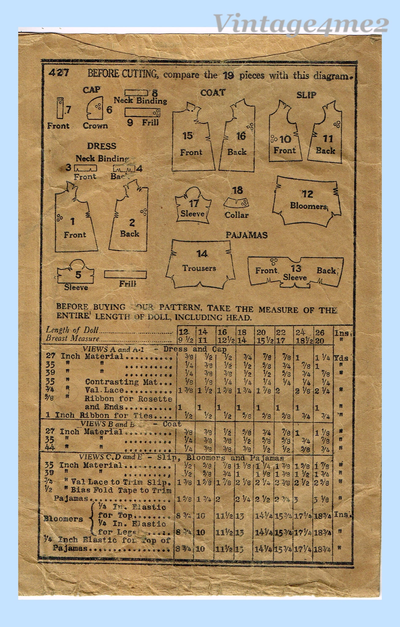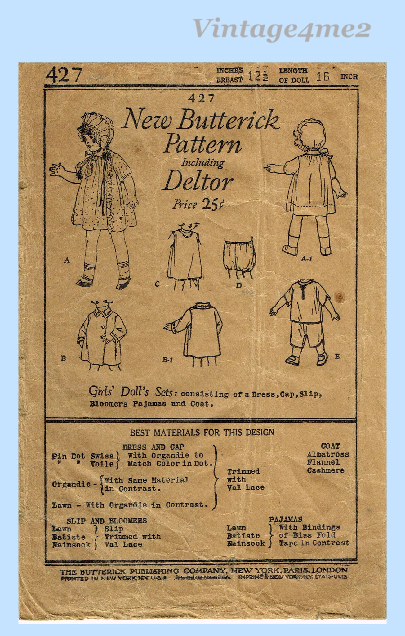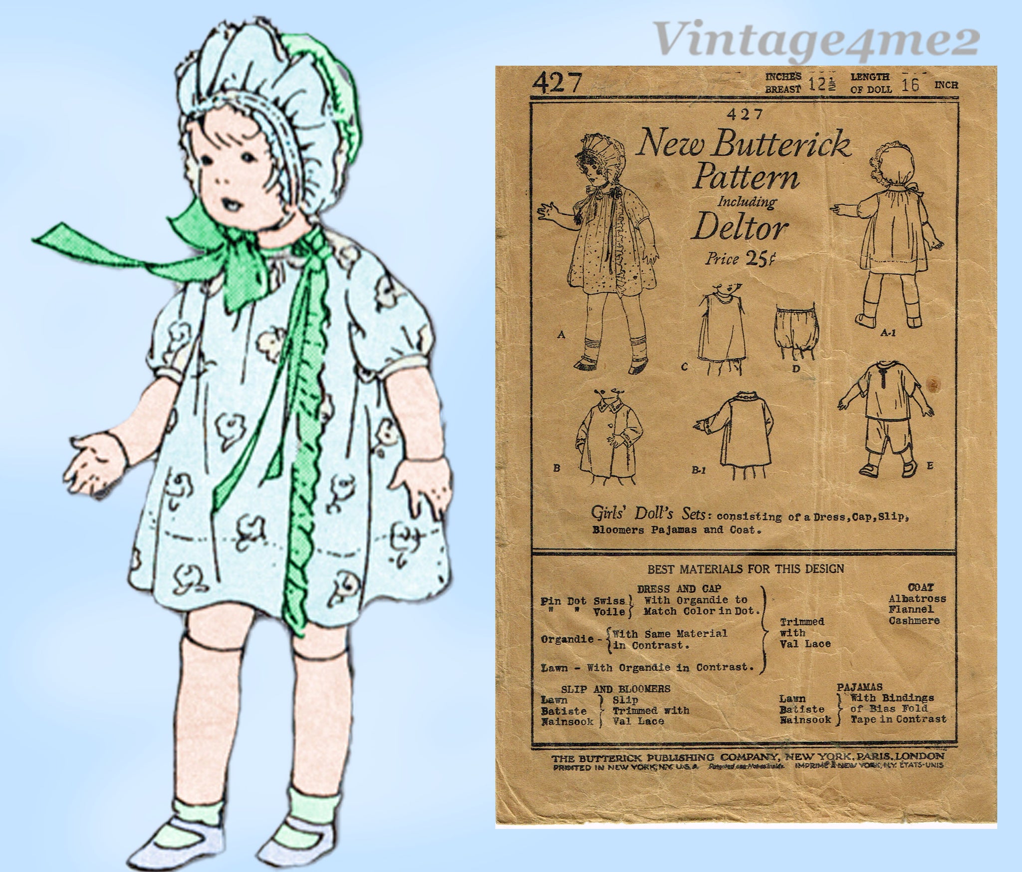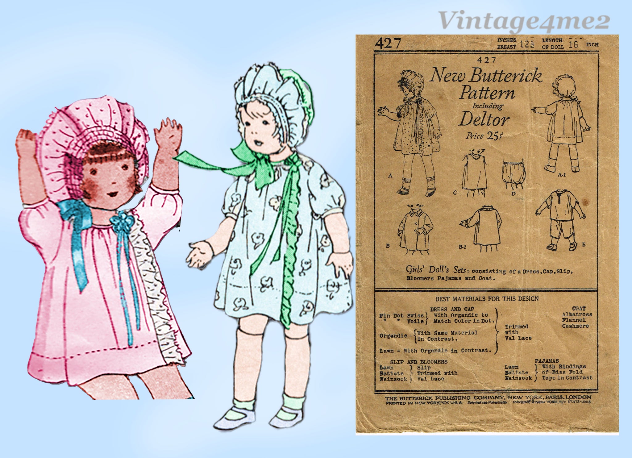 1920s Vintage Butterick Sewing Pattern 427 16 Inch Little Girl Doll Clothes Set