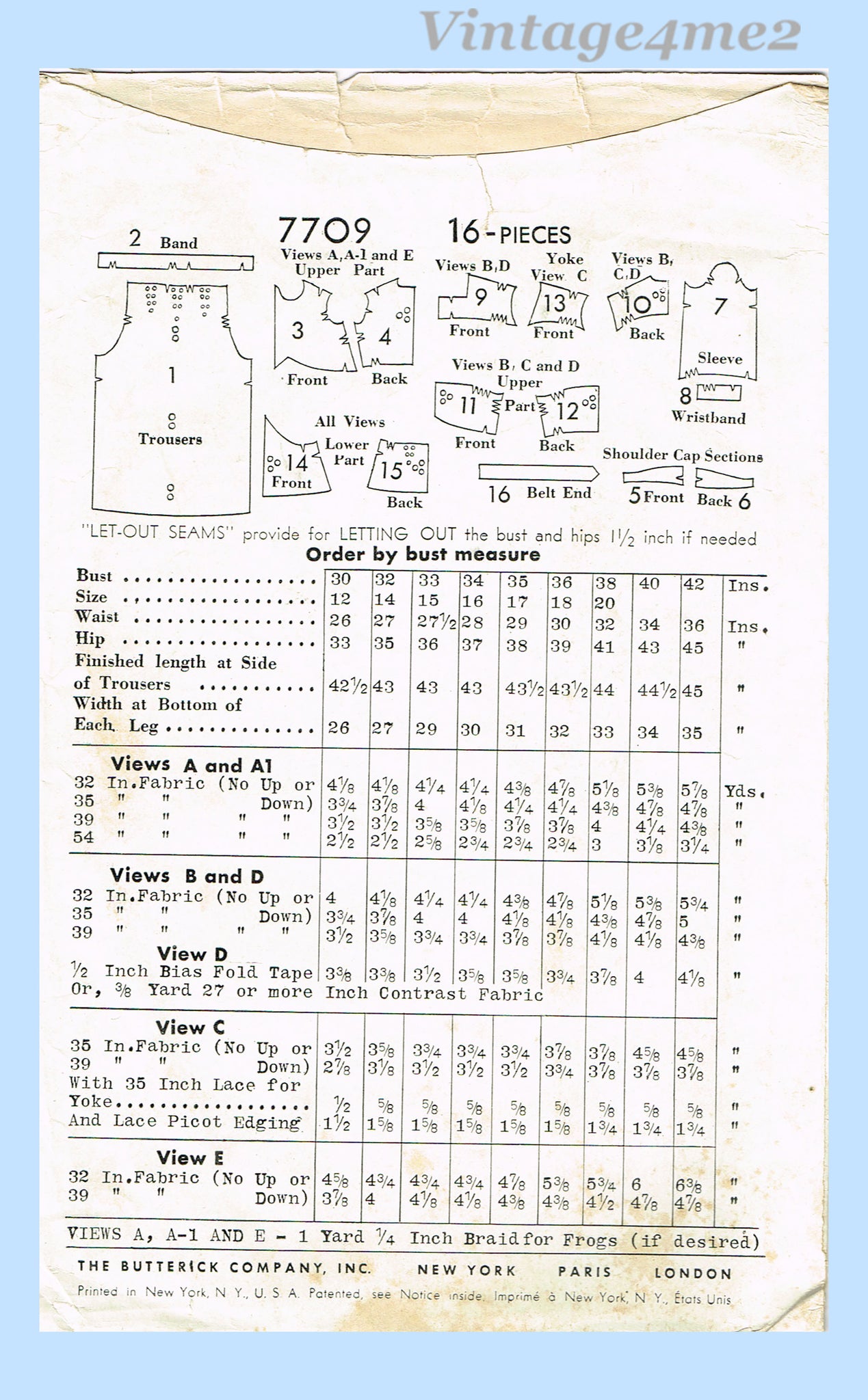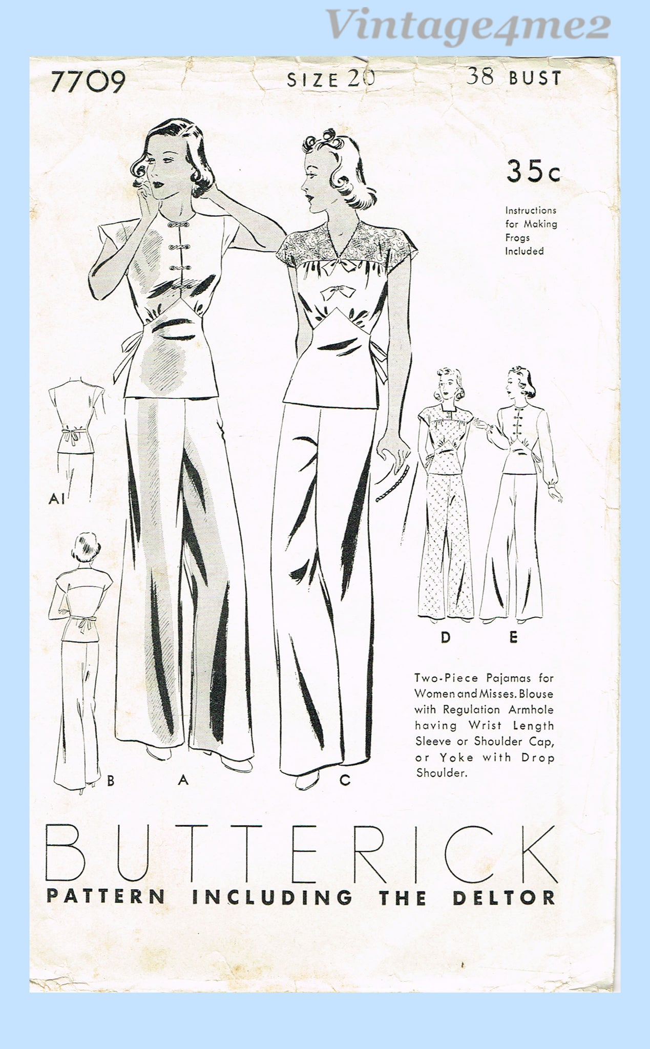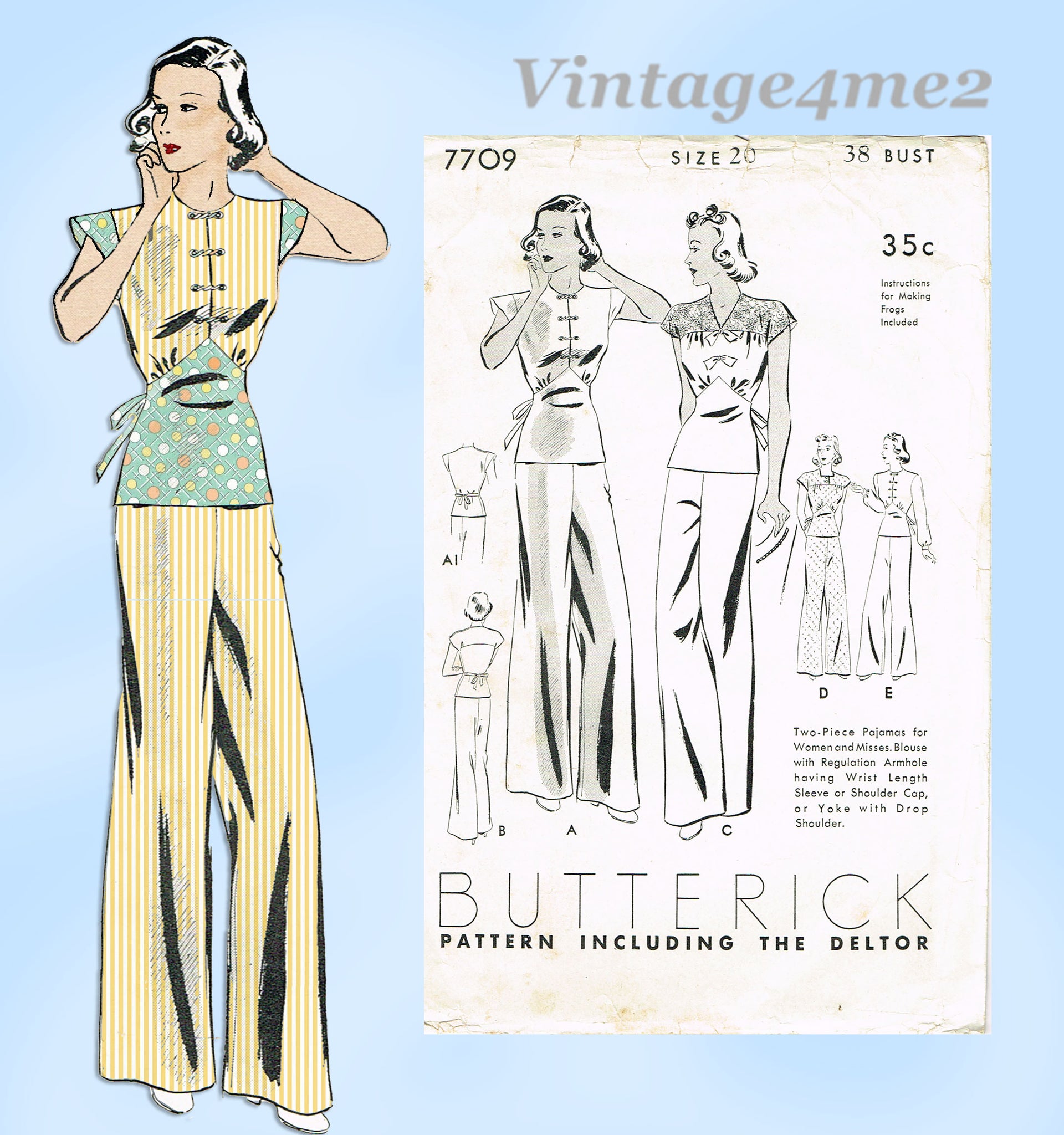 Butterick 7709: 1930s Misses 2 Piece Pajamas Sz 38 B Vintage Sewing Pattern