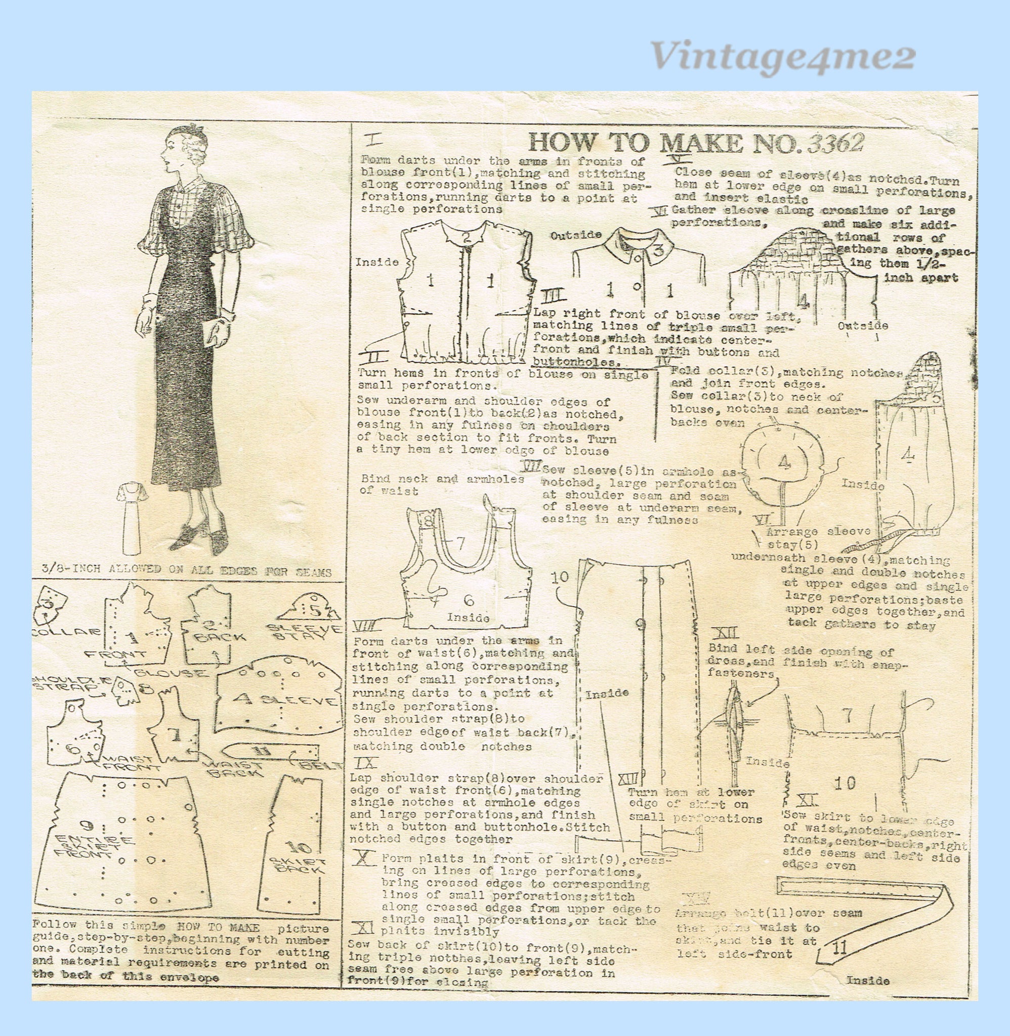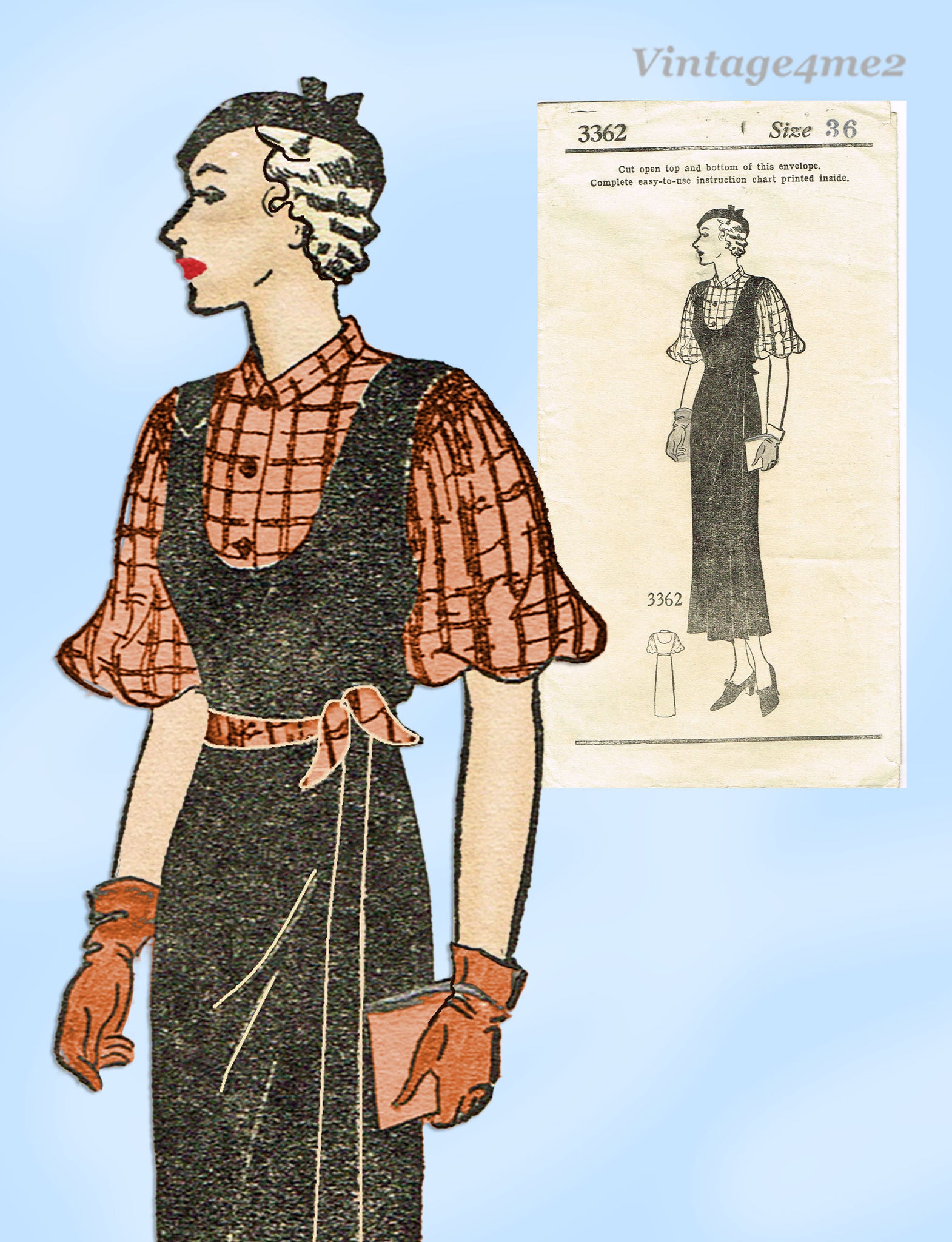 Own Name 3362: 1930s Misses Jumper Dress & Blouse 36 B Vintage Sewing Pattern