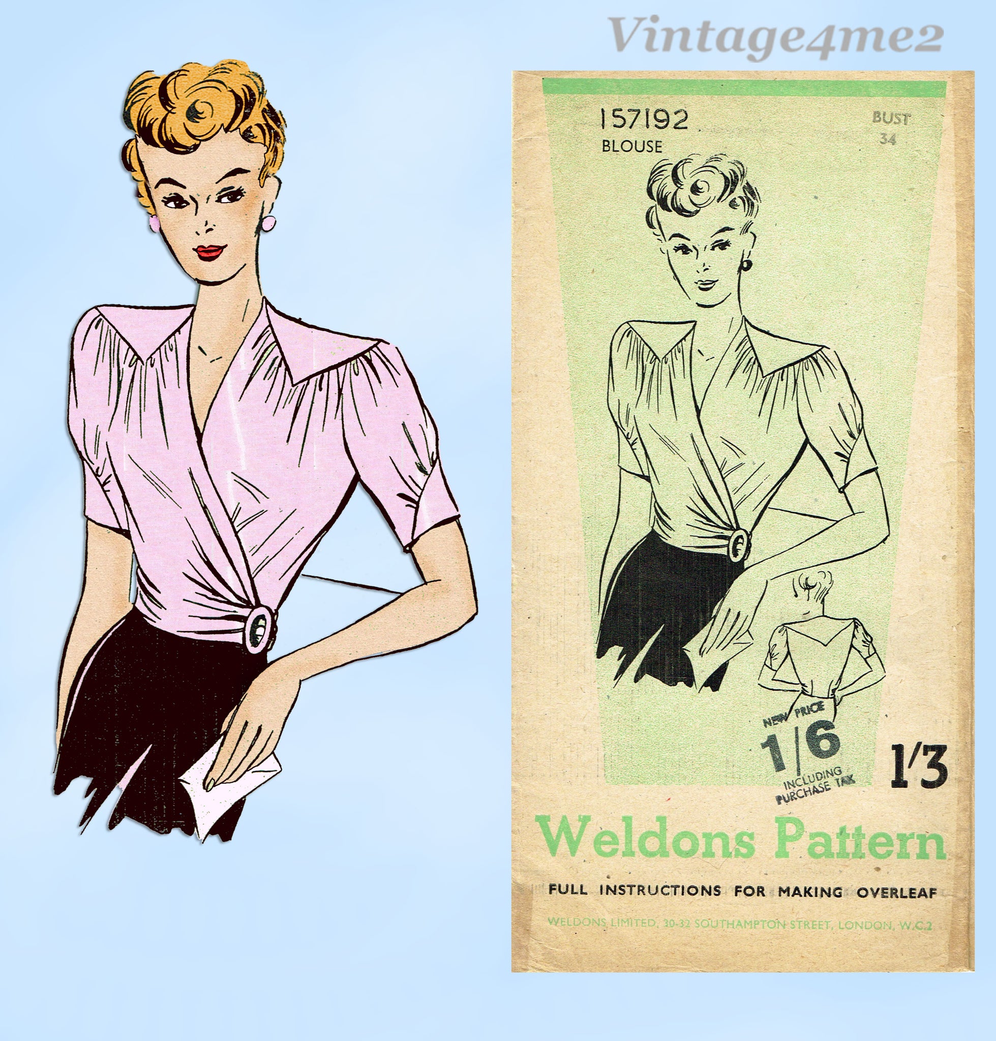 Weldon 157192: 1930s Uncut Misses Wrap Blouse Sz 34B Vintage Sewing Pattern