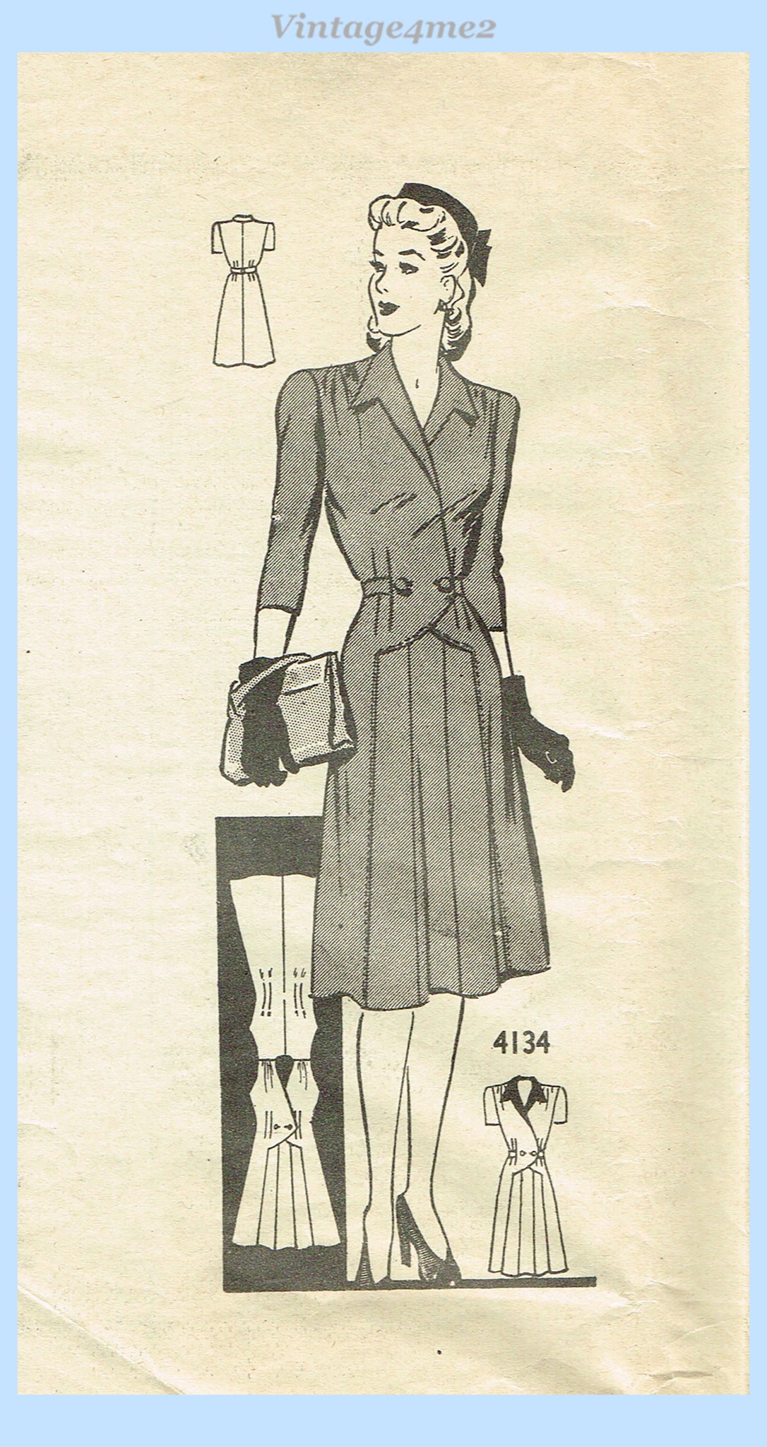 Anne Adams 4134: 1940s Stunning Misses WWII Dress Sz 36 B Vintage Sewing Pattern