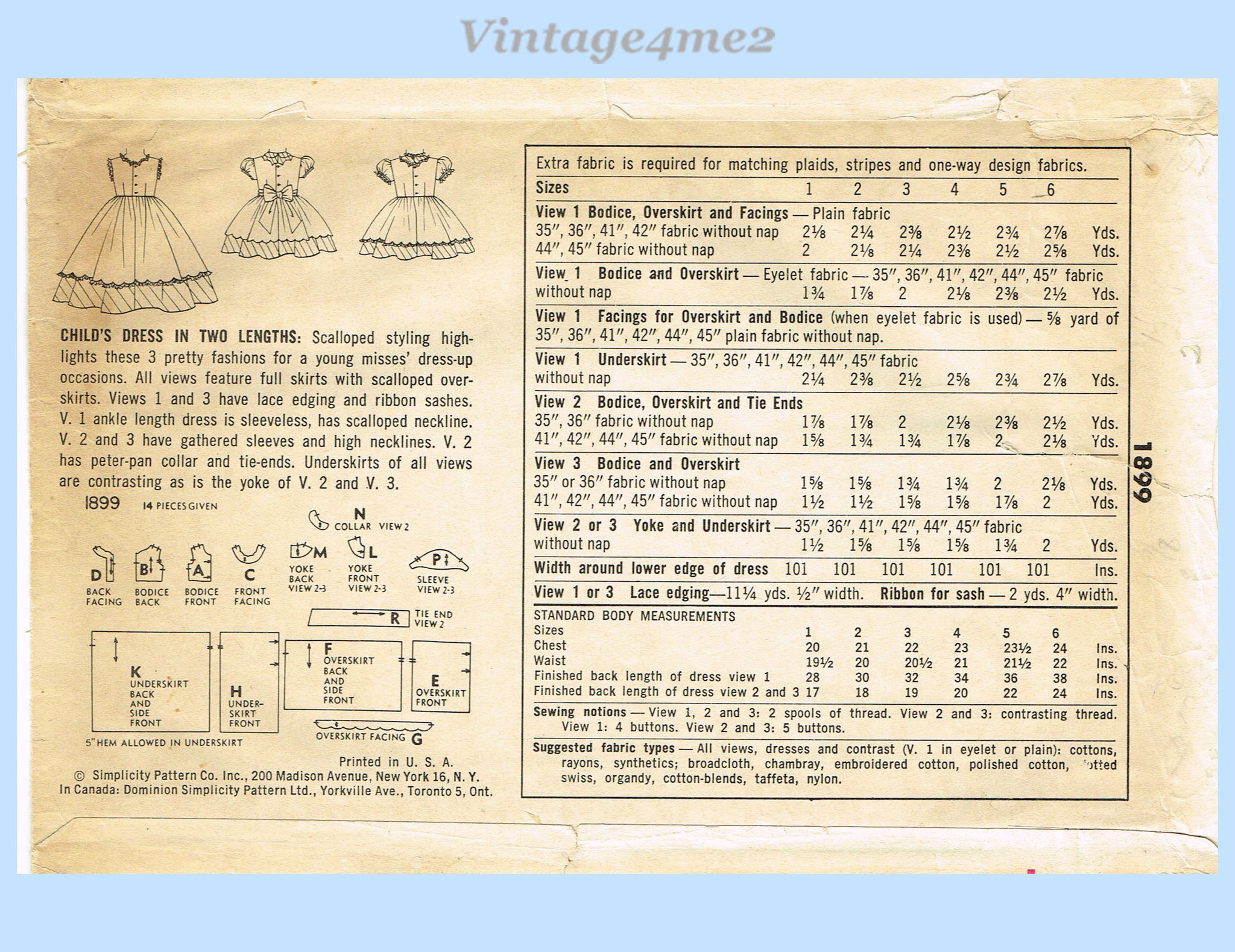 Simplicity 1899: 1950s Cute Baby Girls Party Dress Sz2 Vintage Sewing Pattern