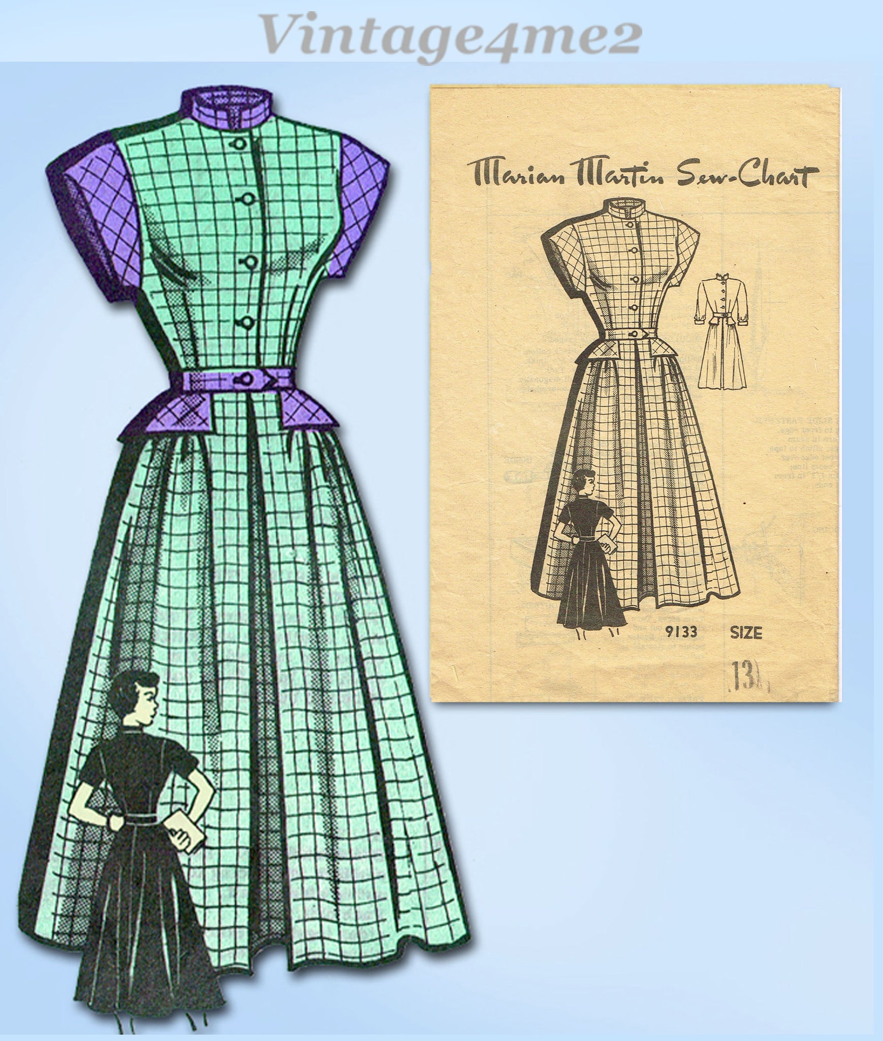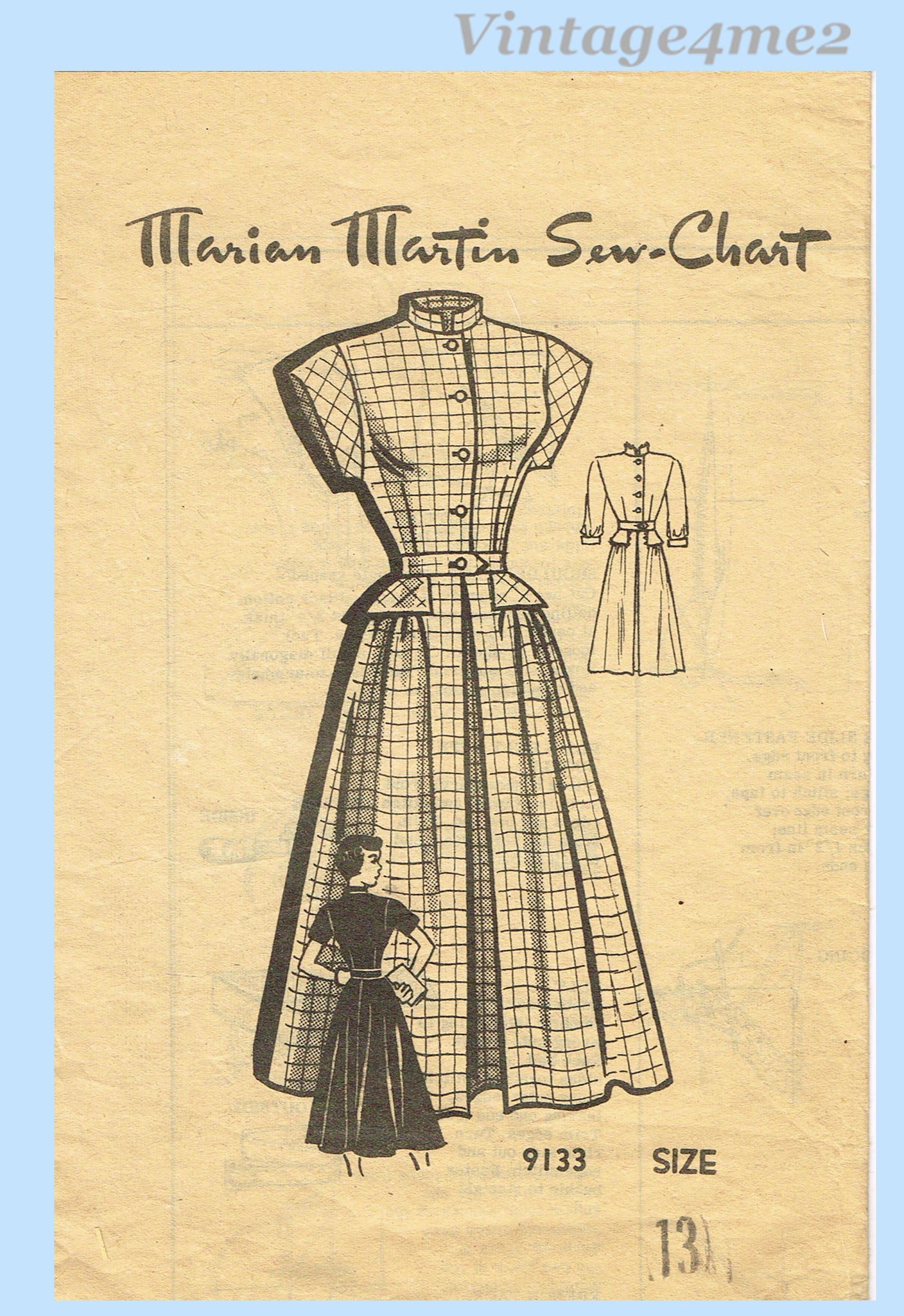 1950s Vintage Marian Martin Sewing Pattern 9133 Cute Misses Peplum Dress 31 B