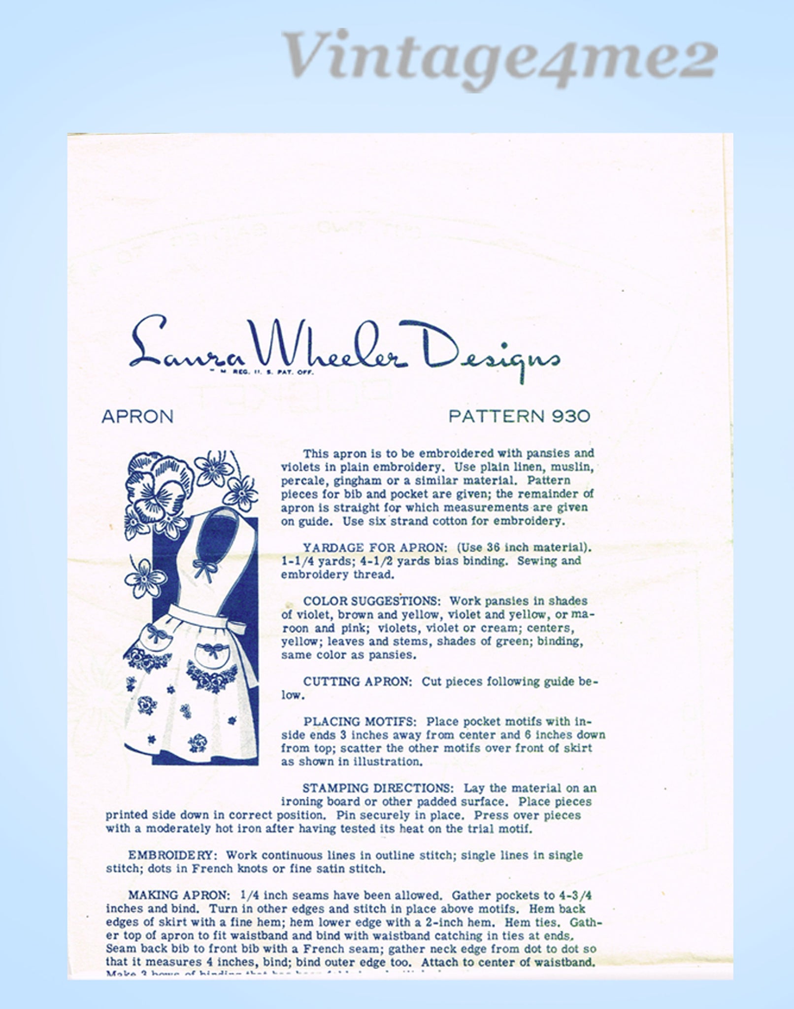 1950s Vintage Laura Wheeler Sewing Pattern 930 Uncut Misses Full Bib Apron Fits All