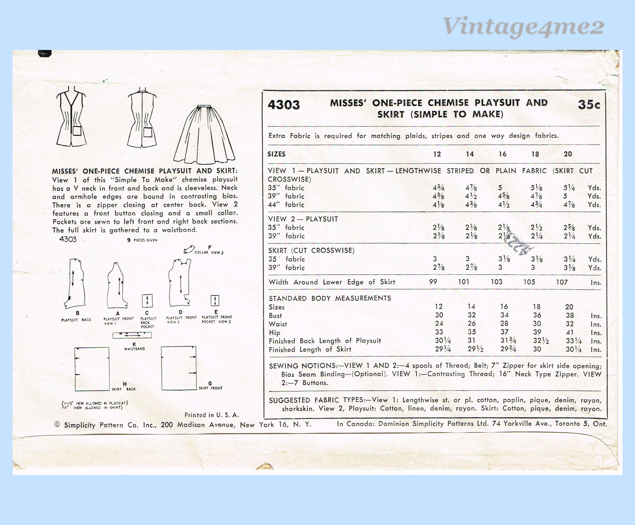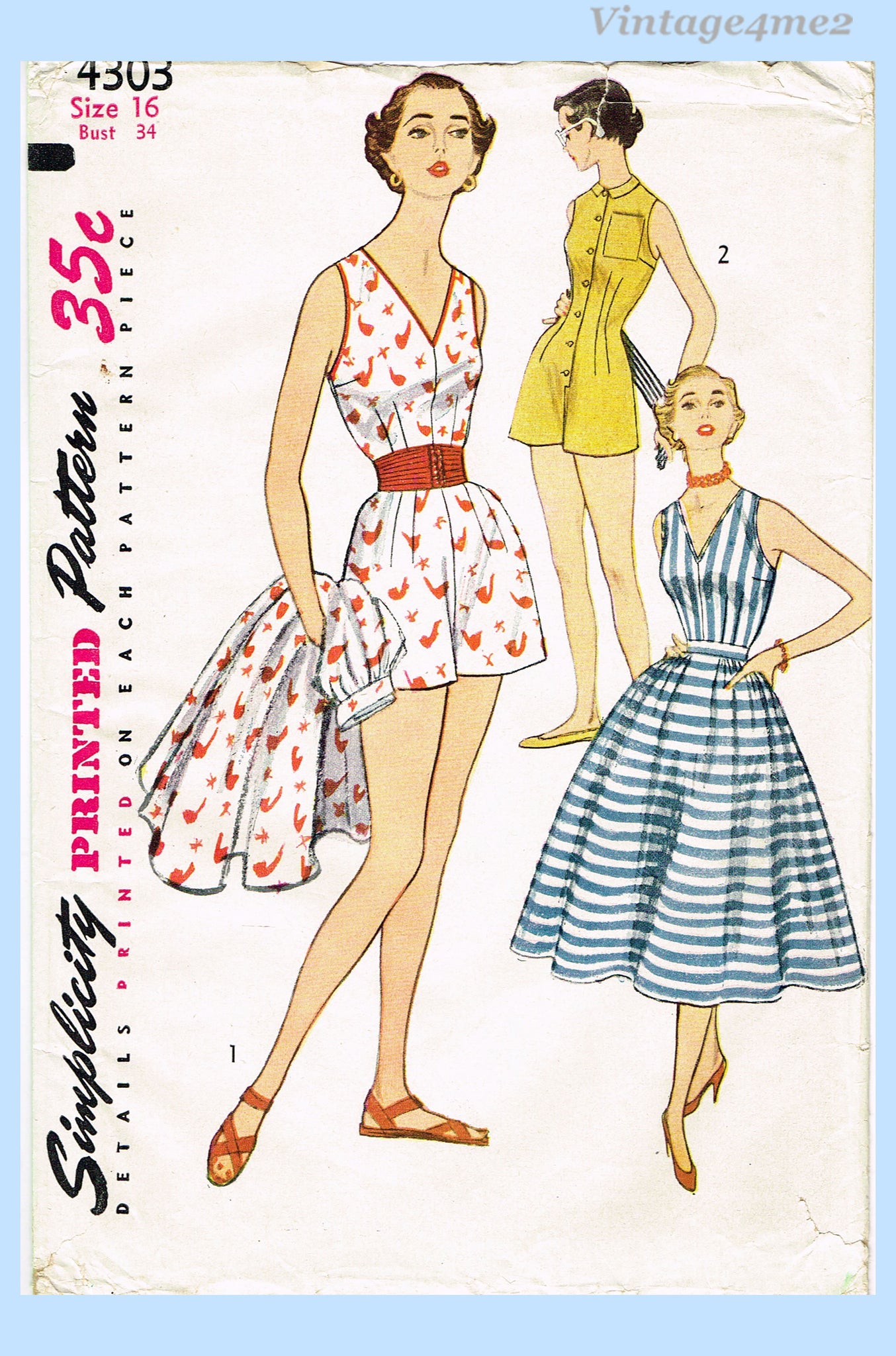 1950s Vintage Simplicity Sewing Pattern 4303 Chic Uncut Misses Playsuit Sz 34 B