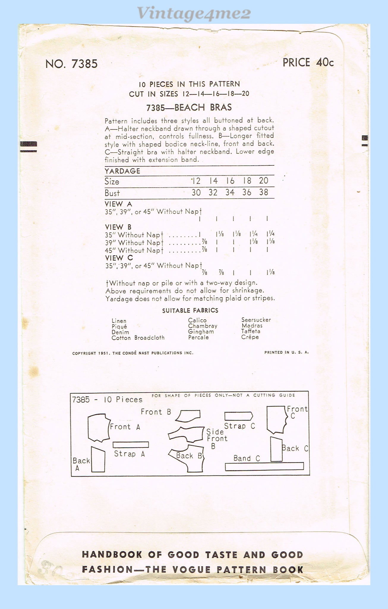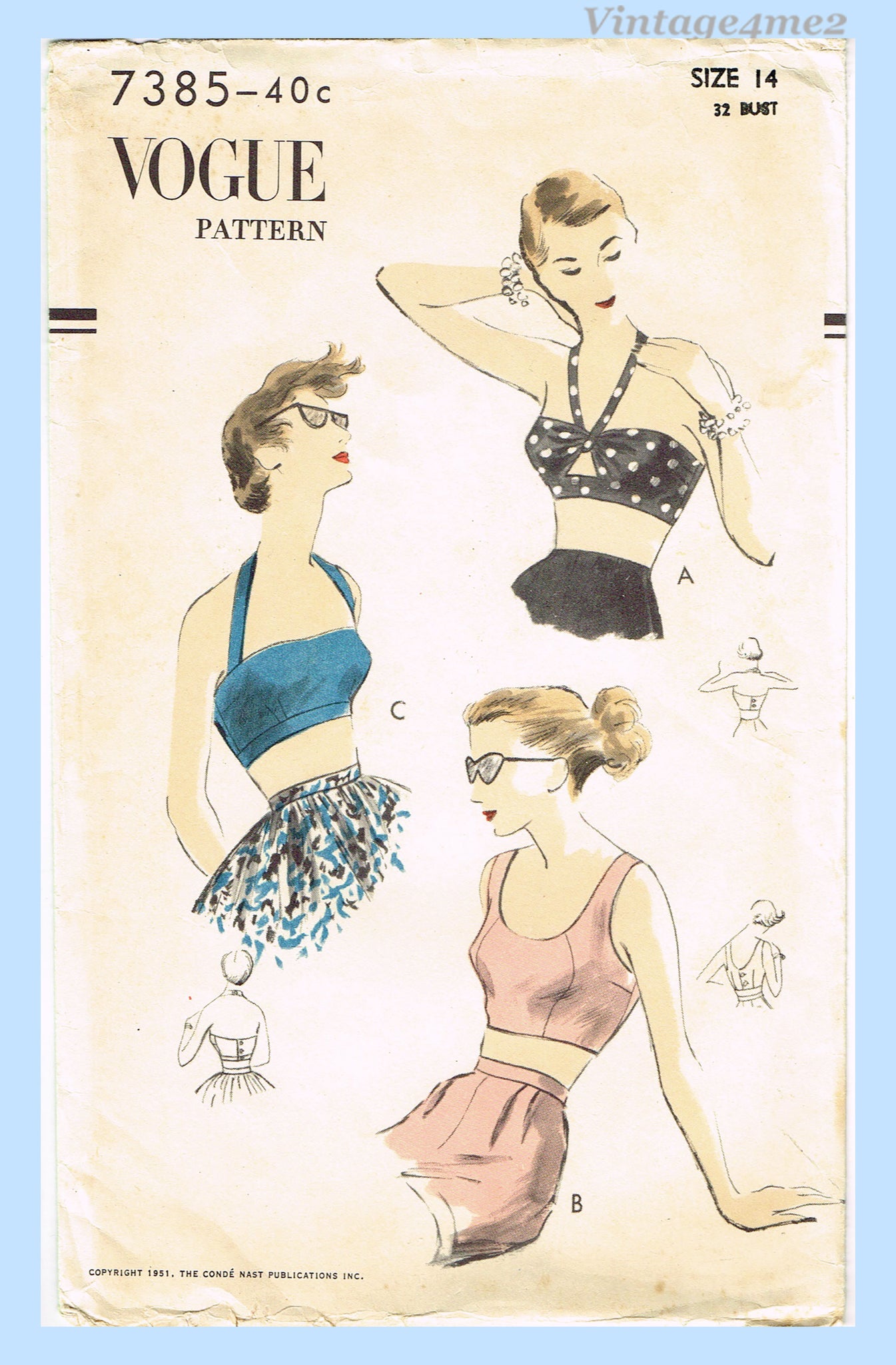 1950s Vintage Vogue Sewing Pattern 7385 Rare Misses Beach Bra Top Sz 32 B