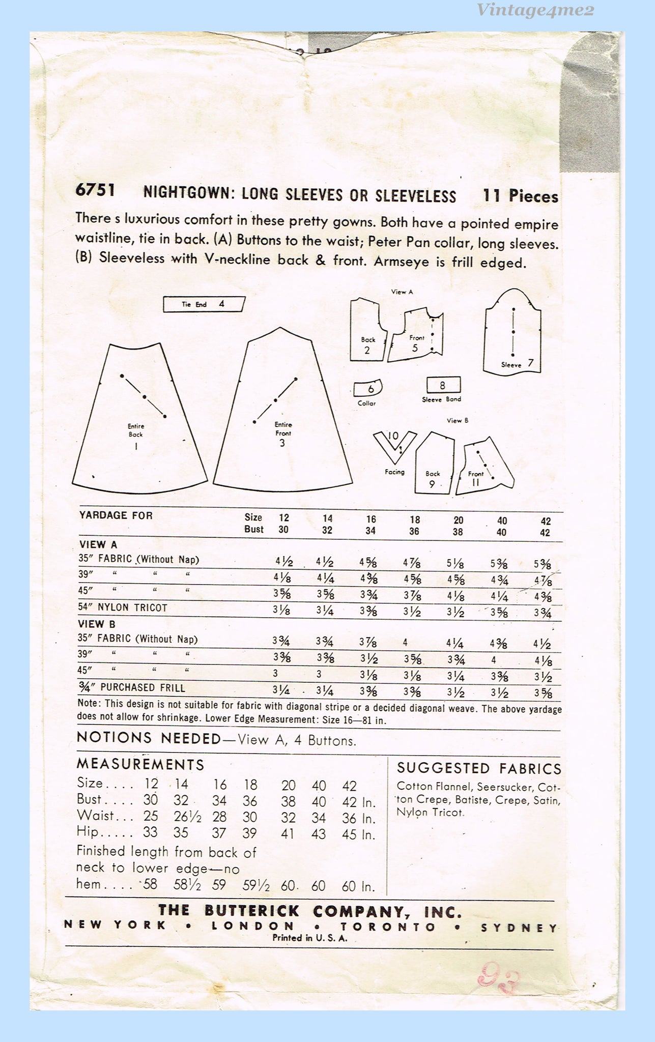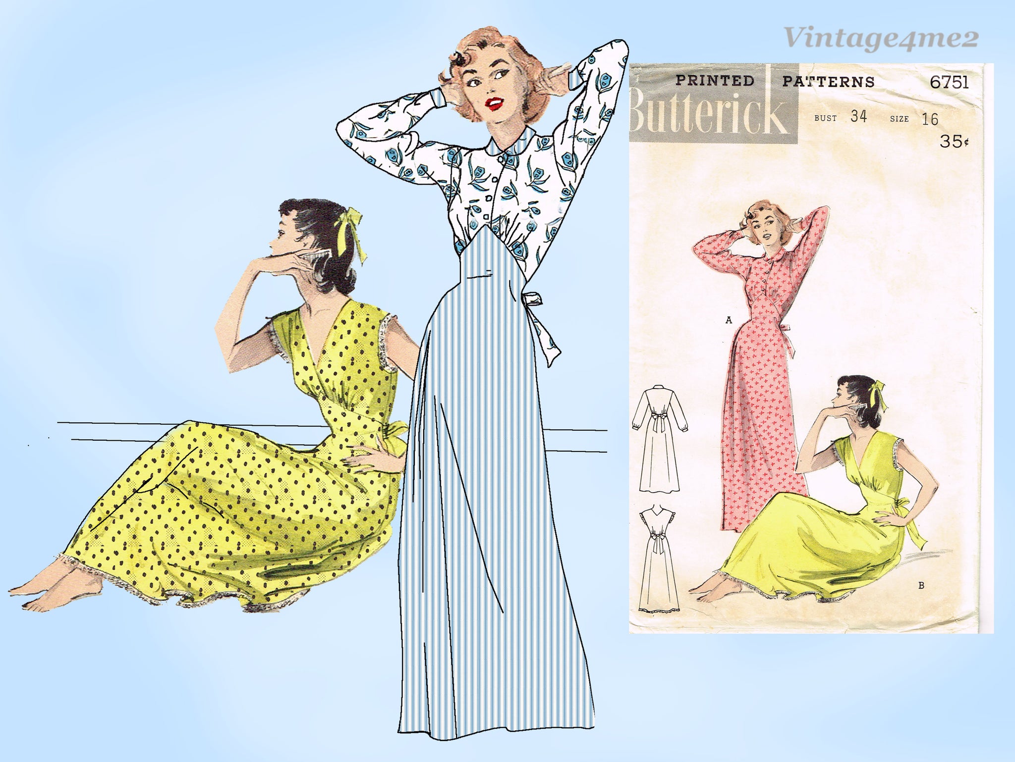 Butterick 6751: 1950s Uncut Misses Bias Nightgown Sz 34 B Vintage Sewing Pattern