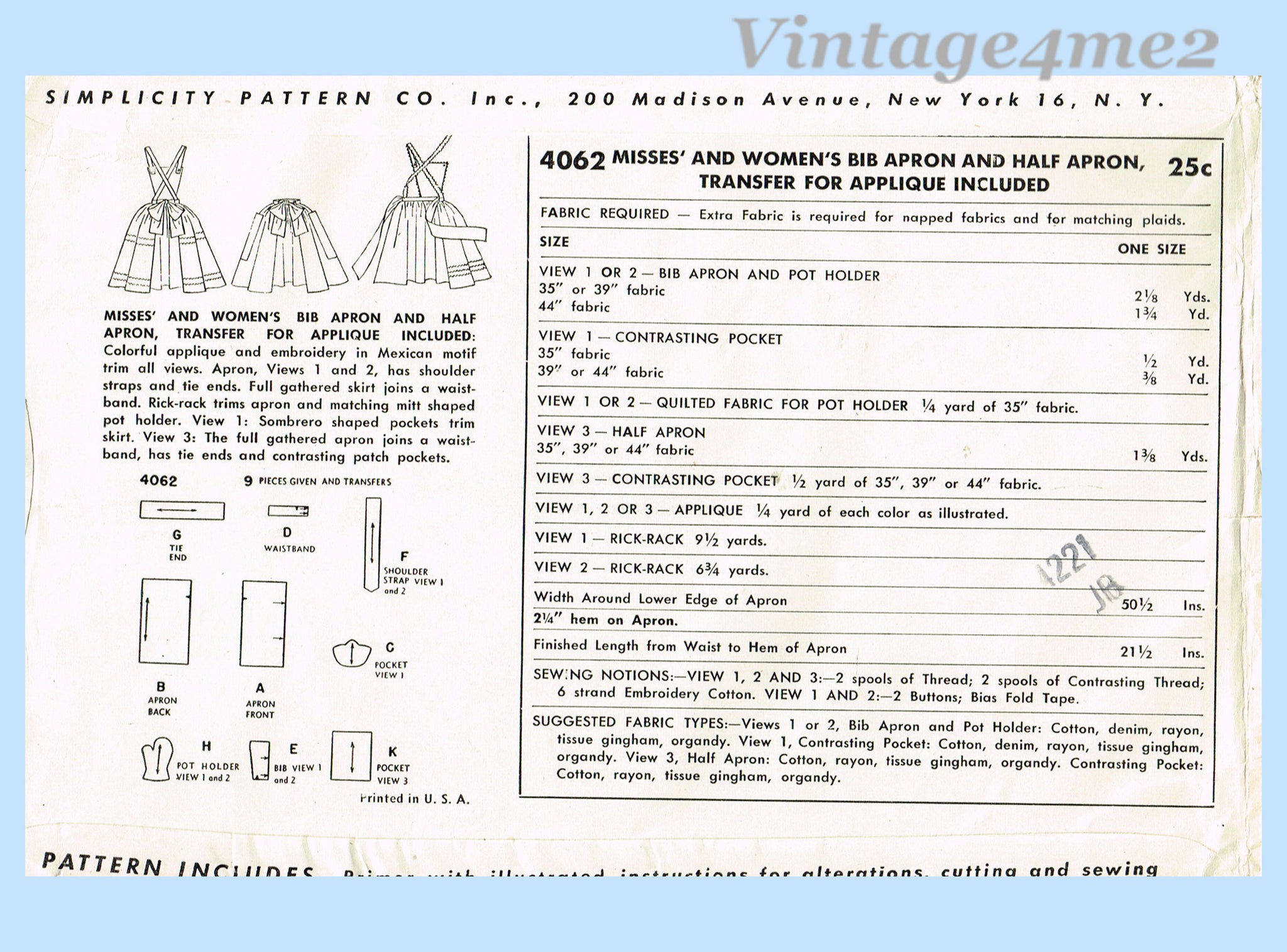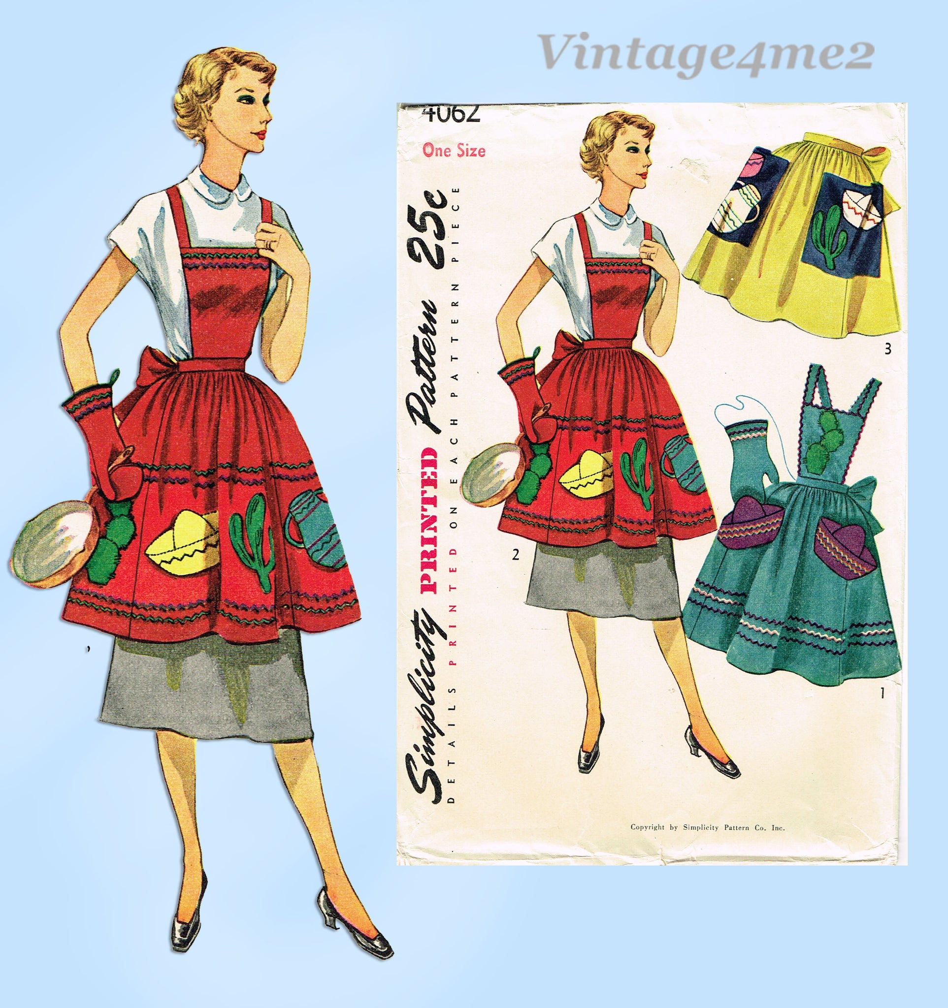 Simplicity 4062: 1950s Uncut Misses Fiesta Party Apron Fits All Vintage Sewing Pattern