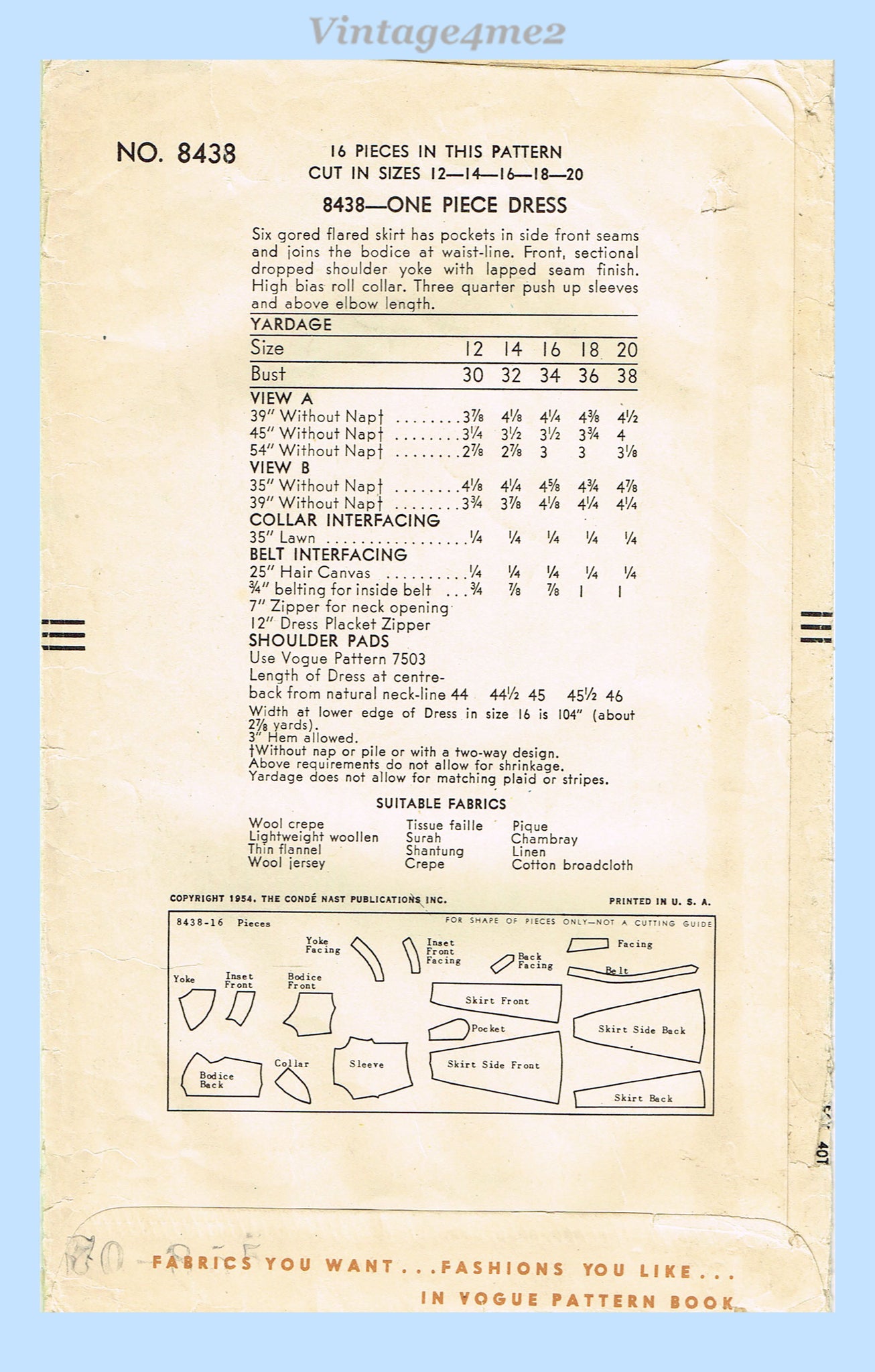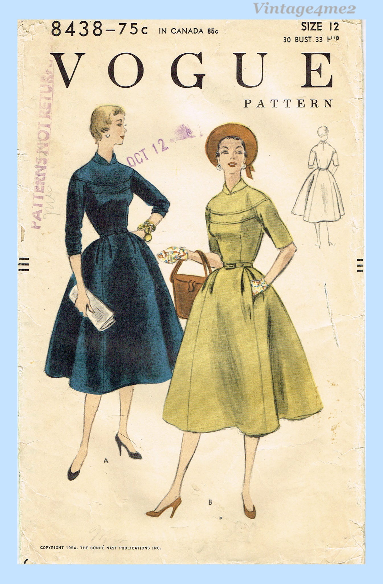 Vogue 8438: 1950s Stylish Misses Street Dress Sz 30 B Vintage Sewing Pattern