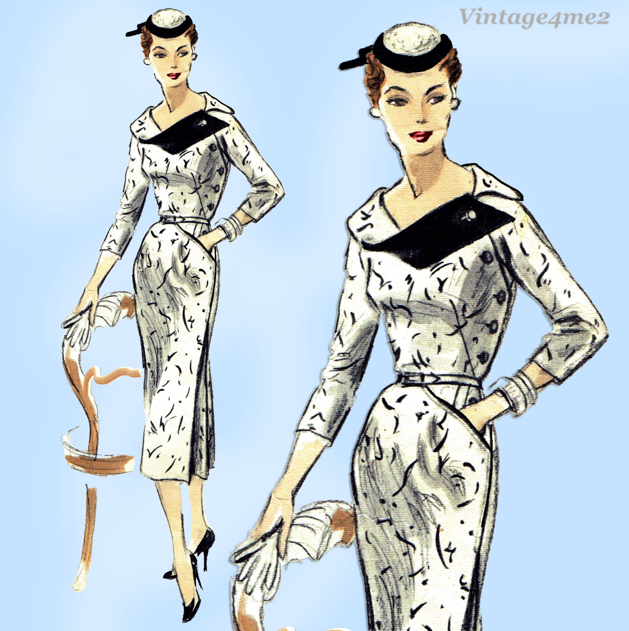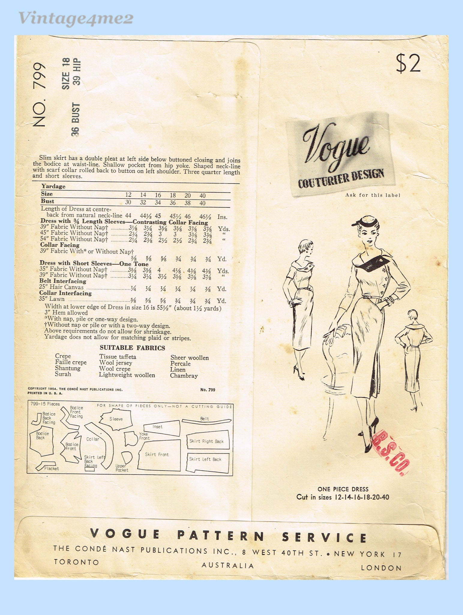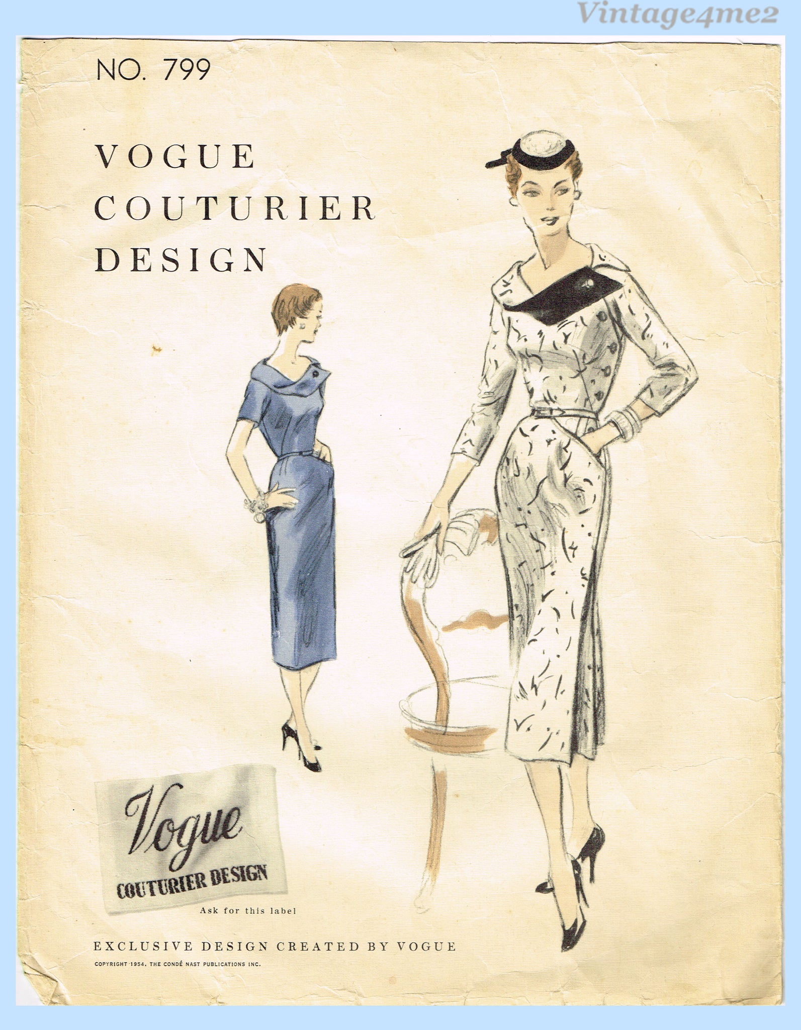 Vogue Couturier Design 799: 1950s Misses Street Dress 36B Vintage Sewing Pattern