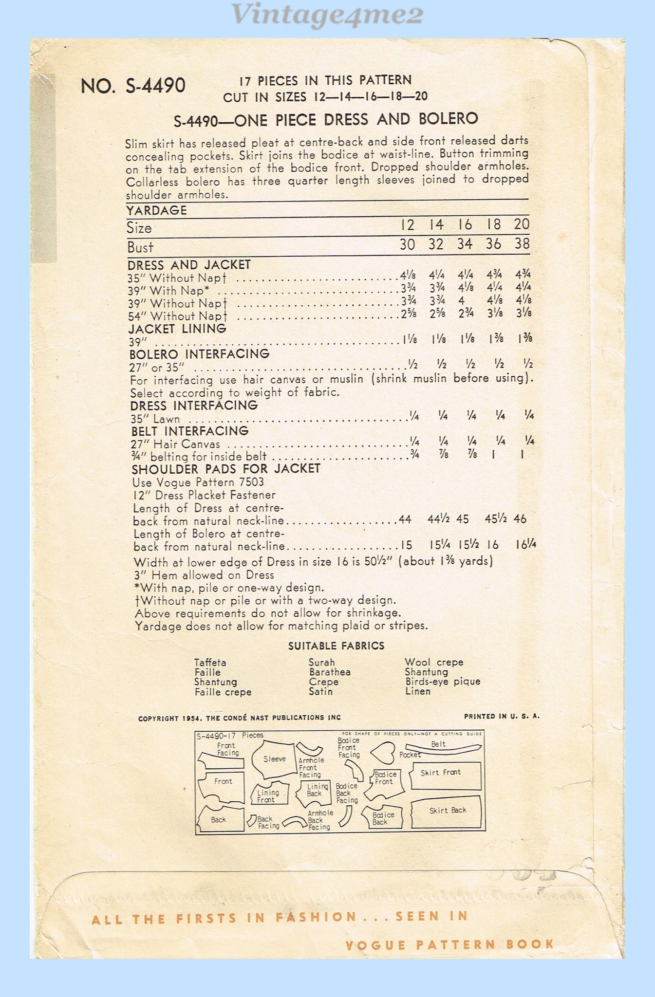 Vogue Special Design S-4490: 1950s Misses Dress 32 B Vintage Sewing Pattern