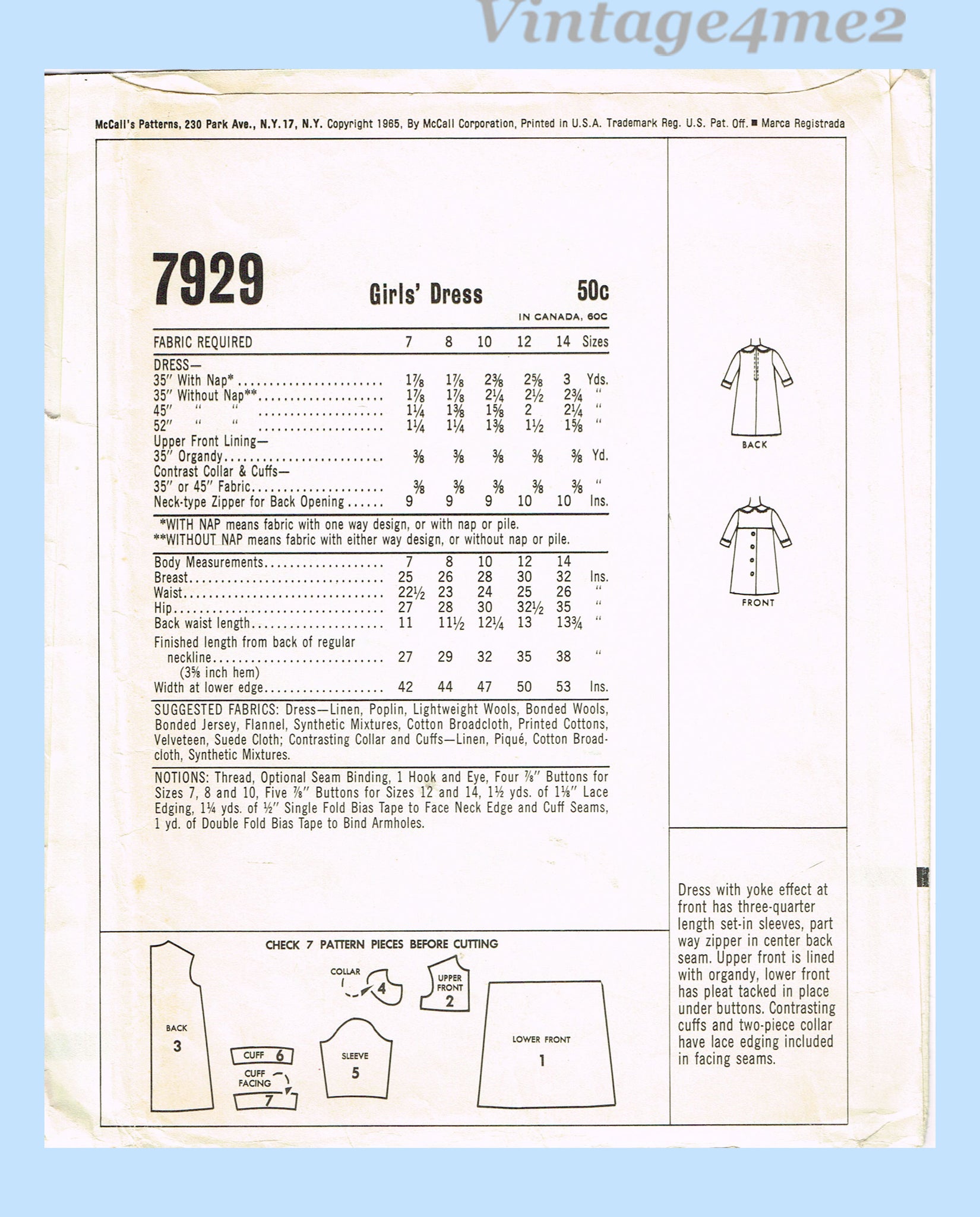 1960s Vintage McCalls Sewing Pattern 7929 Designer Helen Lee Girls Dress Sz10