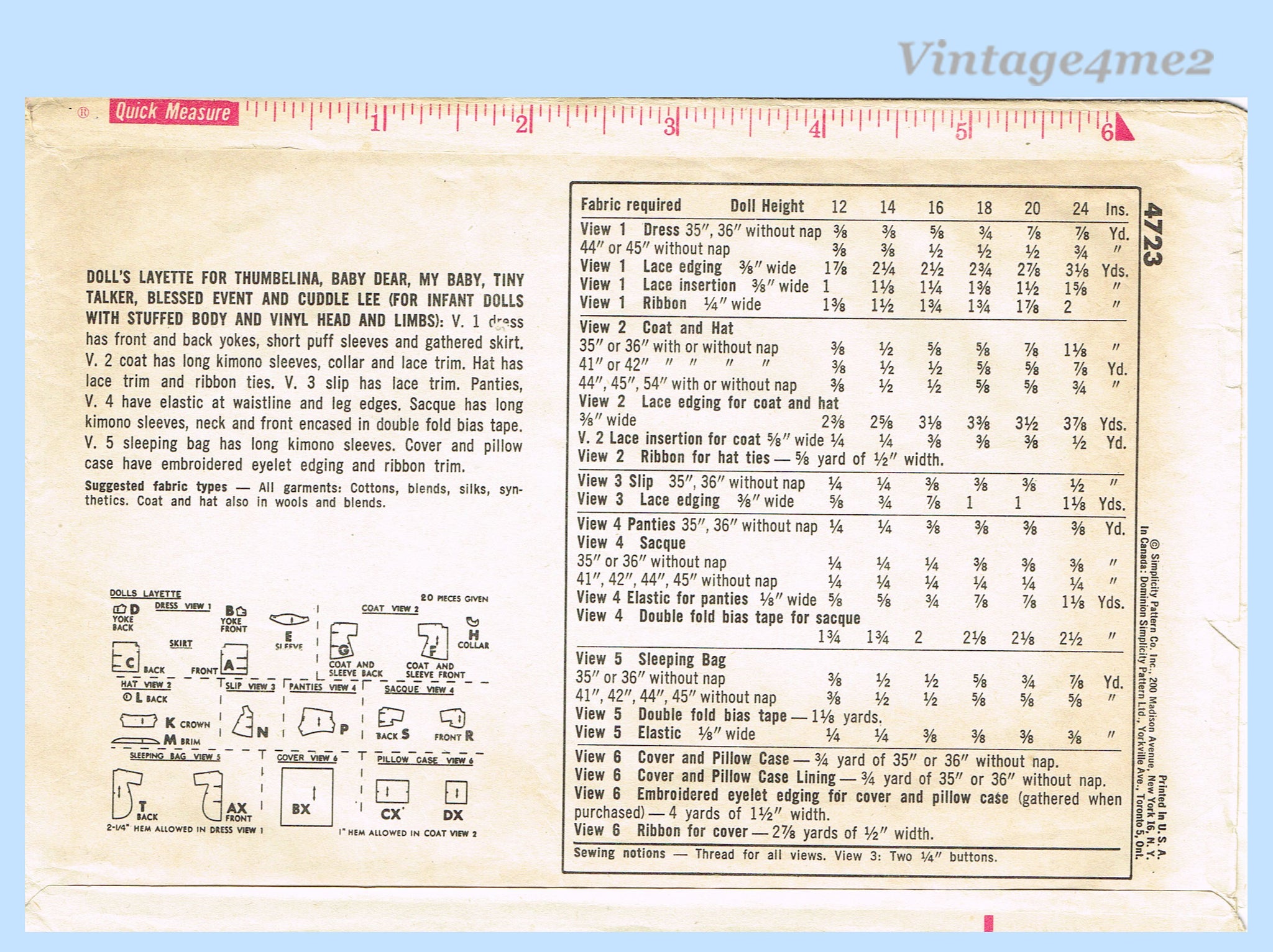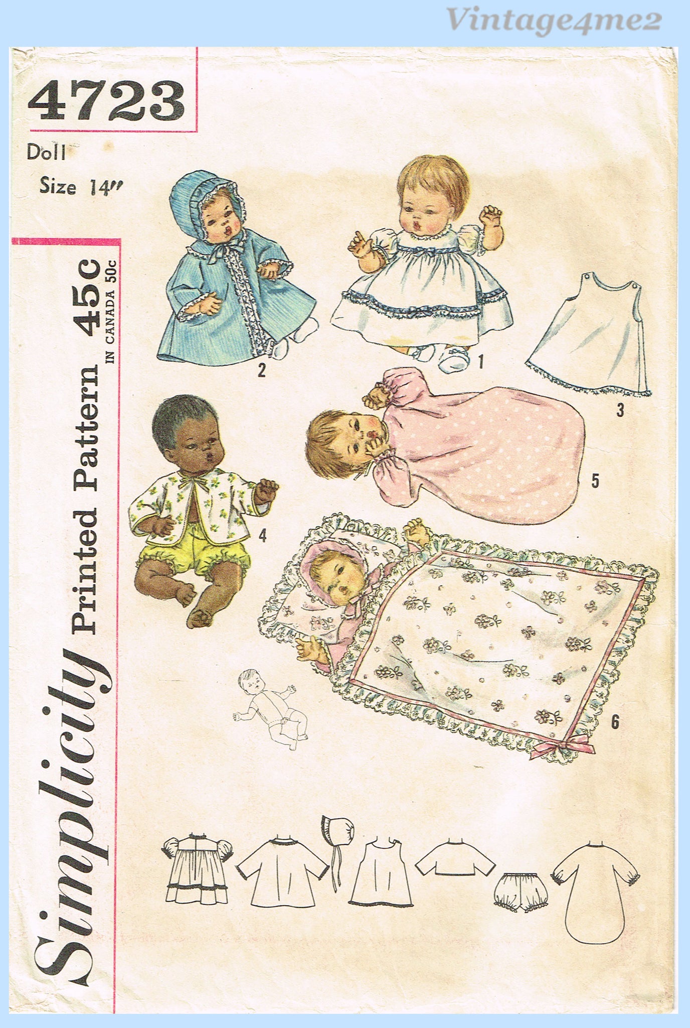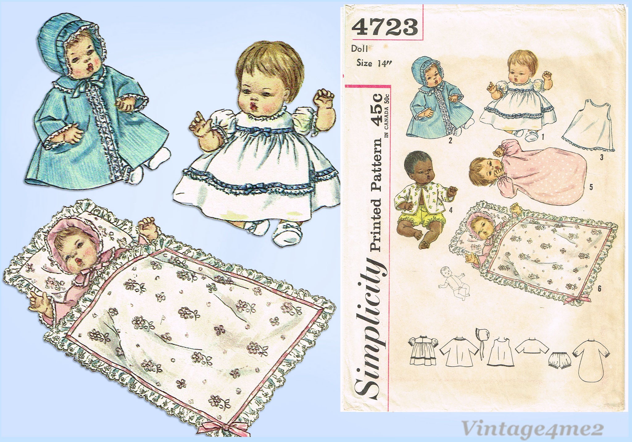1960s Vintage Simplicity Sewing Pattern 4723 Cute 14 Inch Baby Doll Clothes Set