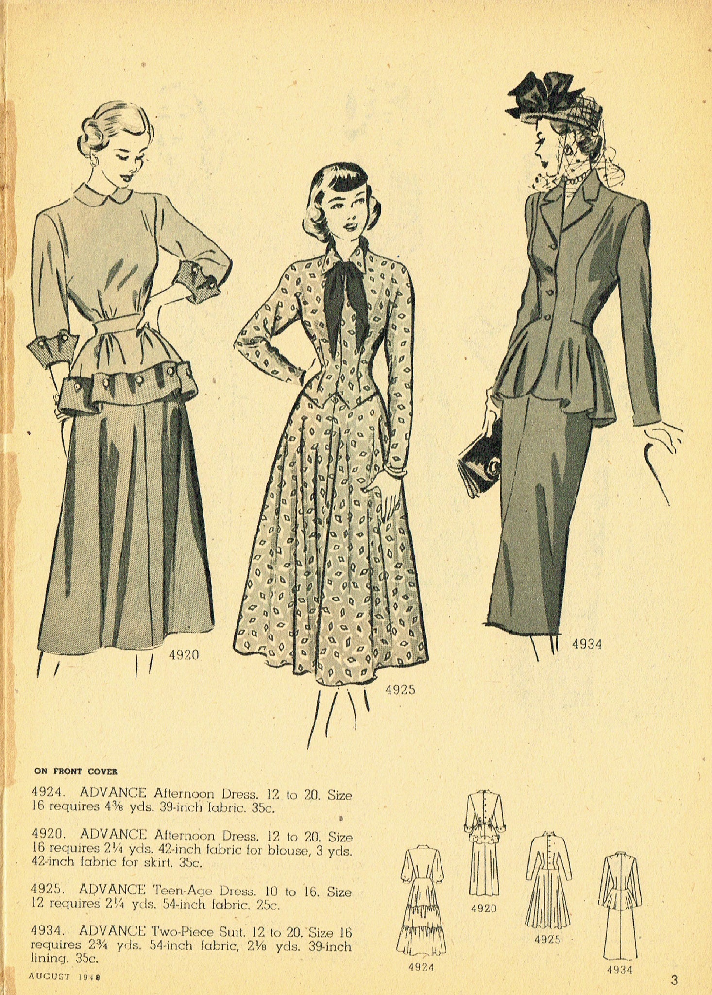 Digital Download Advance Fashion Flyer August 1948 Small 1940s Sewing Pattern Catalog