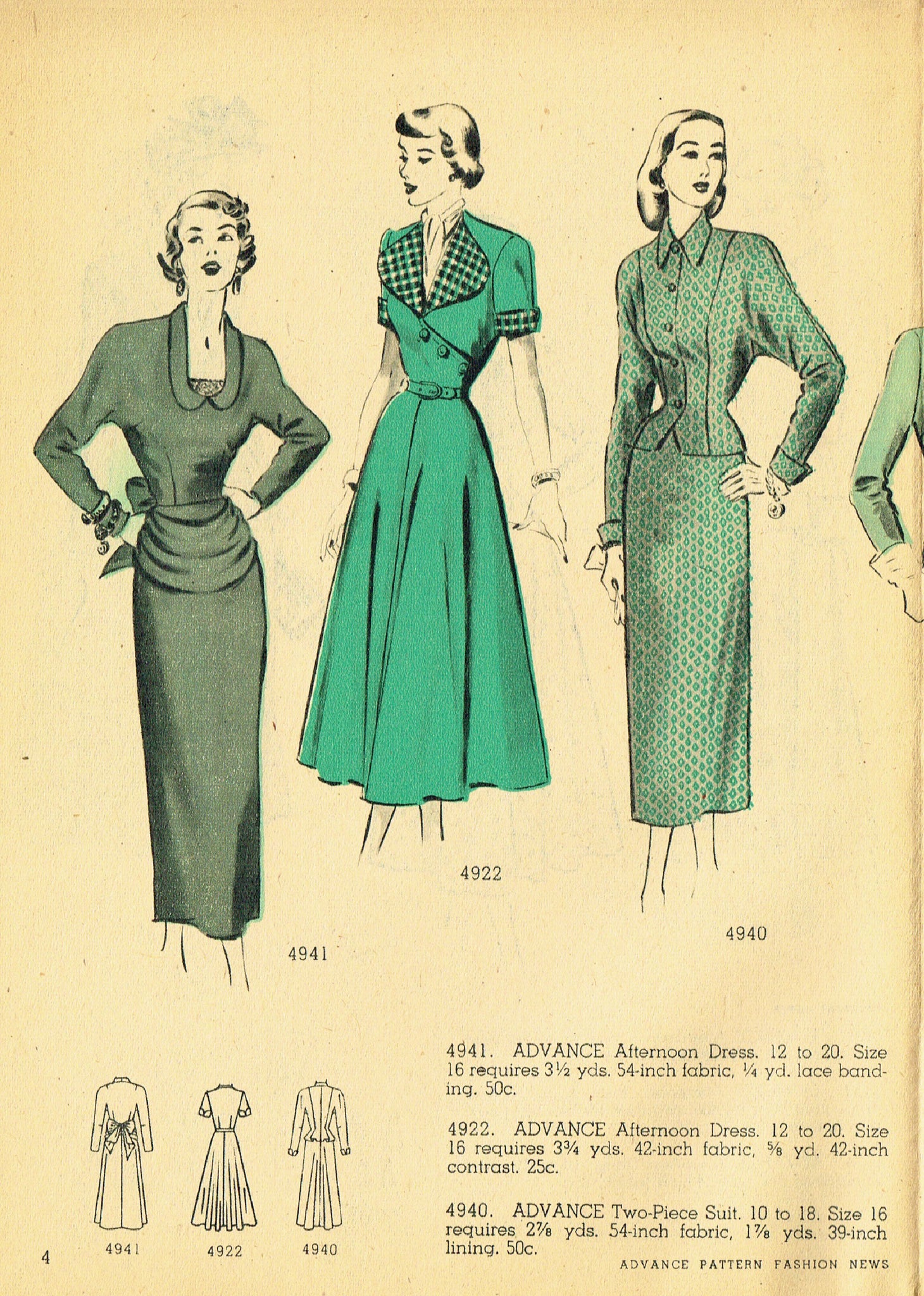This easy Digital Download gets you beautiful scans of all of the pages of "Advance Fashion News", an 8 page flyer dated August 1948. These pages are great for dating patterns and costume research.
