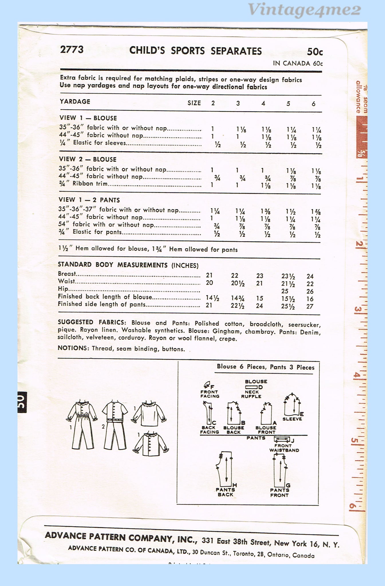 1960s Vintage Advance Sewing Pattern 2773 Uncut Toddler Girls Play Clothes Sz 6