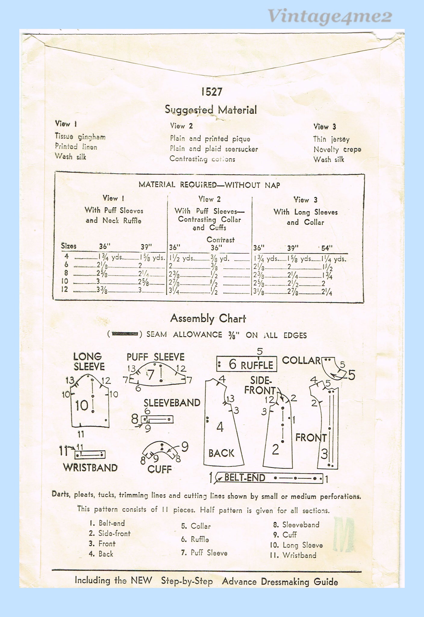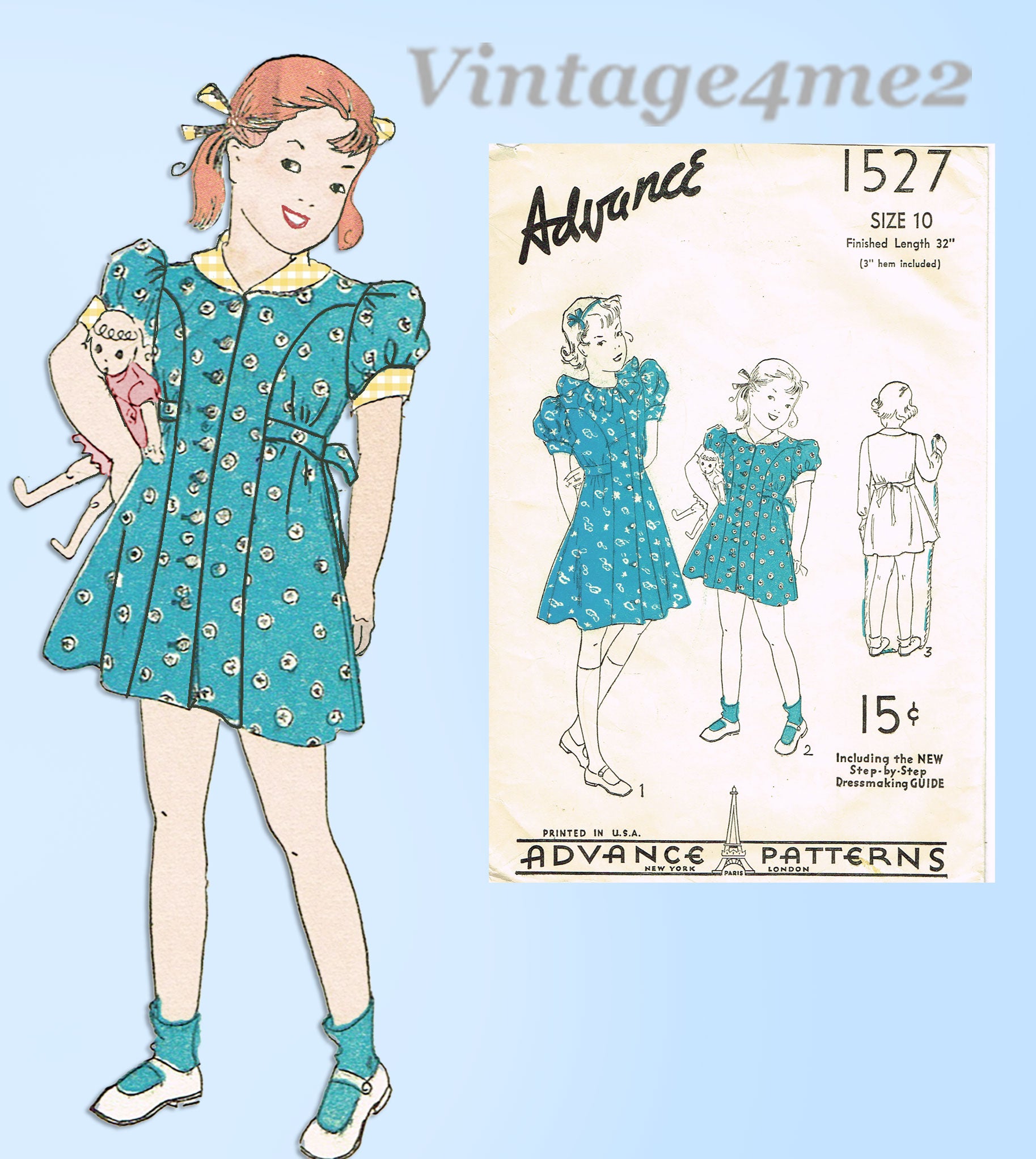 Advance 1527: 1930s Sweet Little Girls Princess Dress Sz 10 Vintage Sewing Pattern