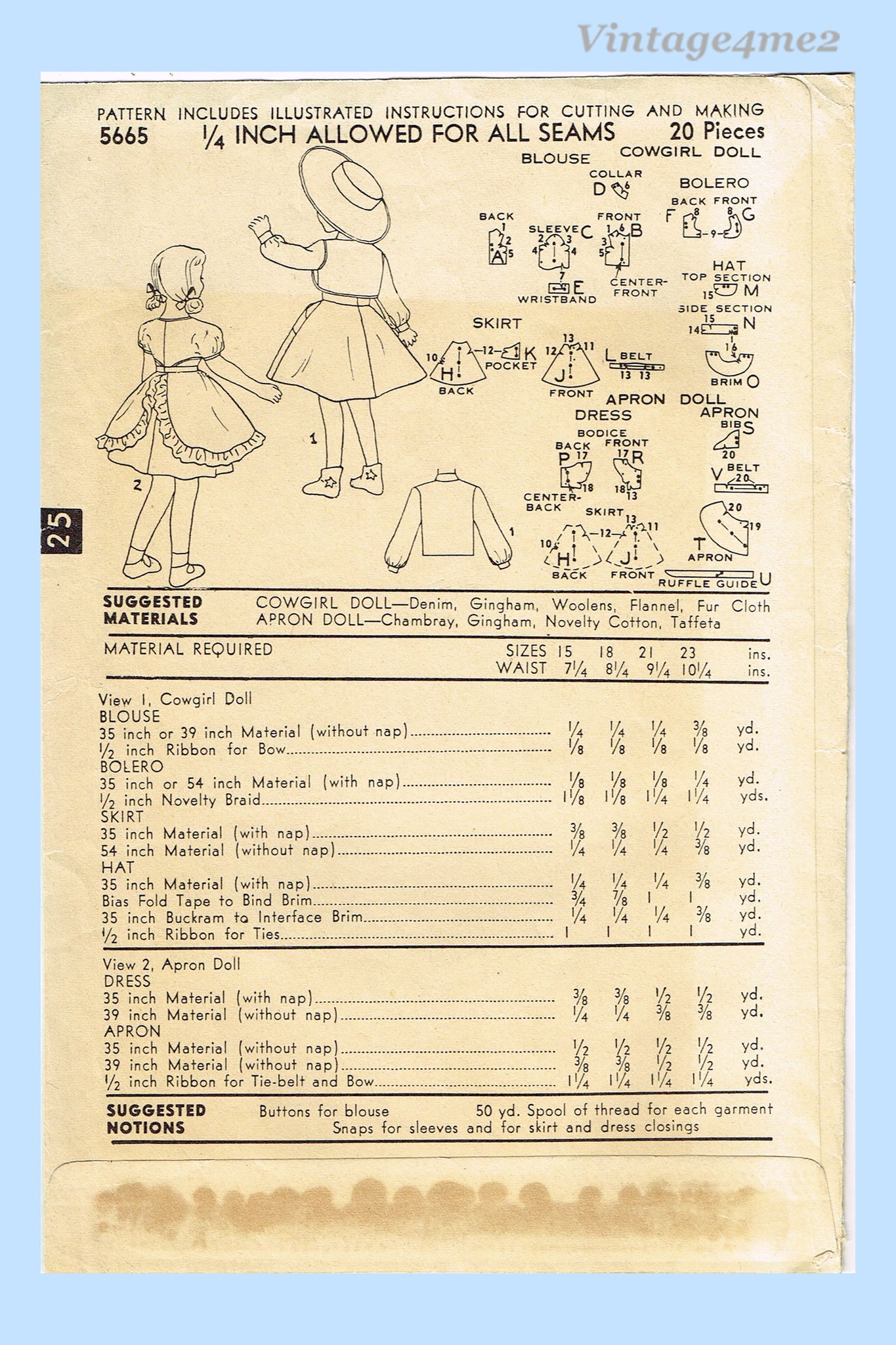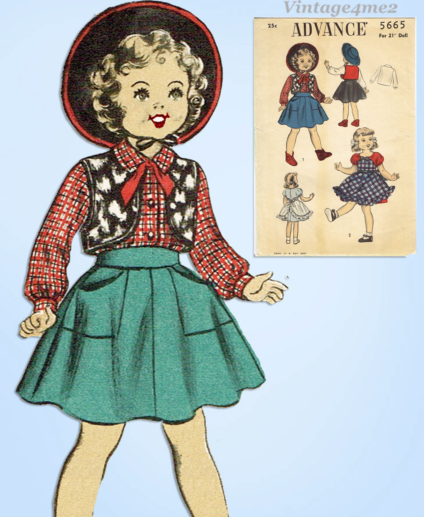 1950s Vintage Advance Sewing Pattern 5665 21 Inch Little Girl Doll Clothes Set