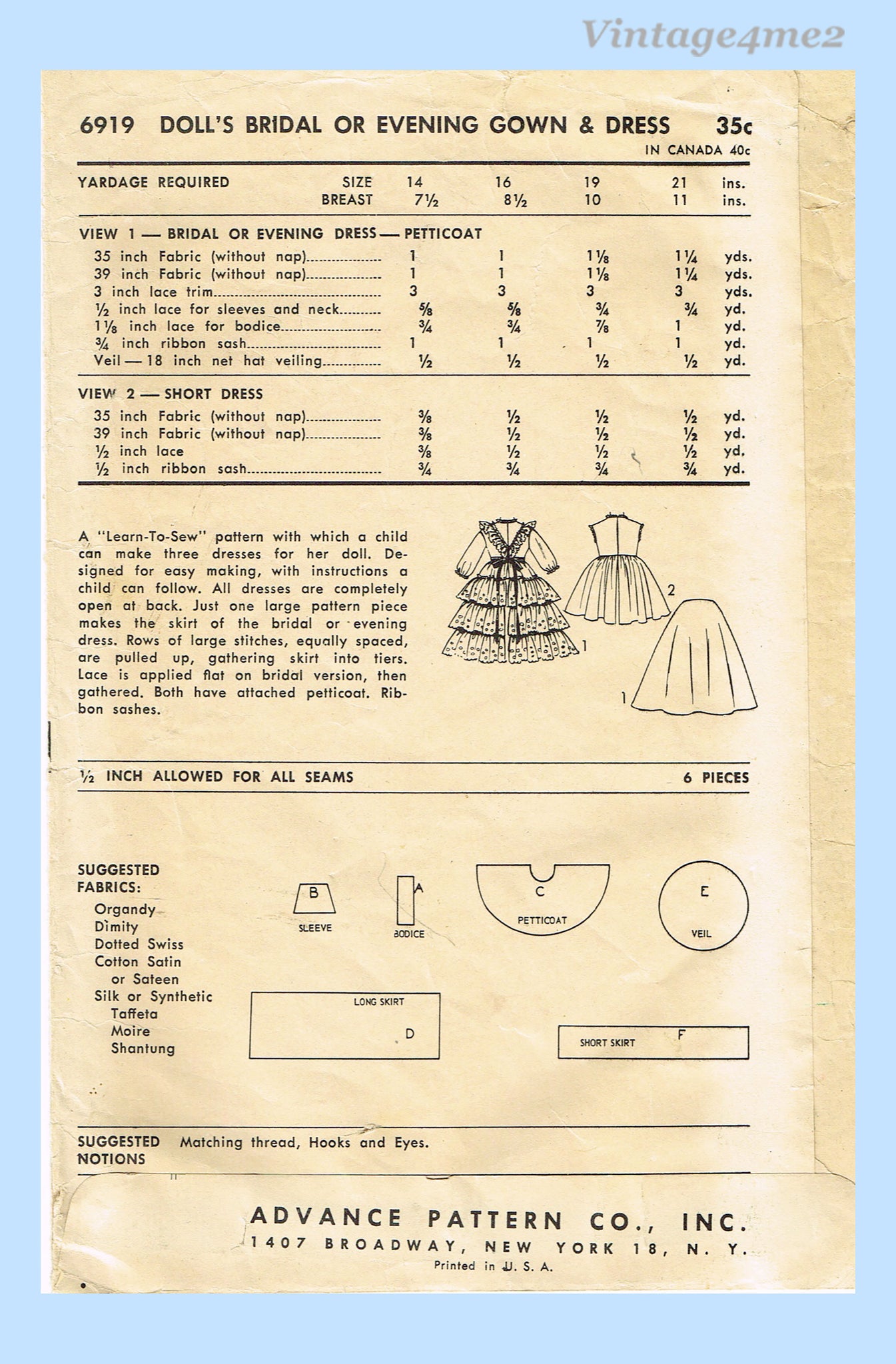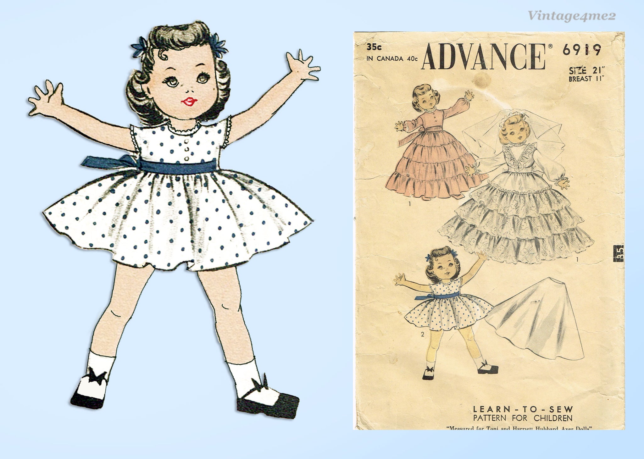 1950s Vintage Advance Sewing Pattern 6919 Learn to Sew 21 In Toni Doll Clothes