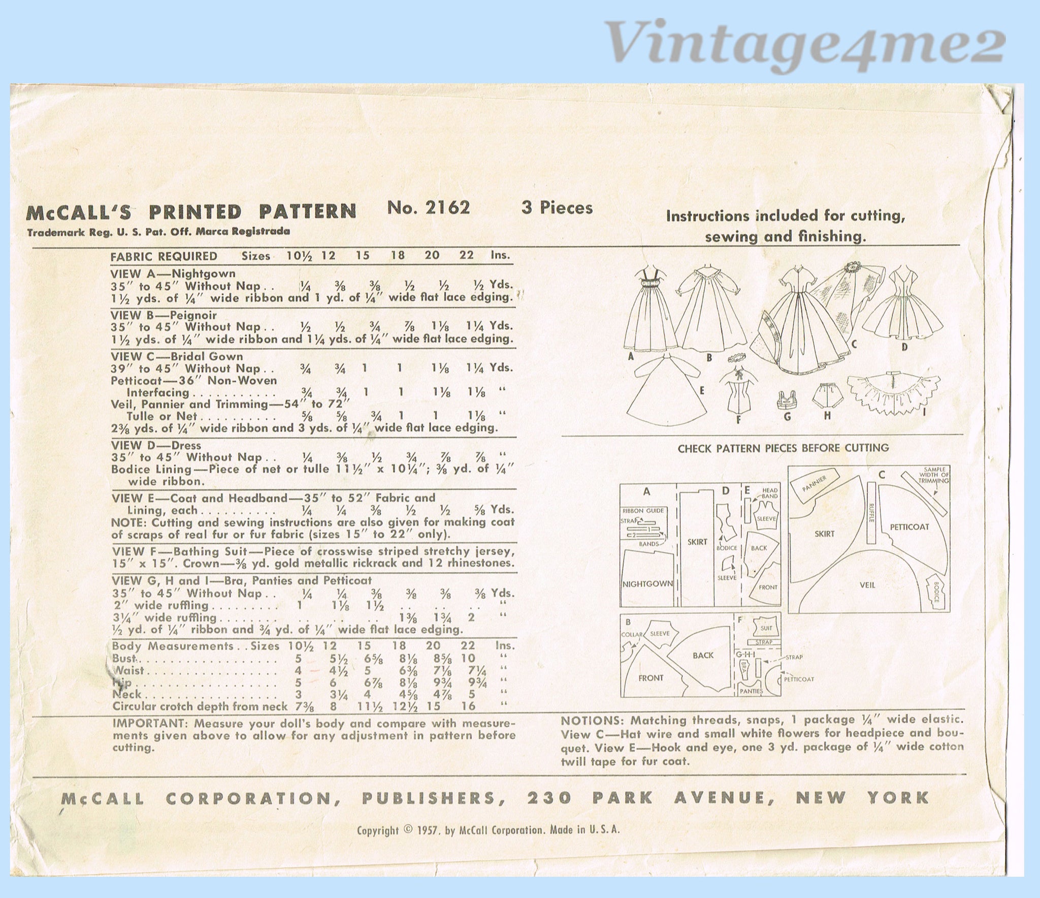1950s Vintage McCalls Sewing Pattern 2162 High Heel Revlon Doll Clothes 10.5in