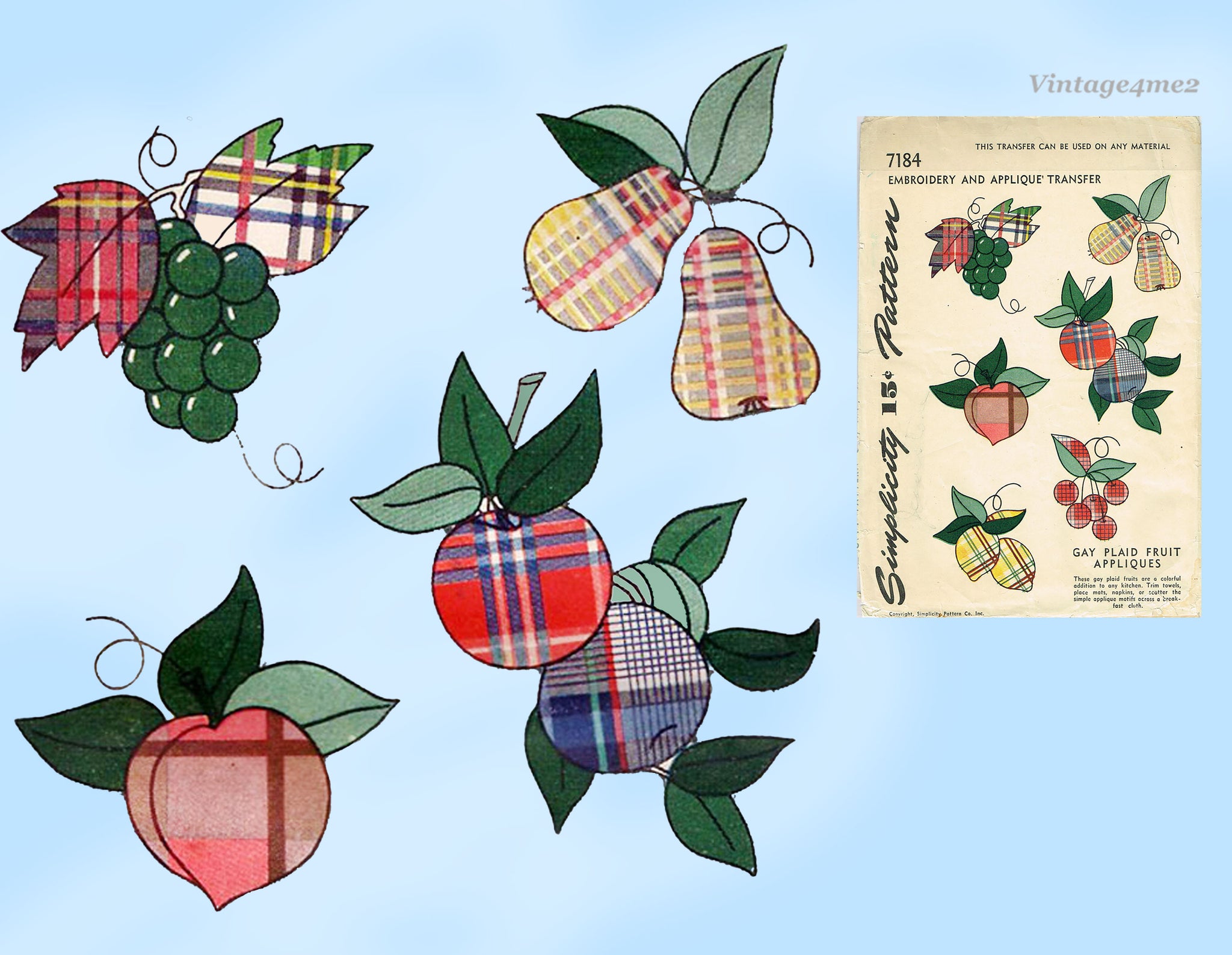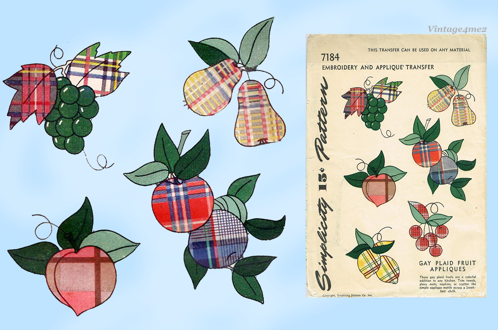 1940s Vintage Simplicity Embroidery Transfer 7184 Uncut Applique Fruit Tea Towel