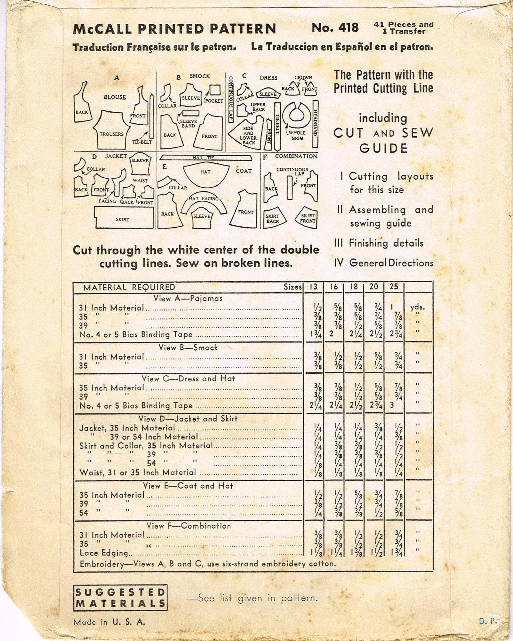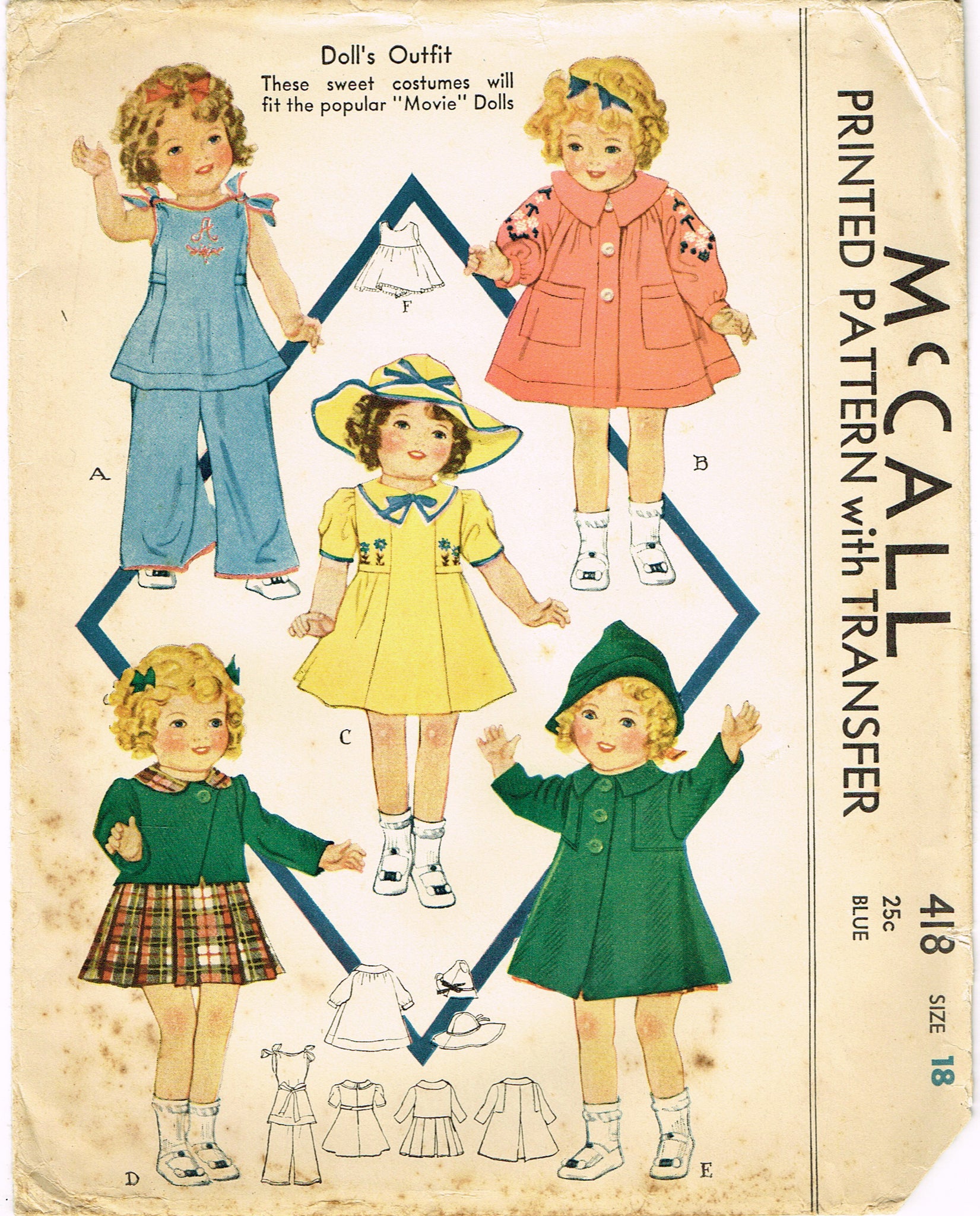 1930s Rare Vintage McCall Sewing Pattern 418 Rare 20in Movie Star Doll Clothes