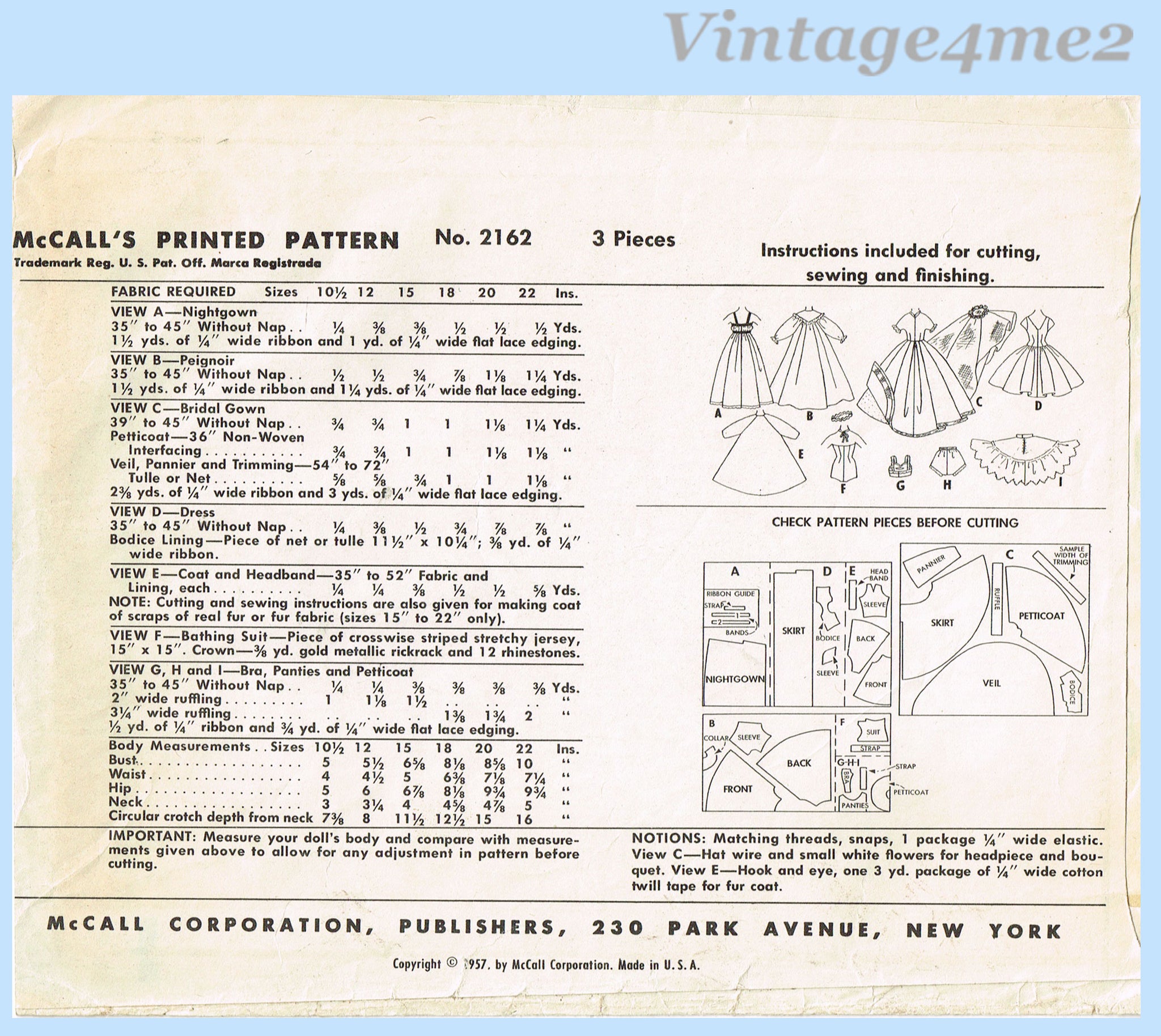 1950s Vintage McCalls Sewing Pattern 2162 High Heel Doll Clothes 12 In Revlon