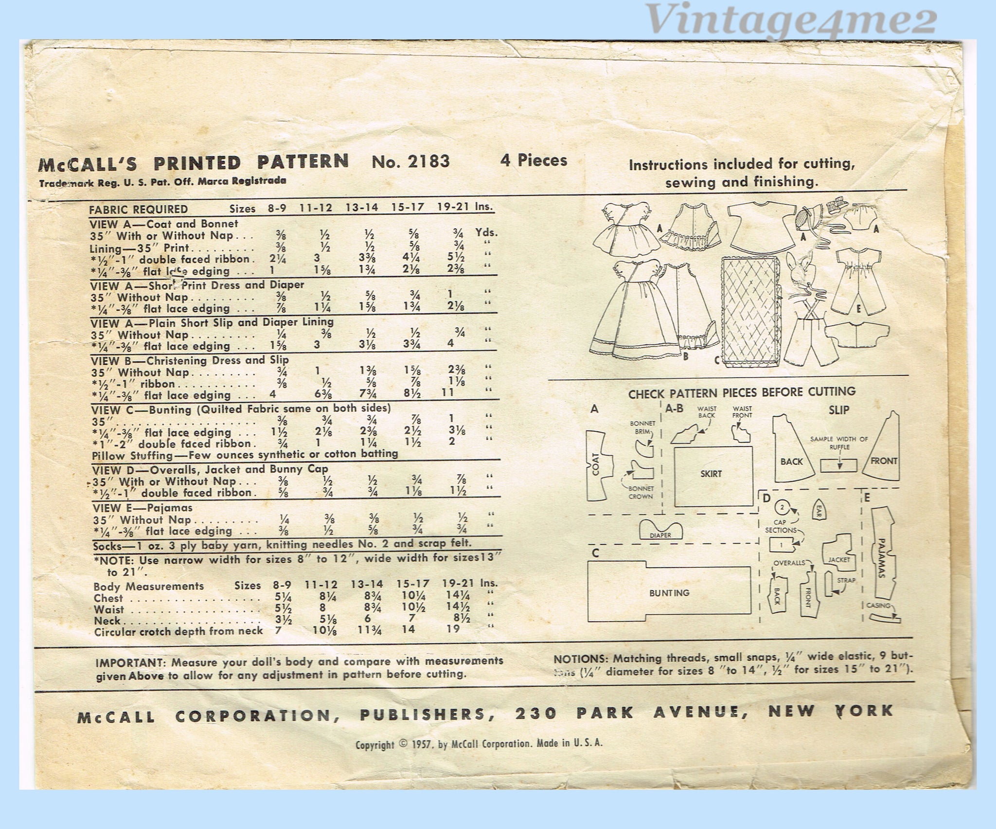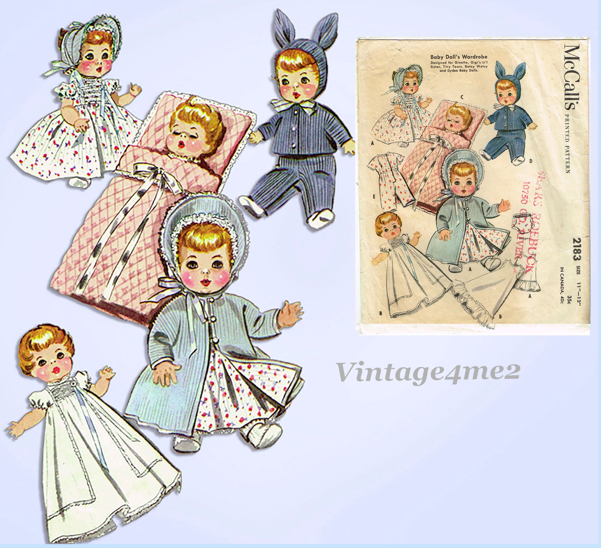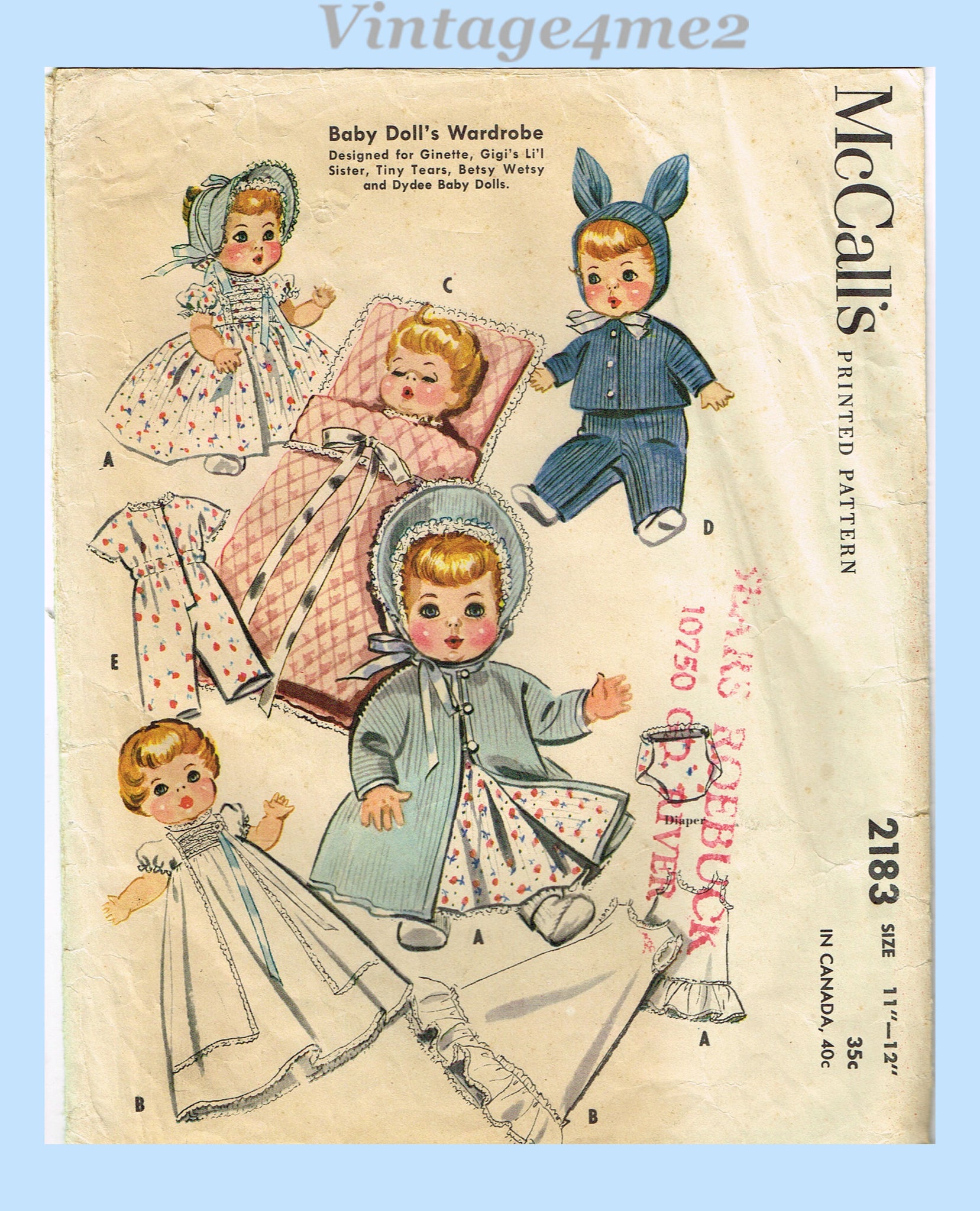 1950s Vintage McCalls Sewing Pattern 2183 Betsy Wetsy 11-12in Baby Doll Clothes