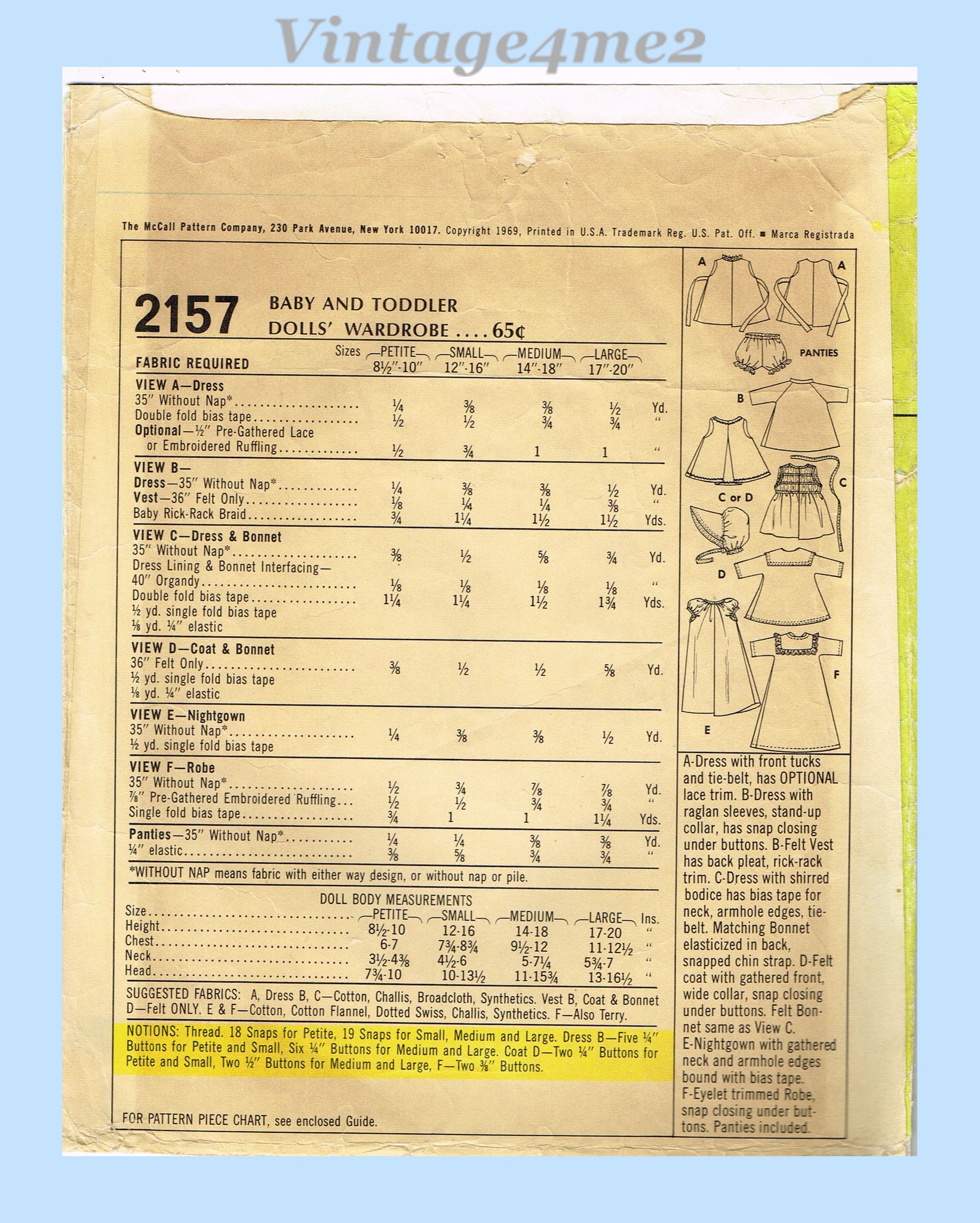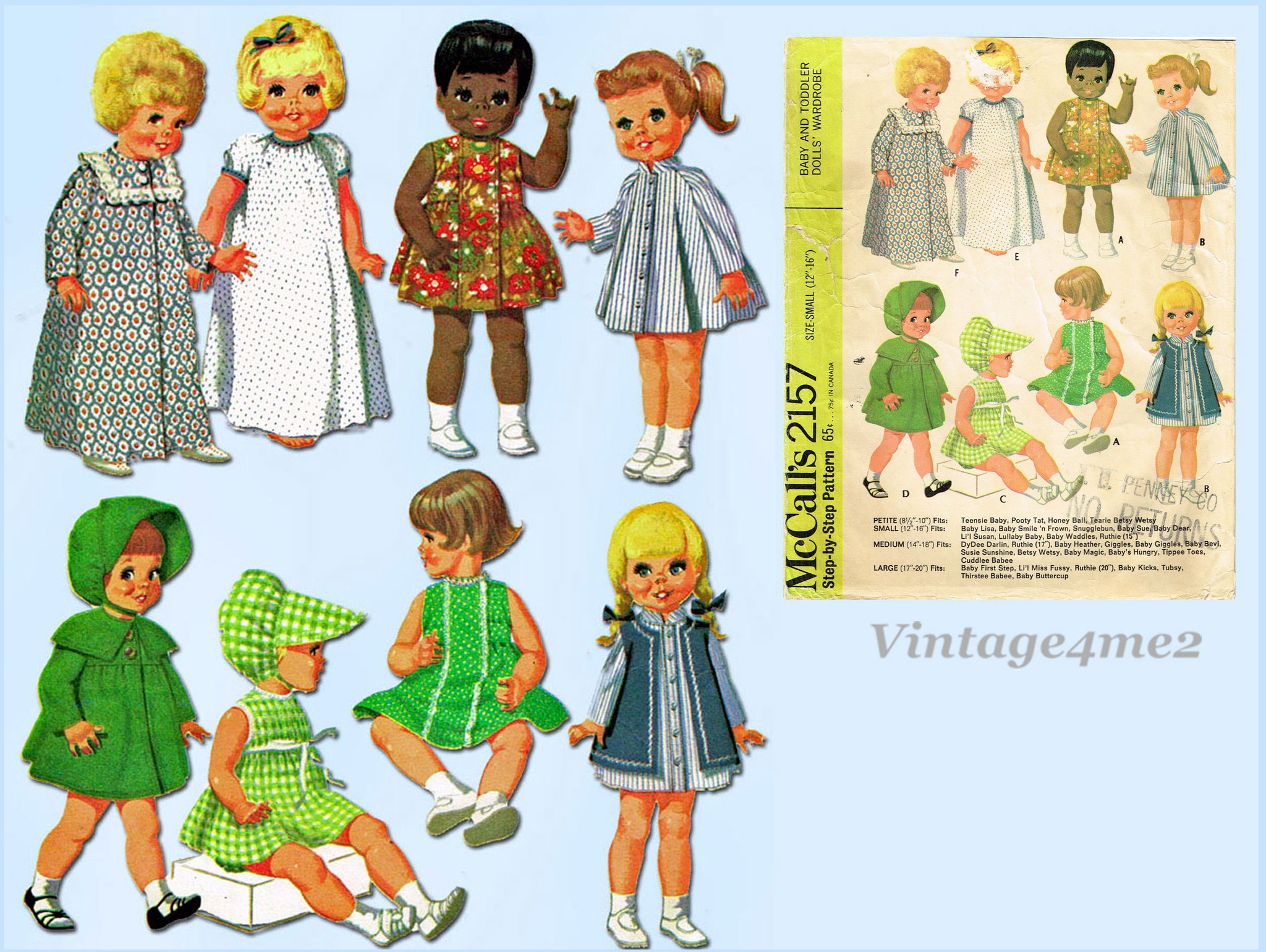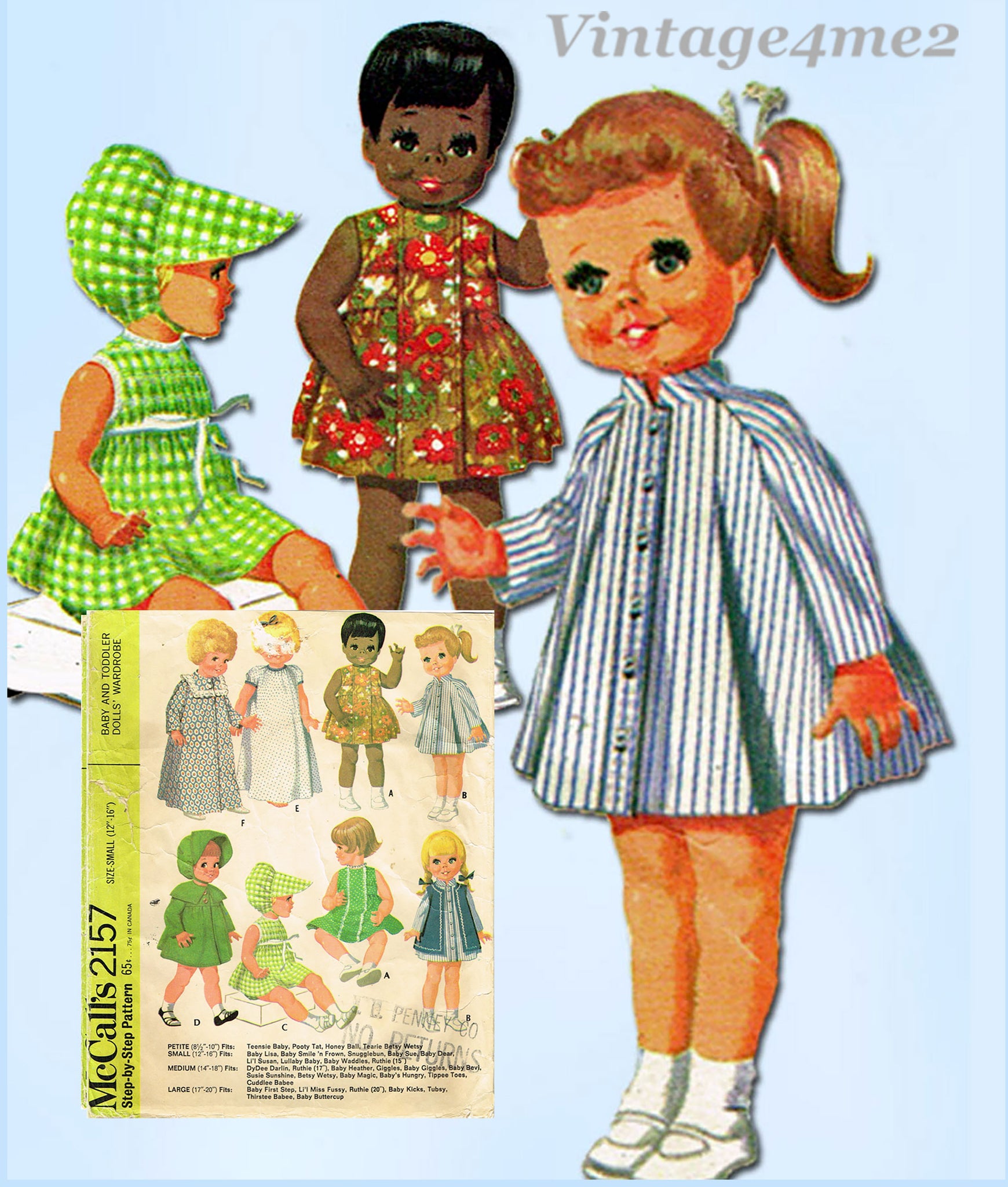 1960s Vintage McCalls Sewing Pattern 2157 Cute Uncut 12-16in Baby Doll Clothes