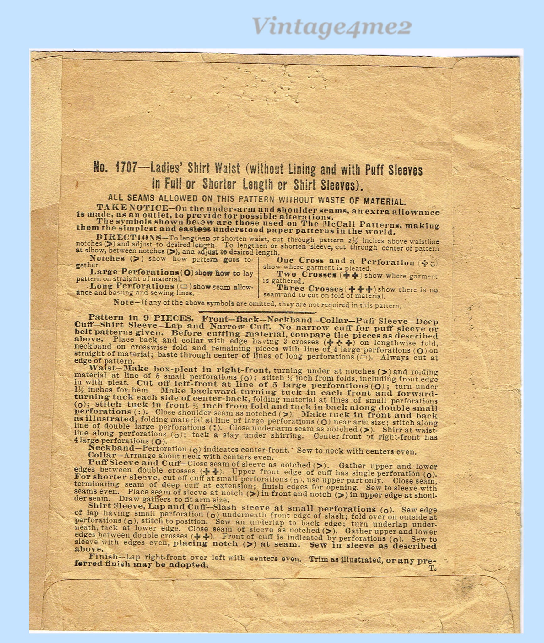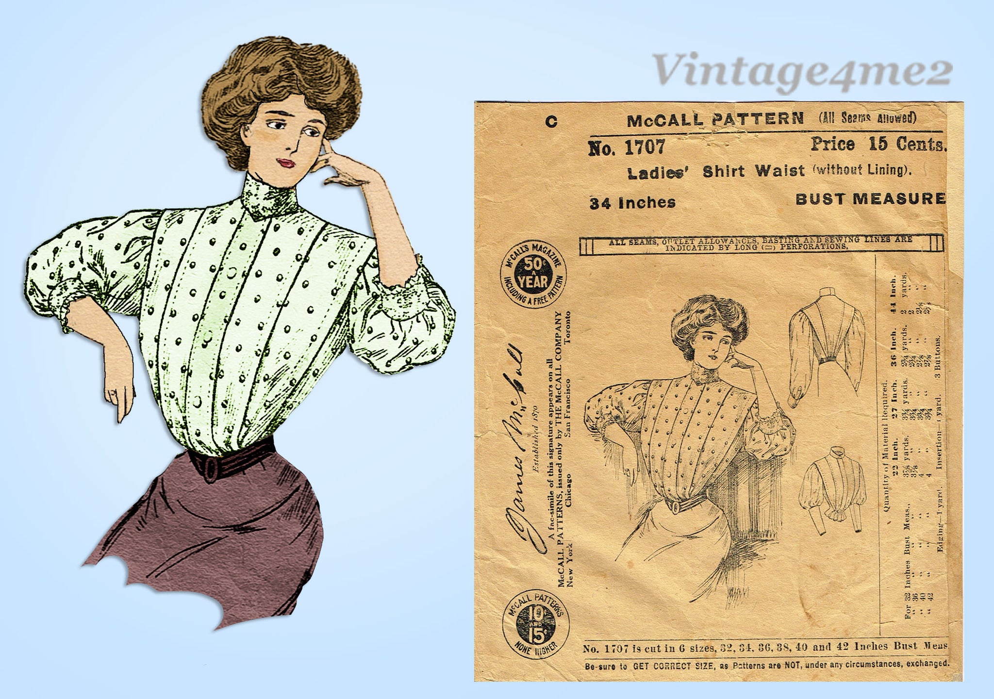 1900s Vintage McCall Sewing Pattern 1717 Ladies Gibson Girls Shirt Waist Sz 34 B