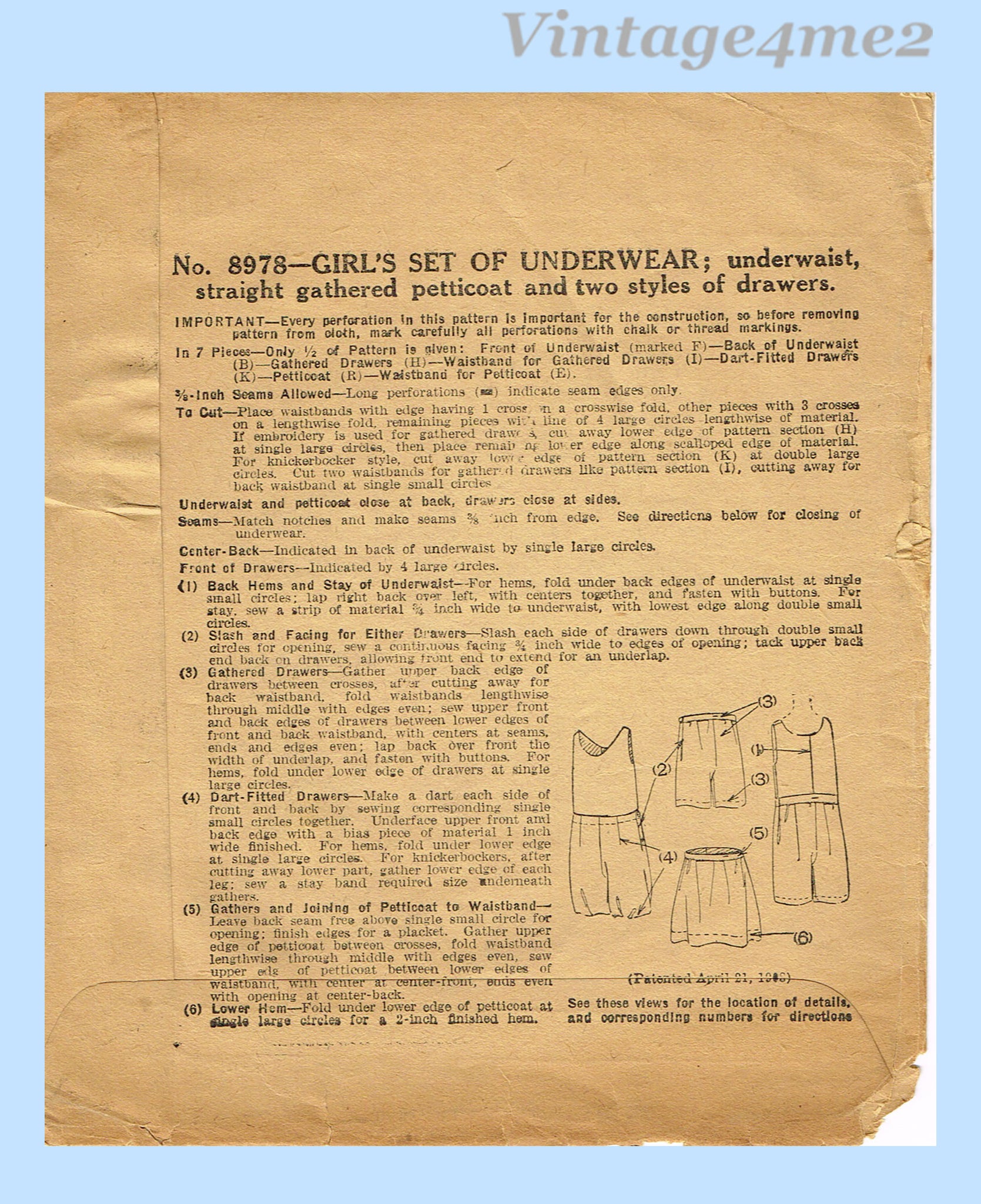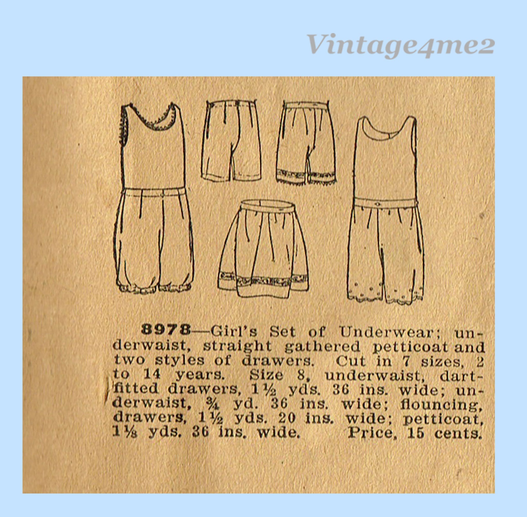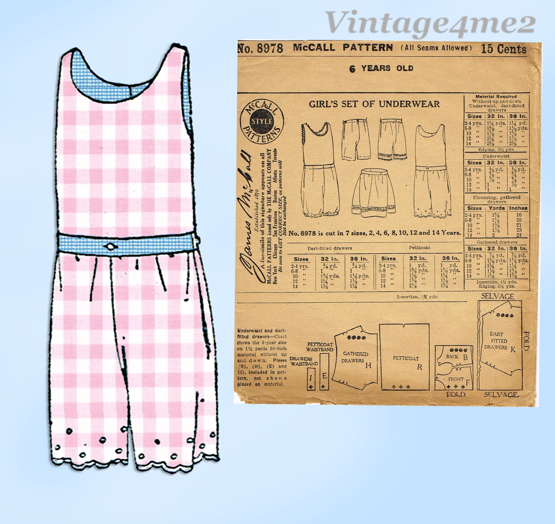 1910s Vintage McCall Pattern 8978 Uncut Toddler Girls Combination Undies Sz6