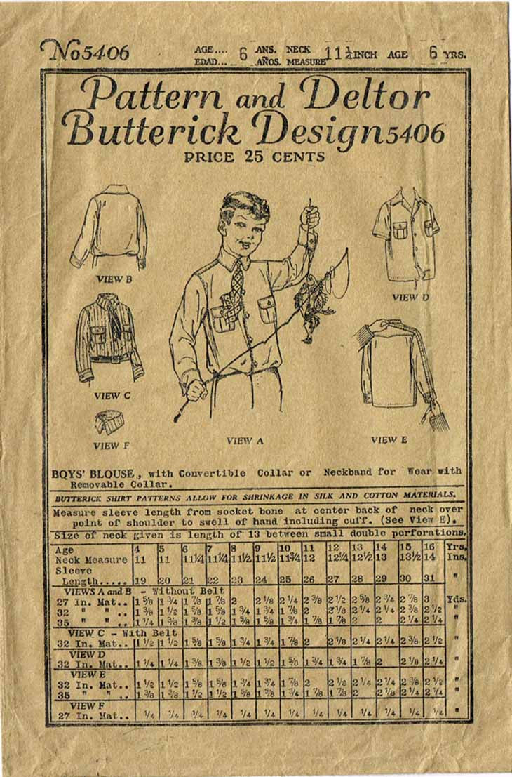 1920s Vintage Butterick Sewing Pattern 5406 Uncut Little Boy's Shirt Blouse Sz 6