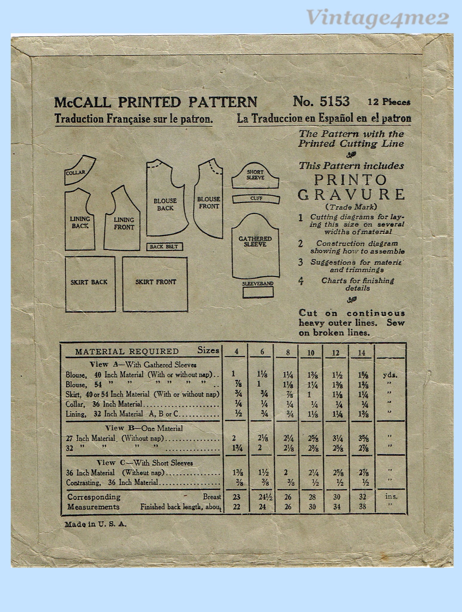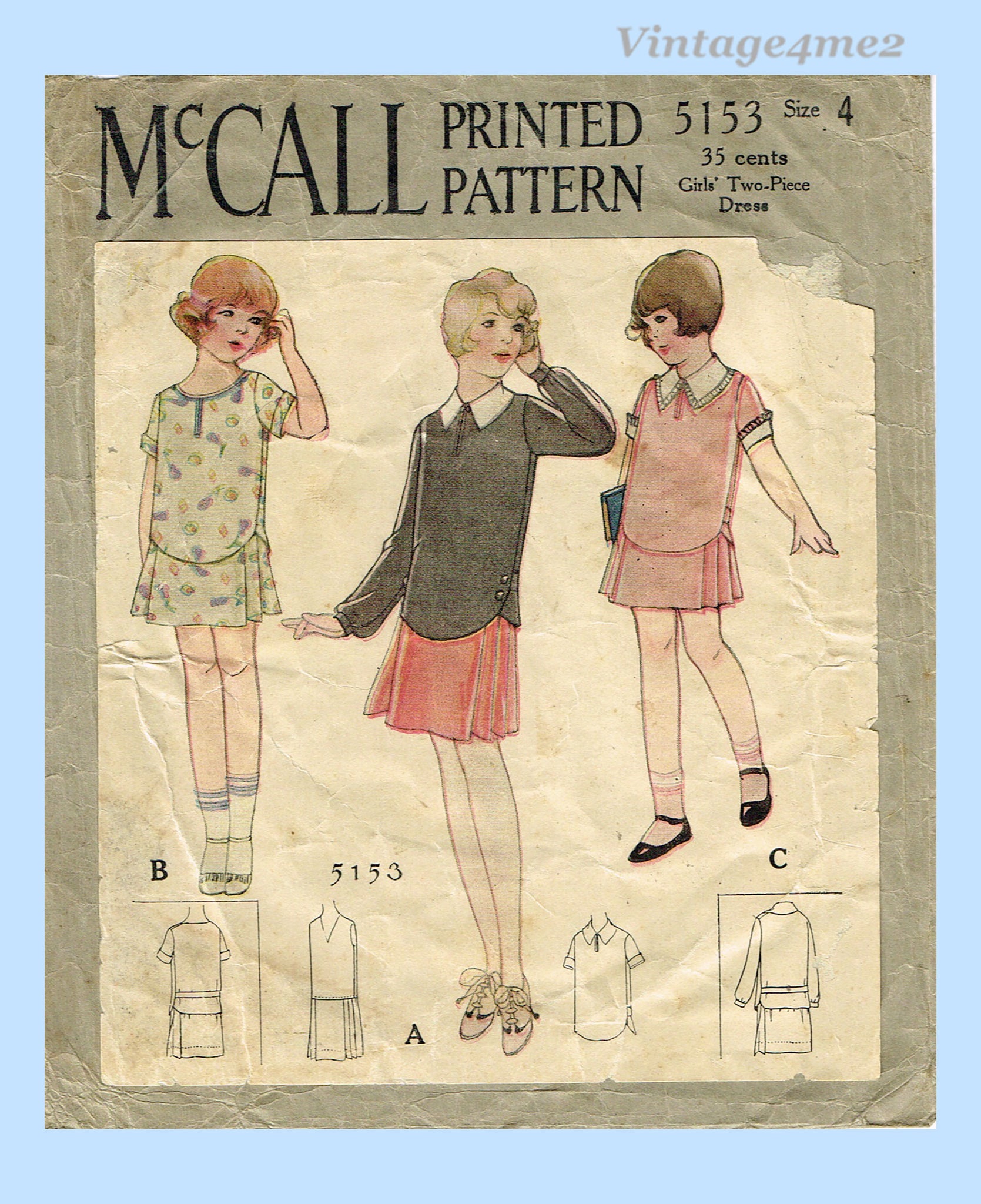 1920s Vintage McCall Sewing Pattern 5153 Sweet Toddler Girls Flapper Dress Sz 4