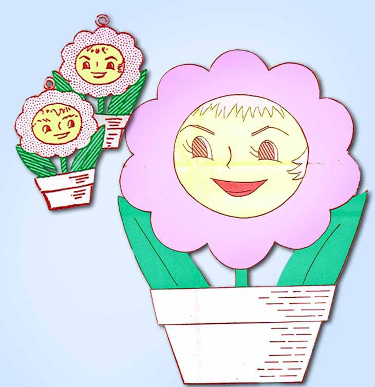 1940s Workbasket Embroidery Transfer #70 Uncut Flower Face Potholder Motifs ORIG