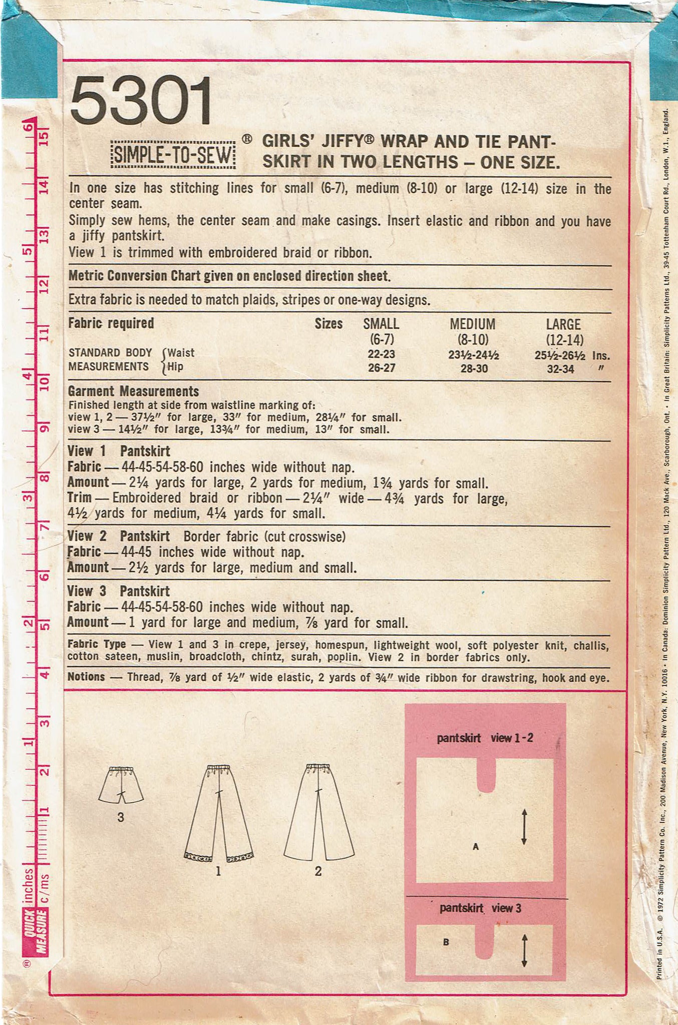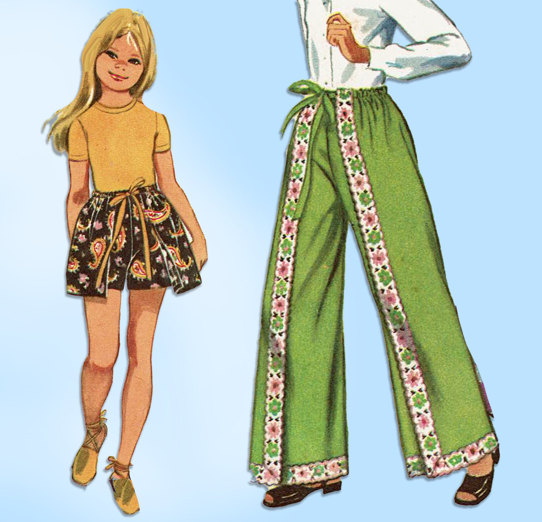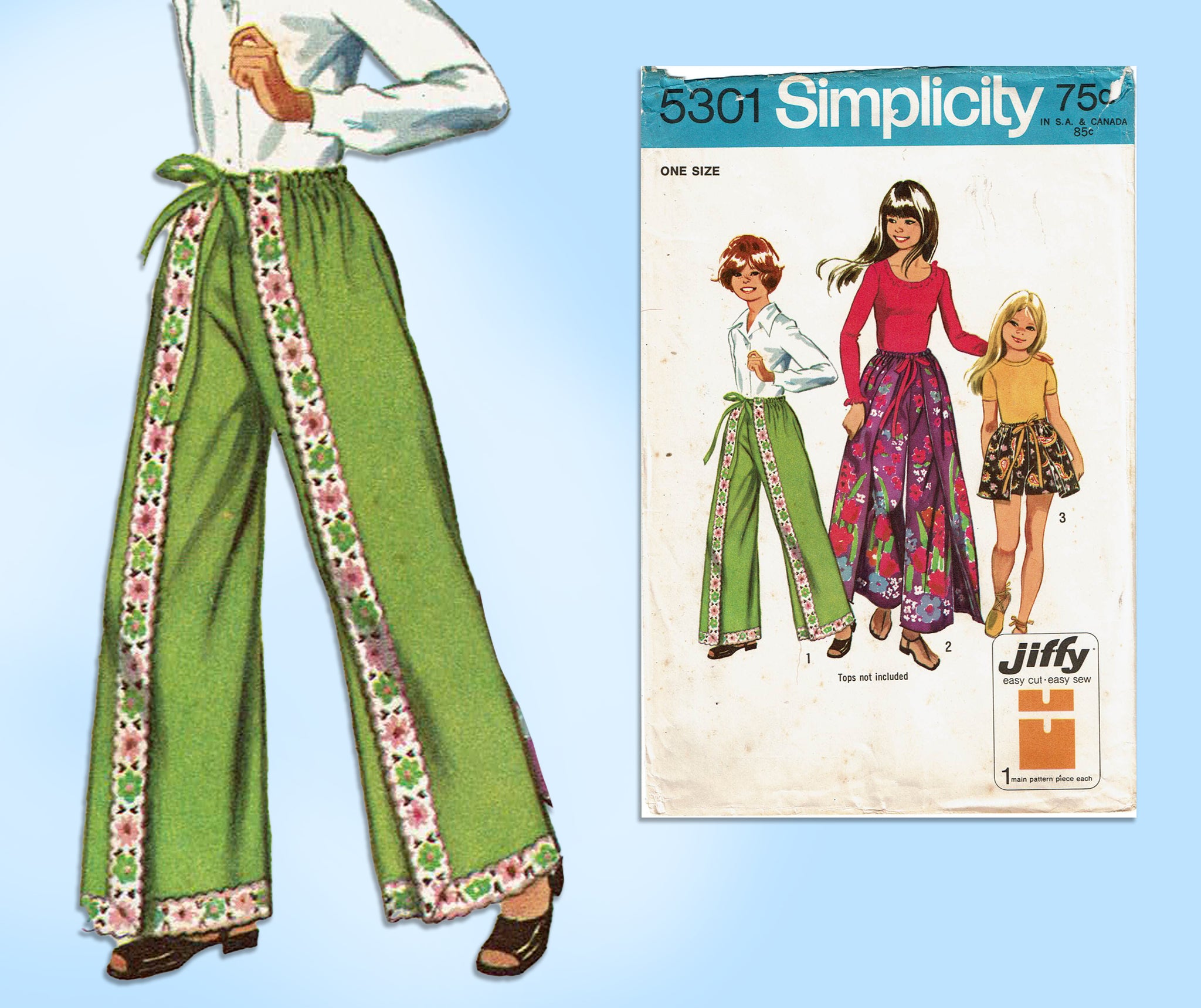 1970s Vintage Simplicity Sewing Pattern 5301 Uncut Little Girls Wrap Pants Fits All