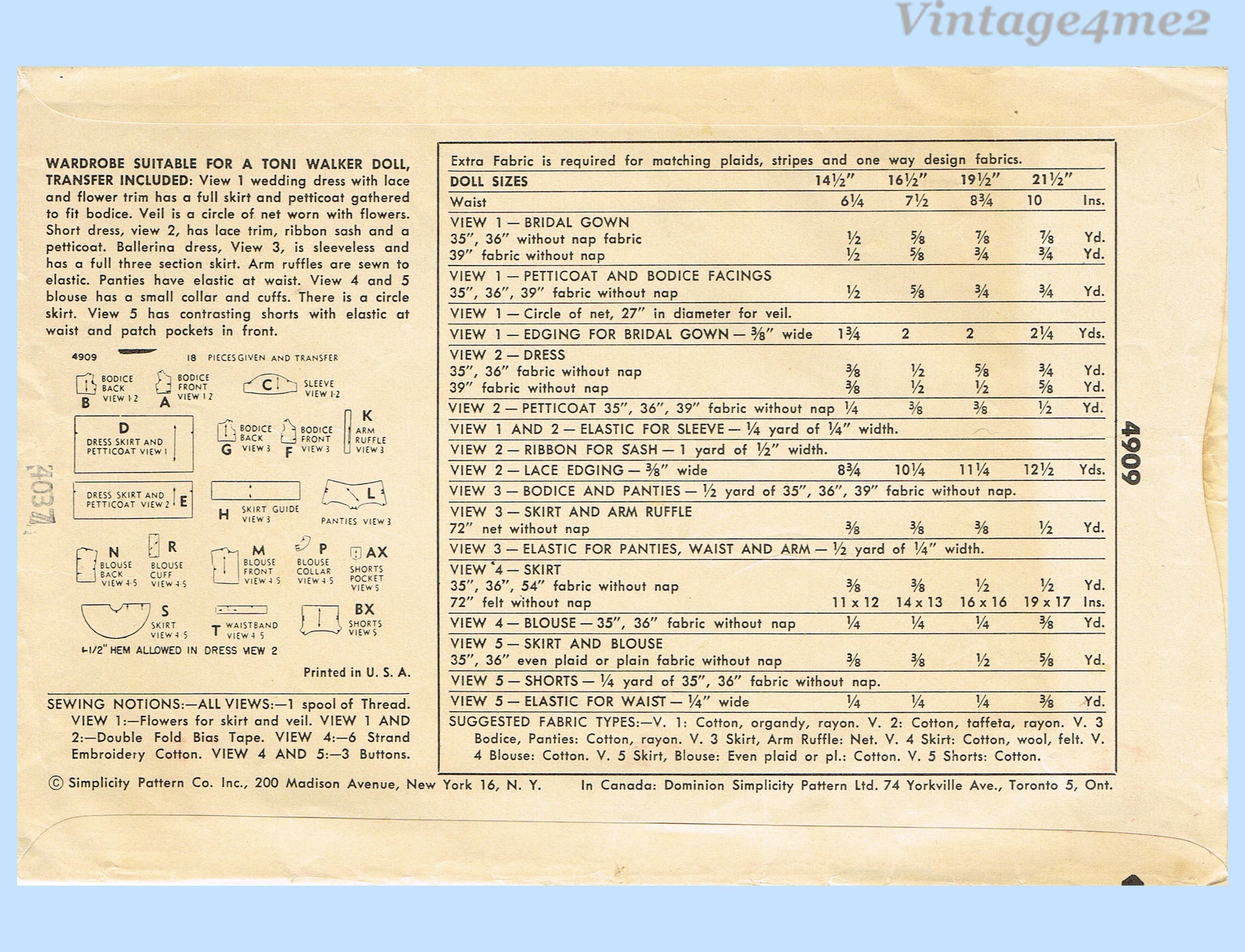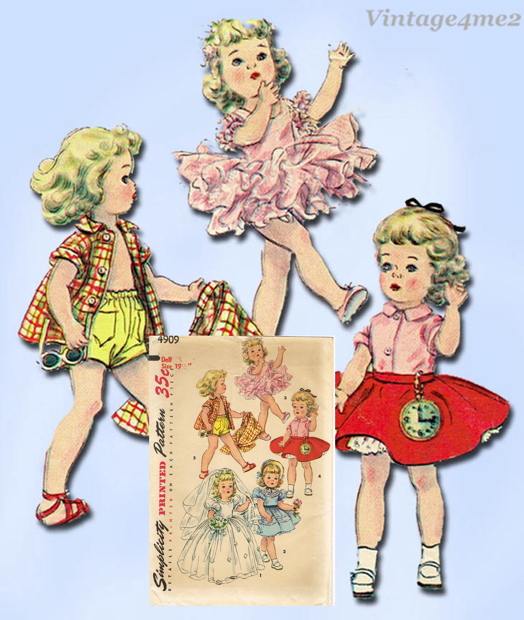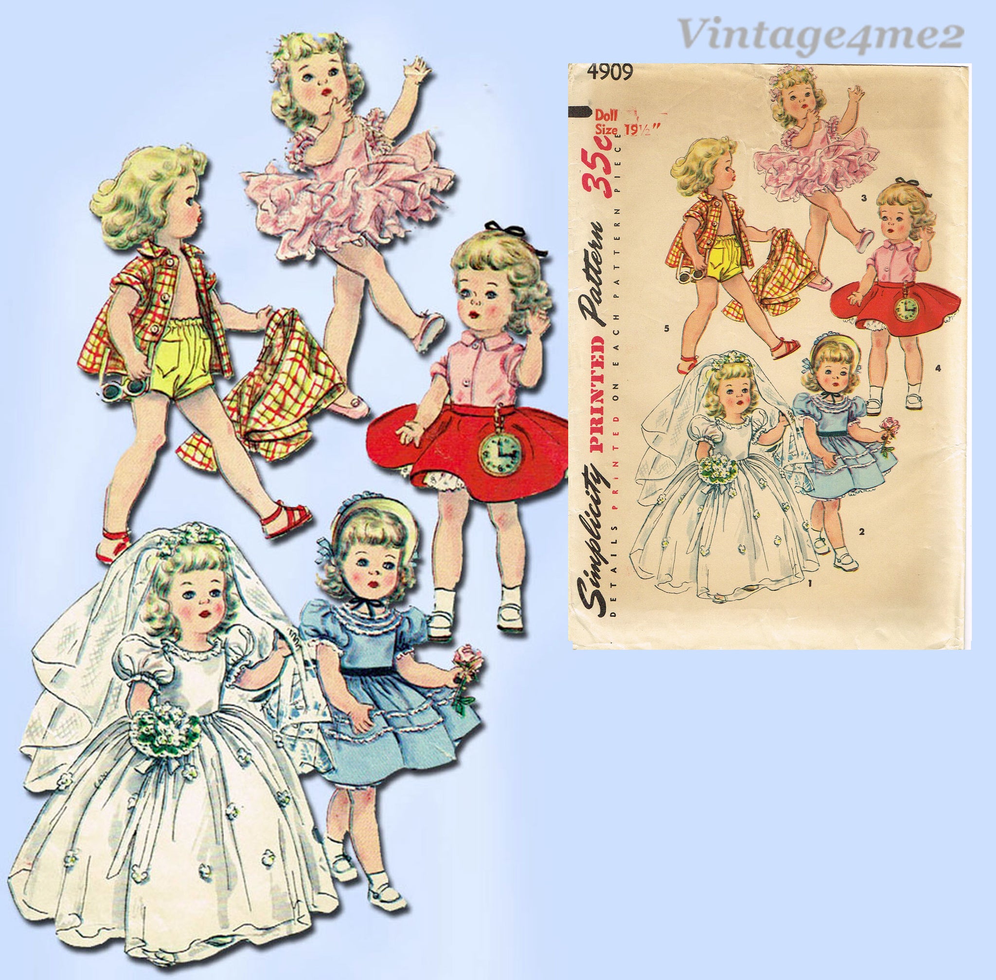 1950s Vintage Simplicity Sewing Pattern 4909 19.5 Inch Little Girl Doll Clothes