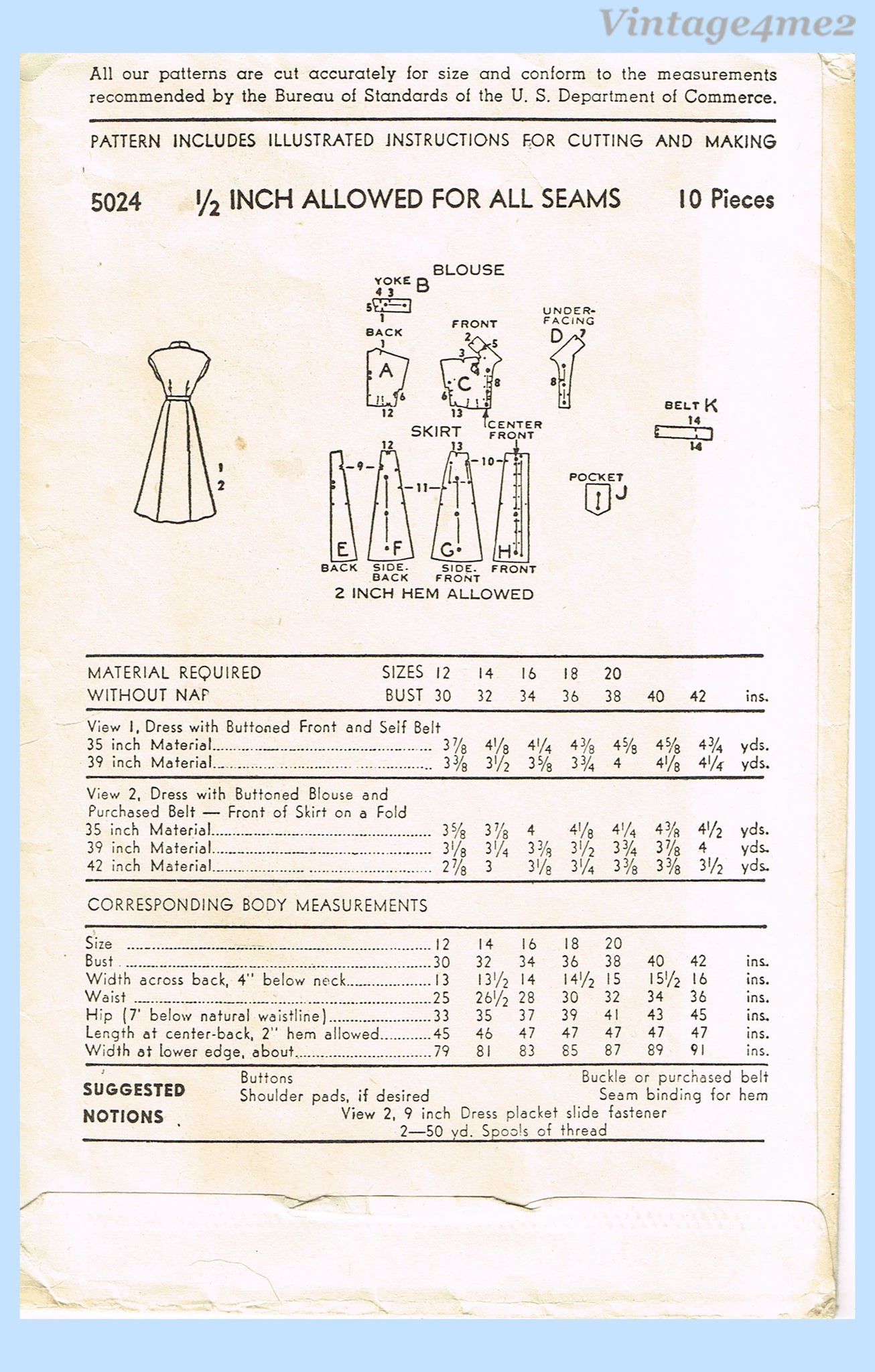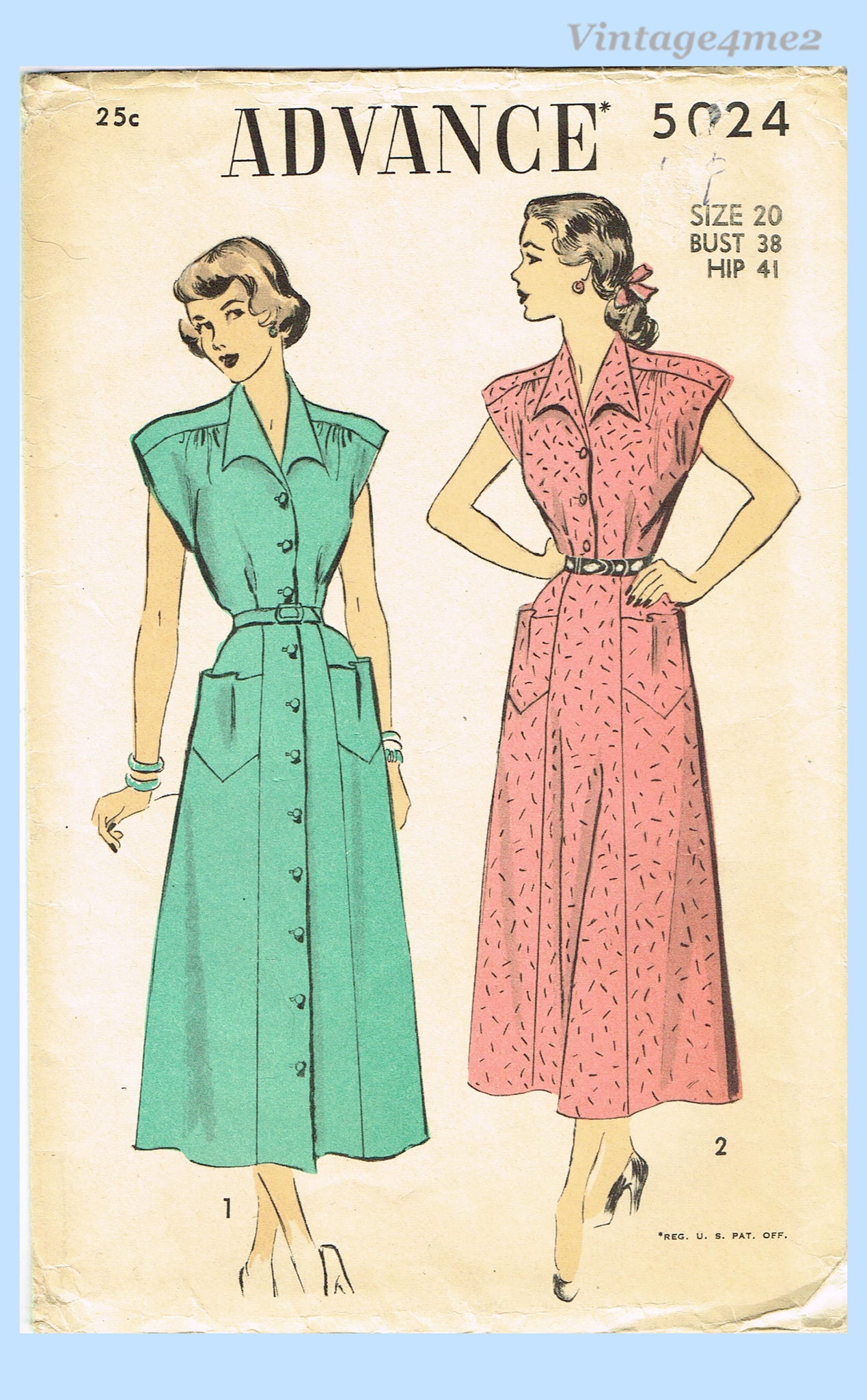 1940s Vintage Advance Sewing Pattern 5024 Stylish Misses Street Dress Sz 38 Bust