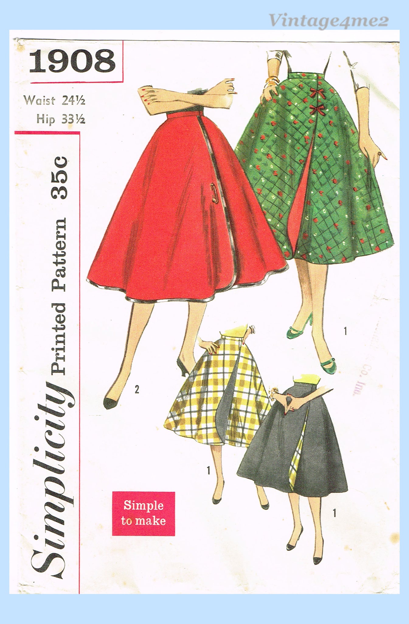 1950s Vintage Simplicity Sewing Pattern 1908 Uncut Reversible Wrap Skirt 24.5W