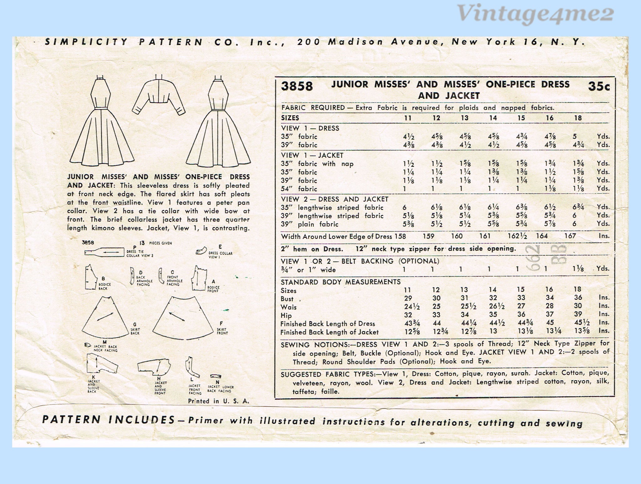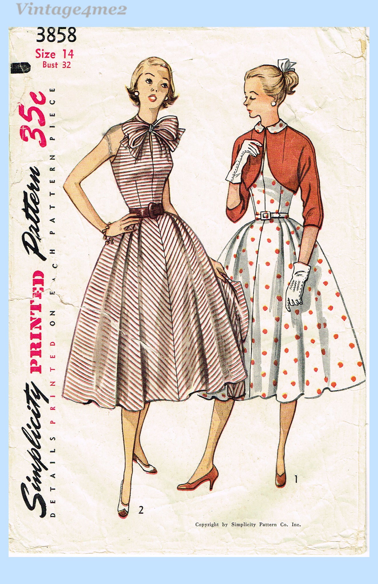 1950s Vintage Simplicity Sewing Pattern 3858 Stunning Misses Sun Dress Sz 32 B