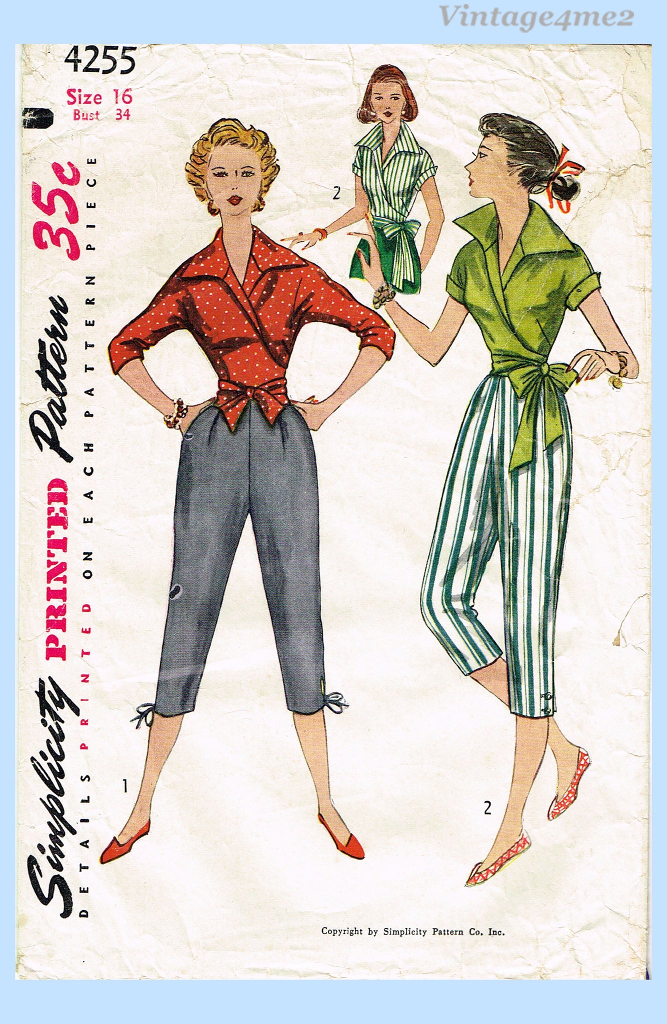 1950s Vintage Simplicity Sewing Pattern 4255 Cute Misses Wrap Blouse & Pants 34 B
