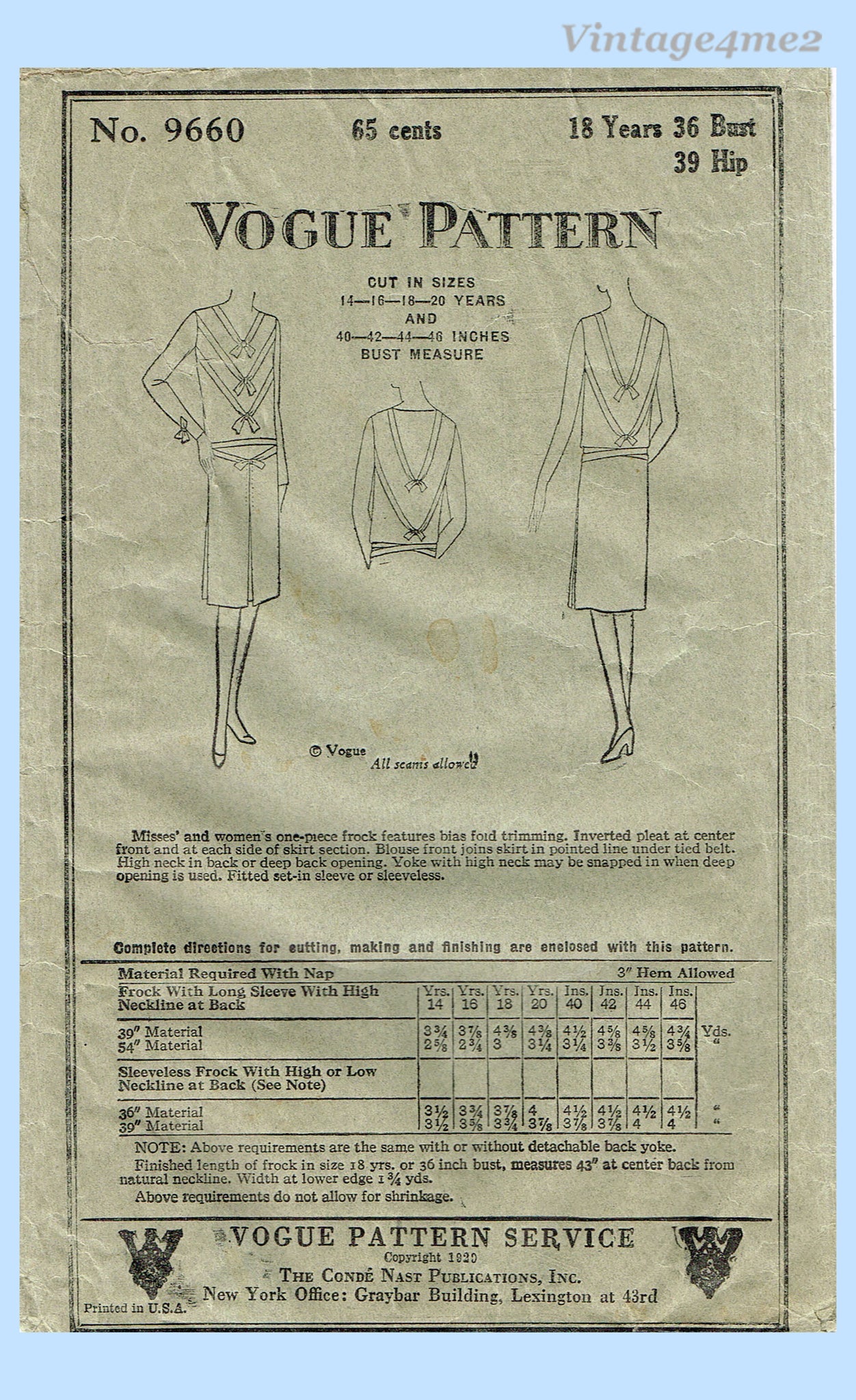 Vogue 9660: 1920s Rare Misses Flapper Dress Sz 36 B Vintage Sewing Pattern