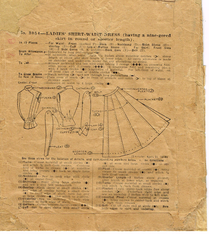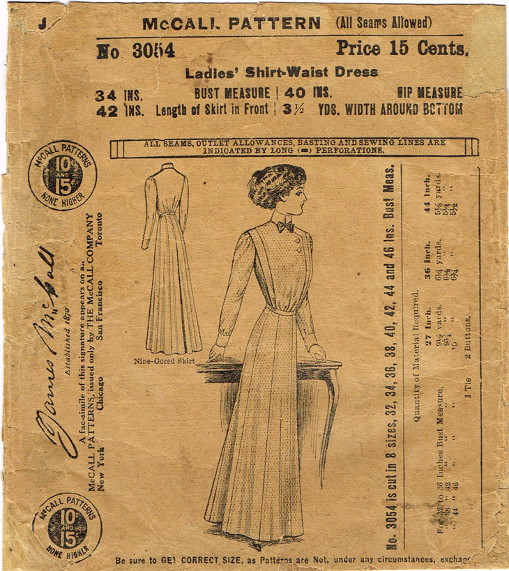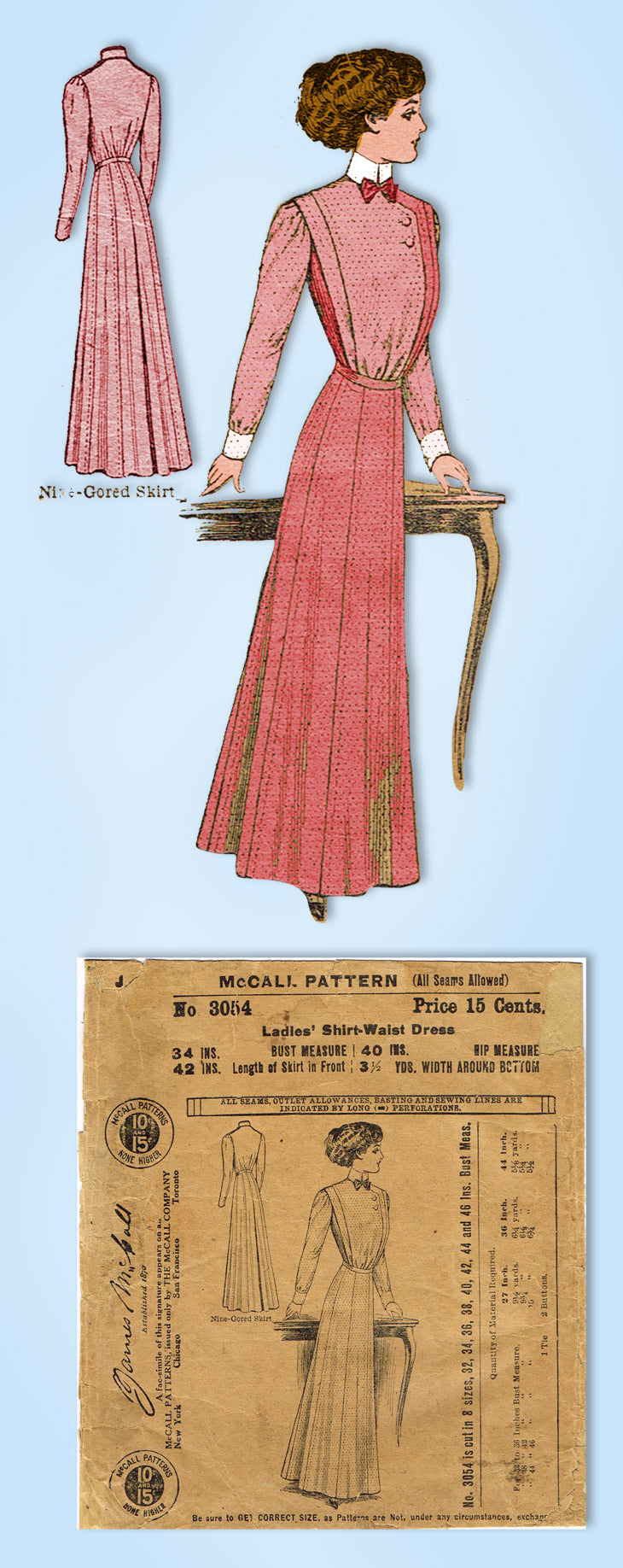 1900s Original Antique McCall Pattern 3054 Misses Edwardian Shirt-Waist Dress 34
