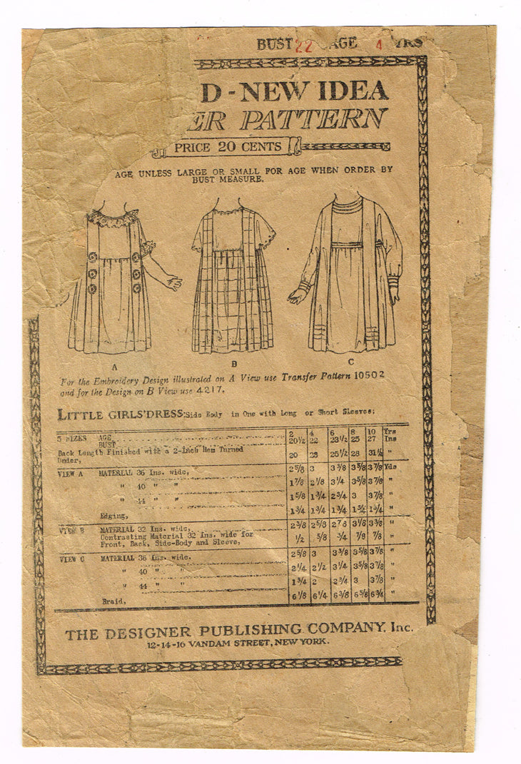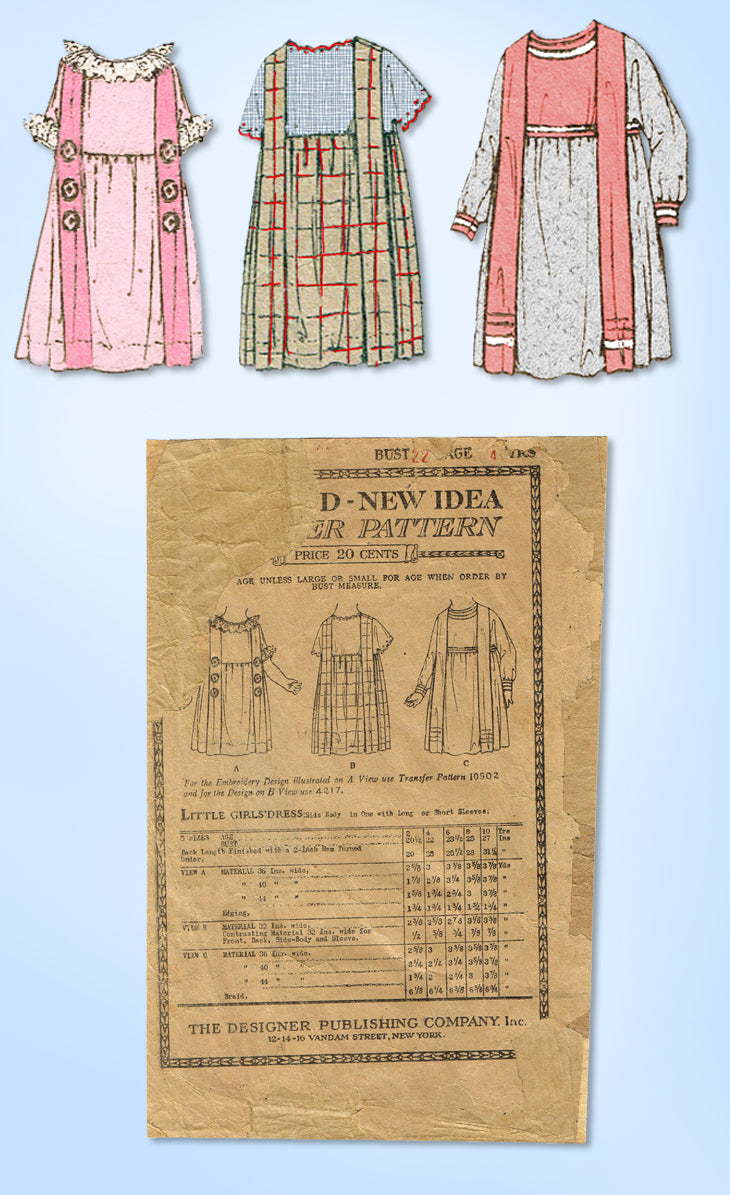 1910s Original Standard New Idea Pattern 2645 Toddler Girls Edwardian Dress Sz 4