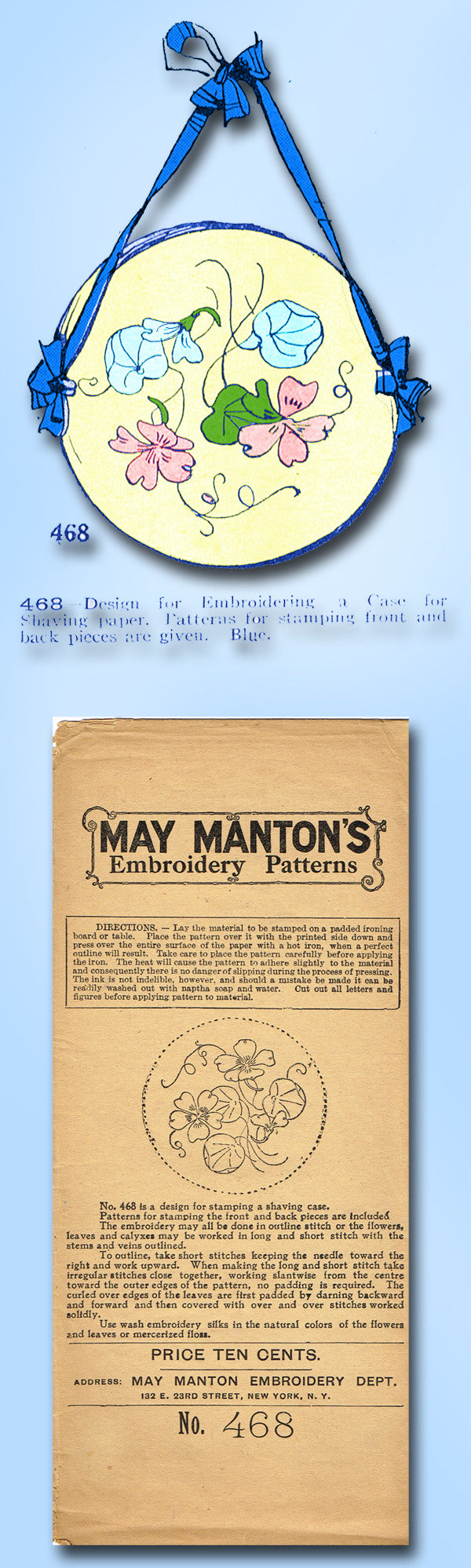 1910s Rare Uncut May Manton Embroidery Transfer 468 Shaving Case Pattern ORIG