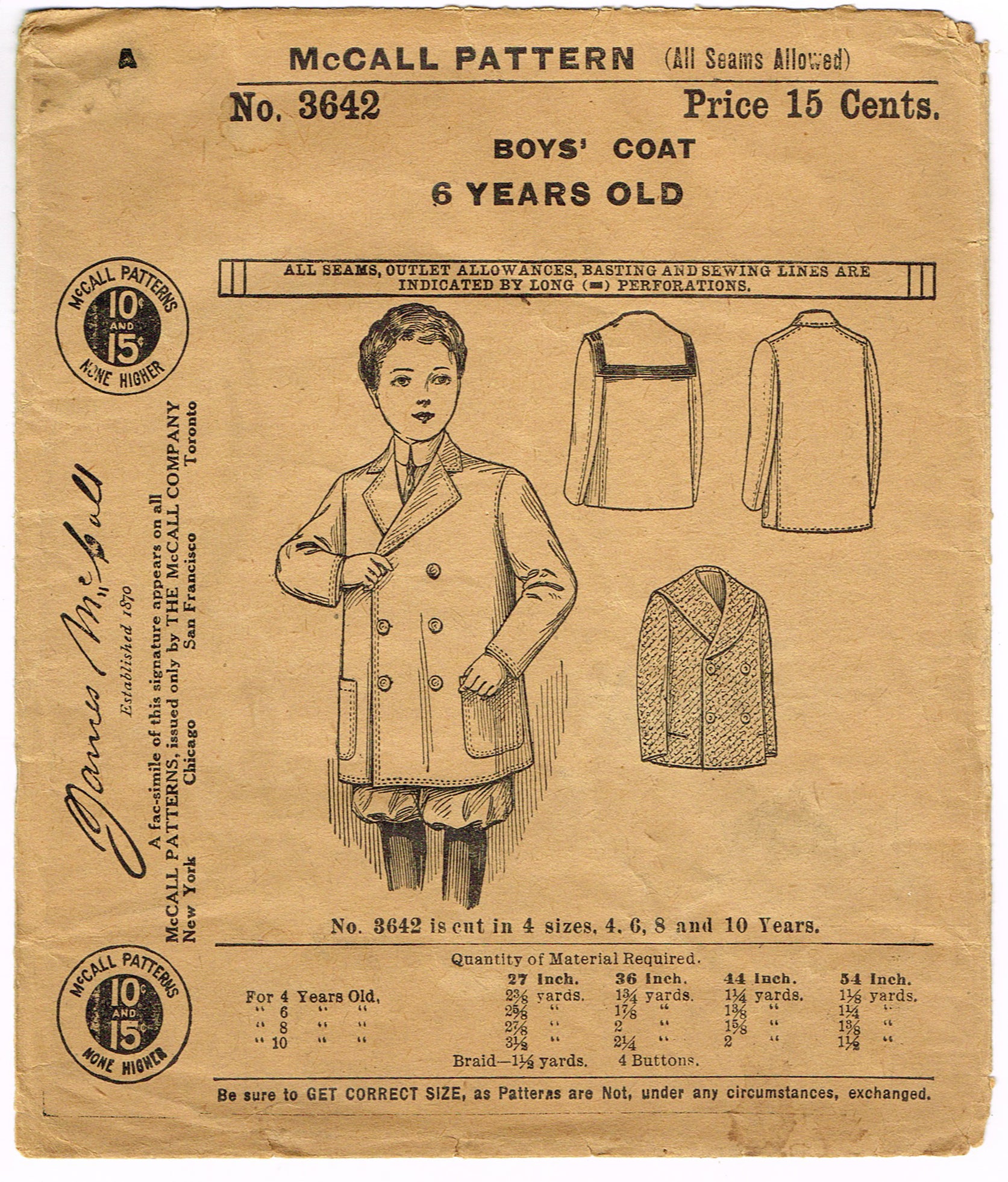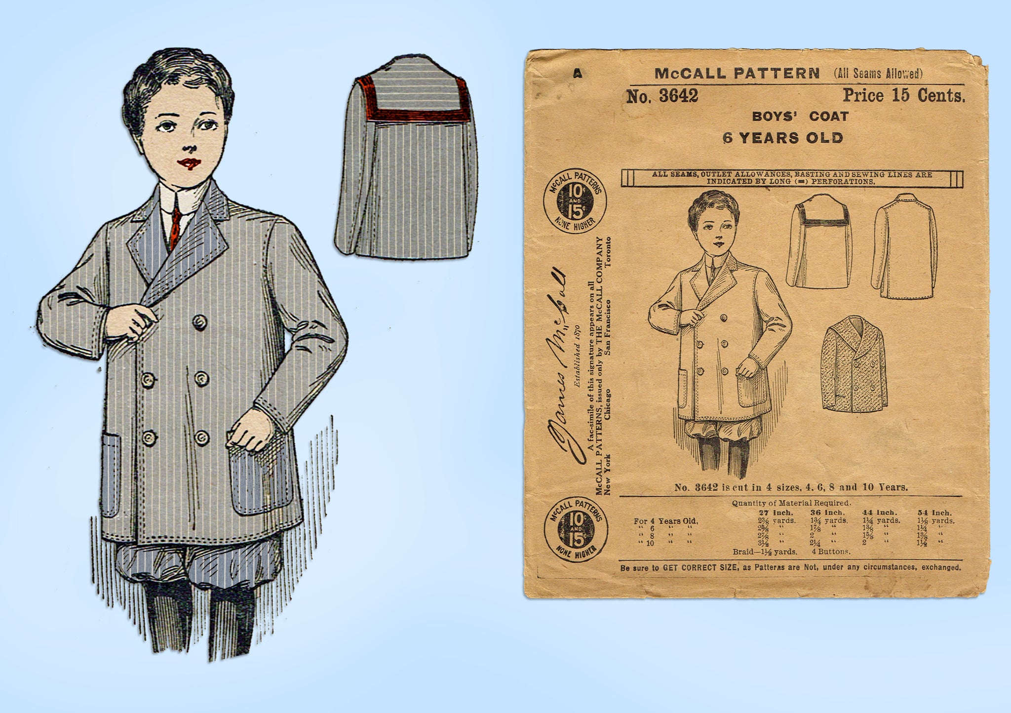 1910s Vintage McCall Sewing Pattern 3642 Uncut Toddler Boys Box Coat Sz 6